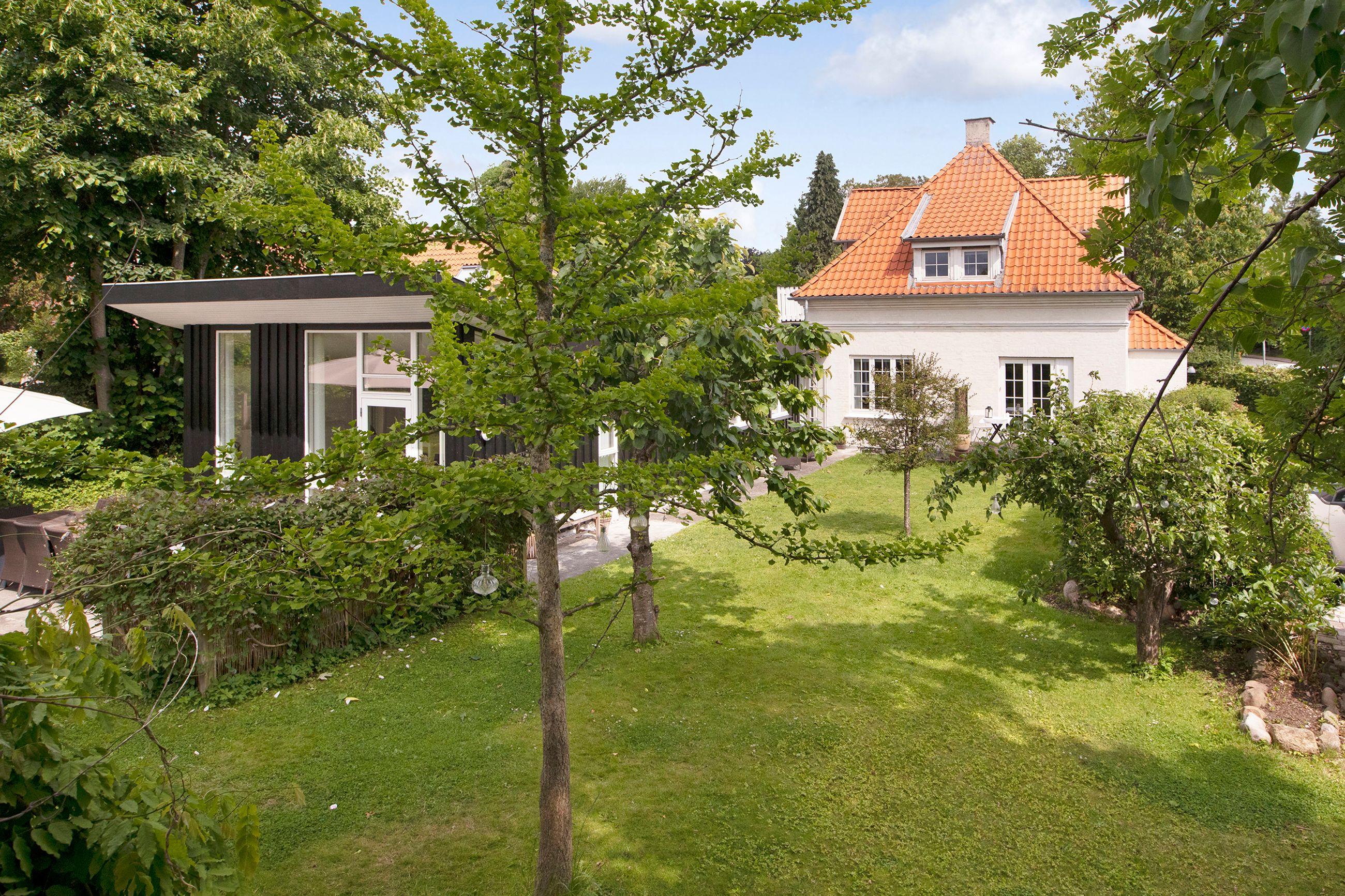 Denne charmerende bolig kombinerer den klassiske villa med moderne tilbygning på en harmonisk måde og giver dig et hjem med både karakter og funktionalitet. Haven er en smuk, grøn oase med flere terrasser og en stor plæne, der indbyder til både leg, afslapning og udendørs aktiviteter. Indkørslen giver plads til to biler, og der er gjort klar til lade-station til elbiler. Den overdækkede flisebelagte hyggelige gårdhave giver et ekstra udendørs rum, hvor du kan nyde roen, samtidig med at du har adgang til den rummelige have.