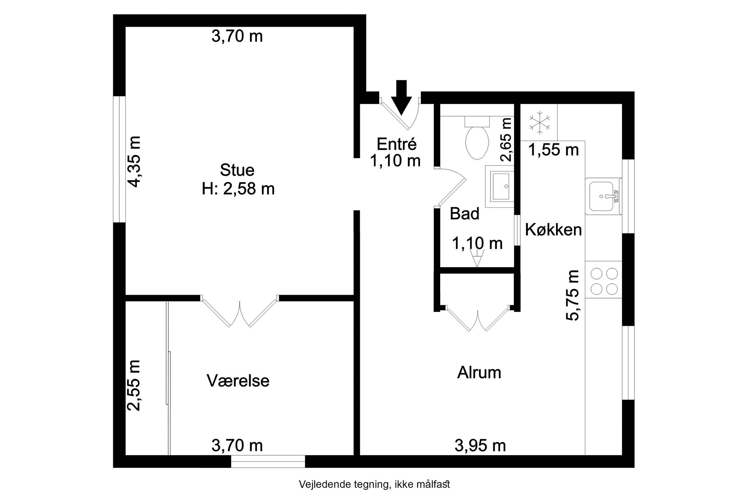 Indflytningsklar lejlighed med stort køkken-alrum!