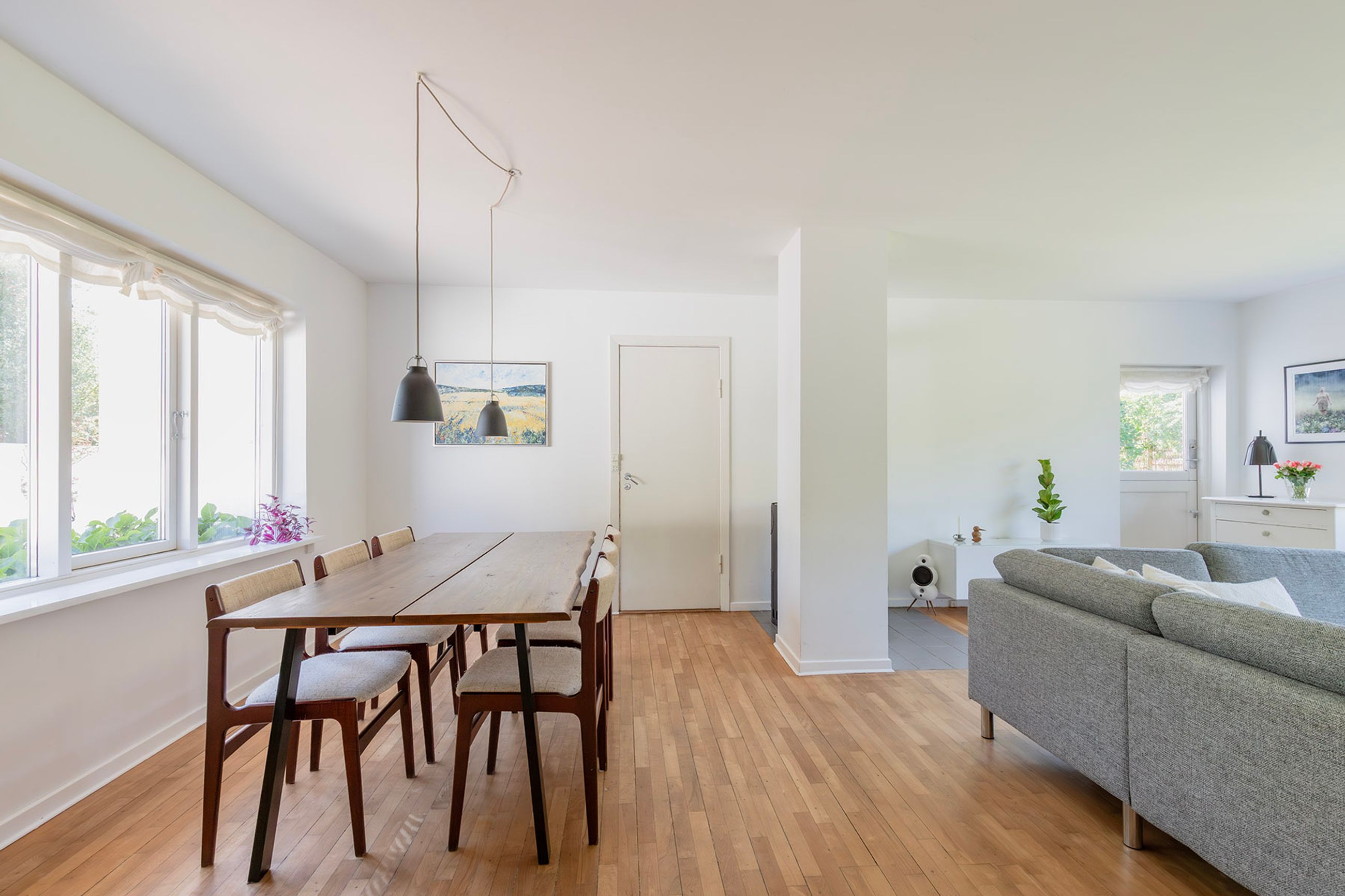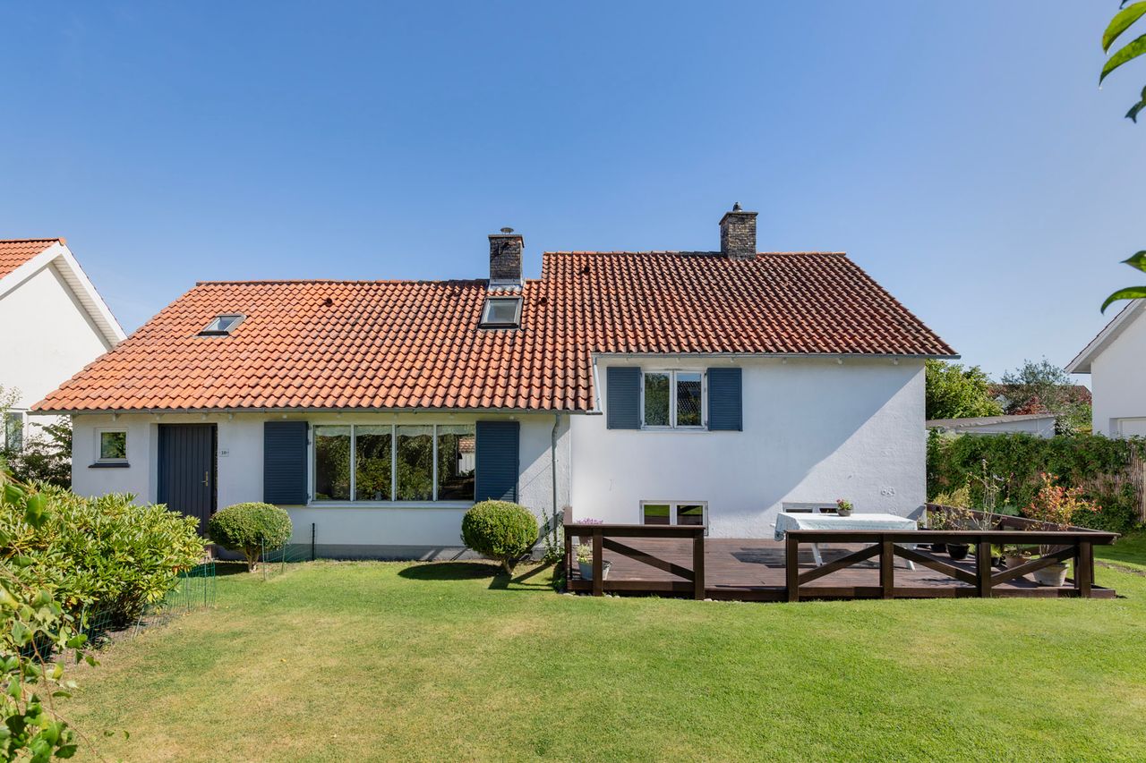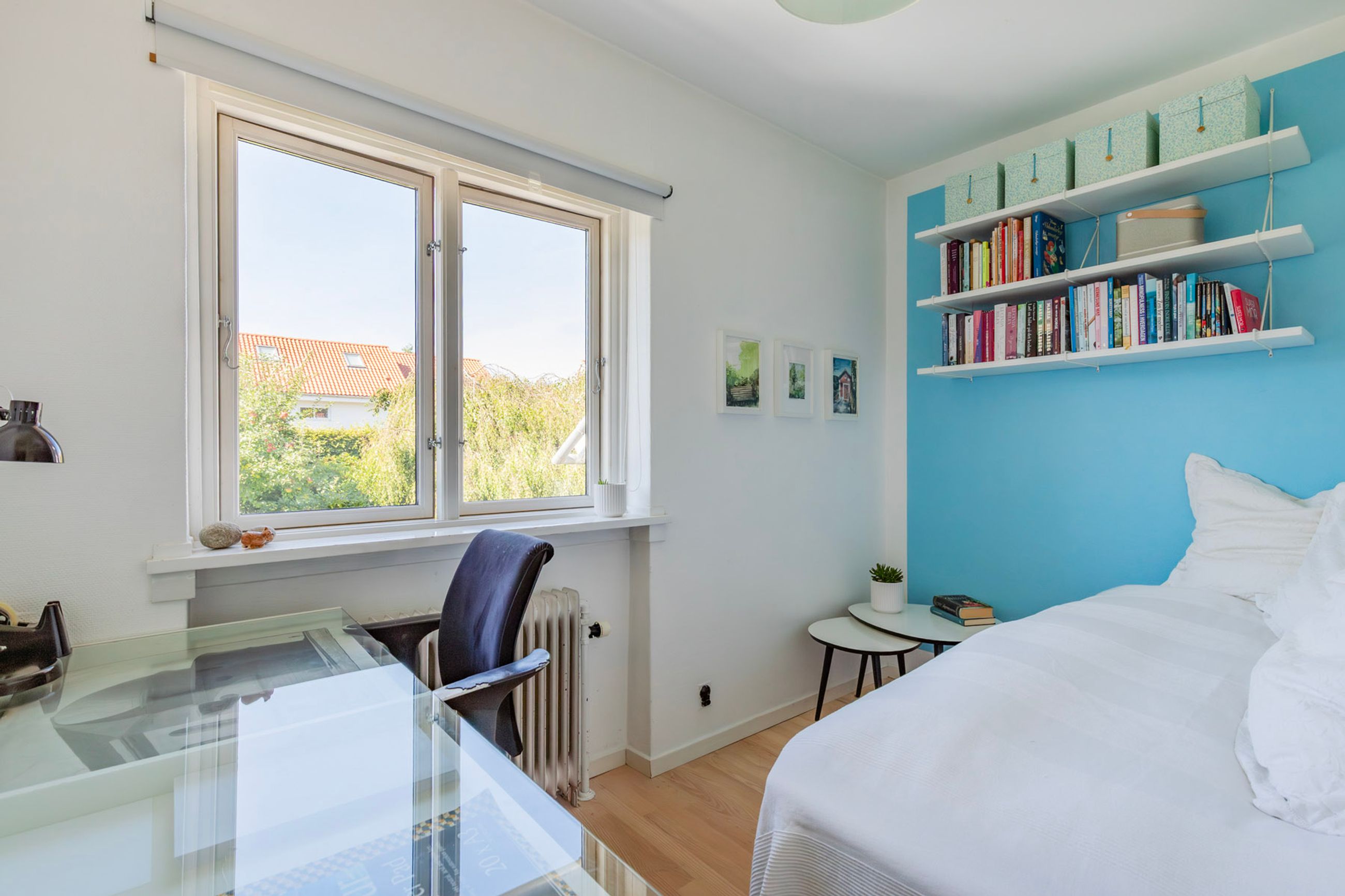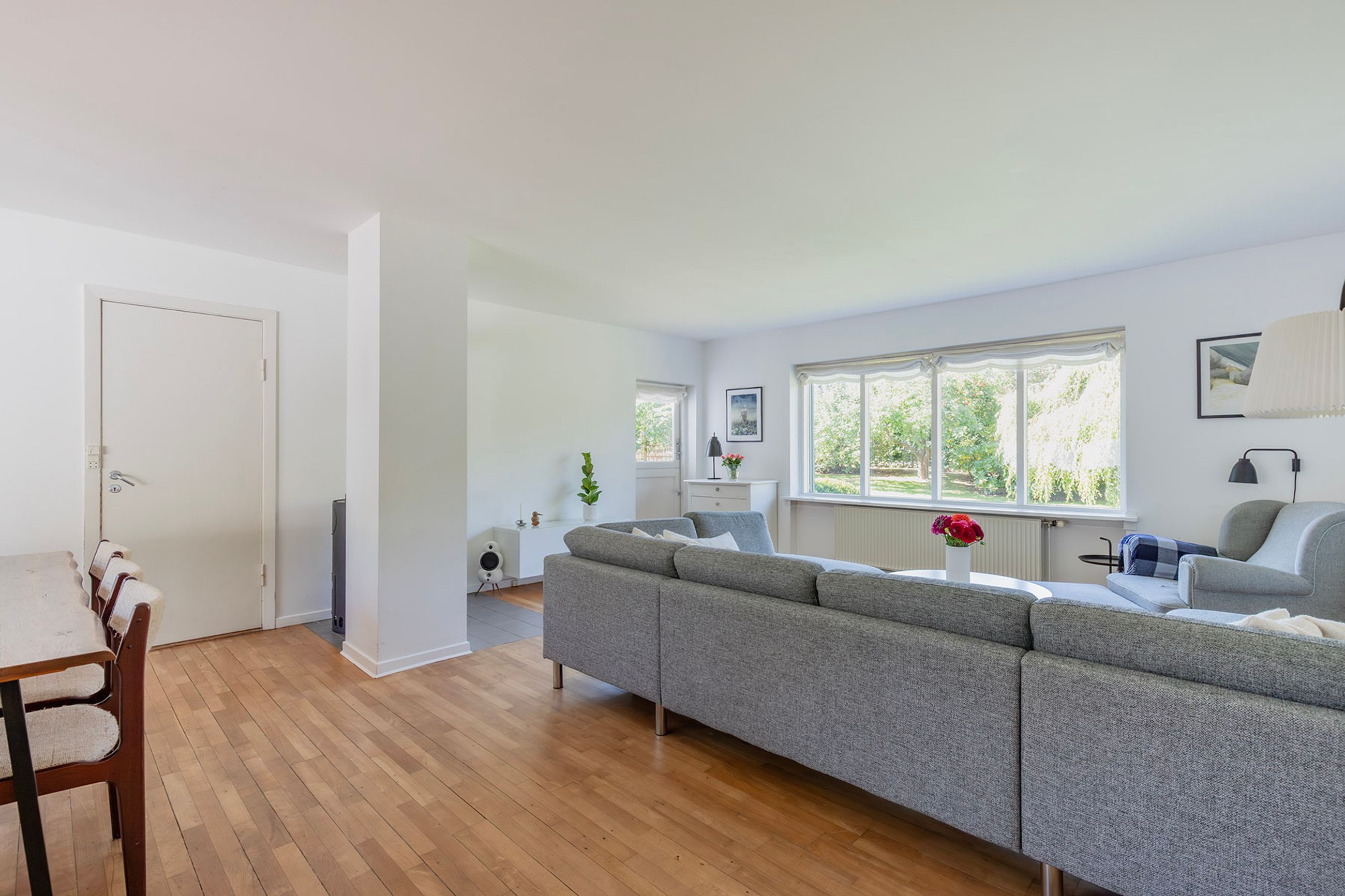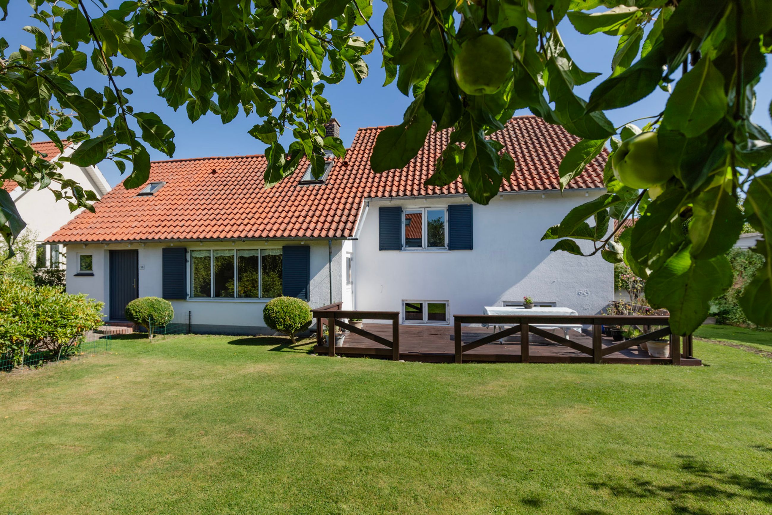 På en blind vej, der fører jer ned til Den Grønne Sti, ligger denne charmerende og arkitekttegnede familievilla, tegnet af Johannes Paludan. Det arkitektoniske og de fine skodder kan lede tankerne til det sydlandske, men det passer også rigtig fint til denne idylliske beliggenhed. Herfra kan I nemlig gå eller cykle til de smukke marker lige rundt om hjørnet, Furesøen eller Bådudlejningen ved Frederiksdal.