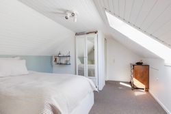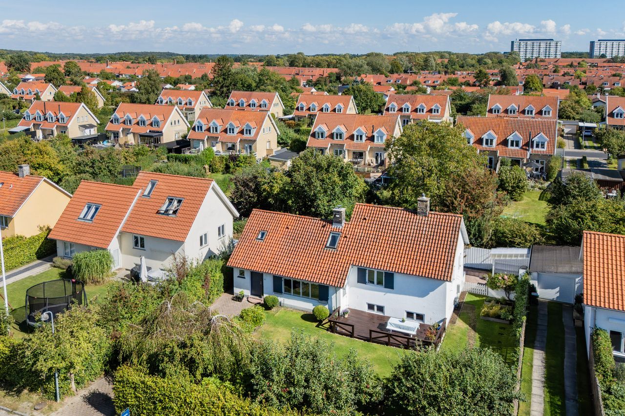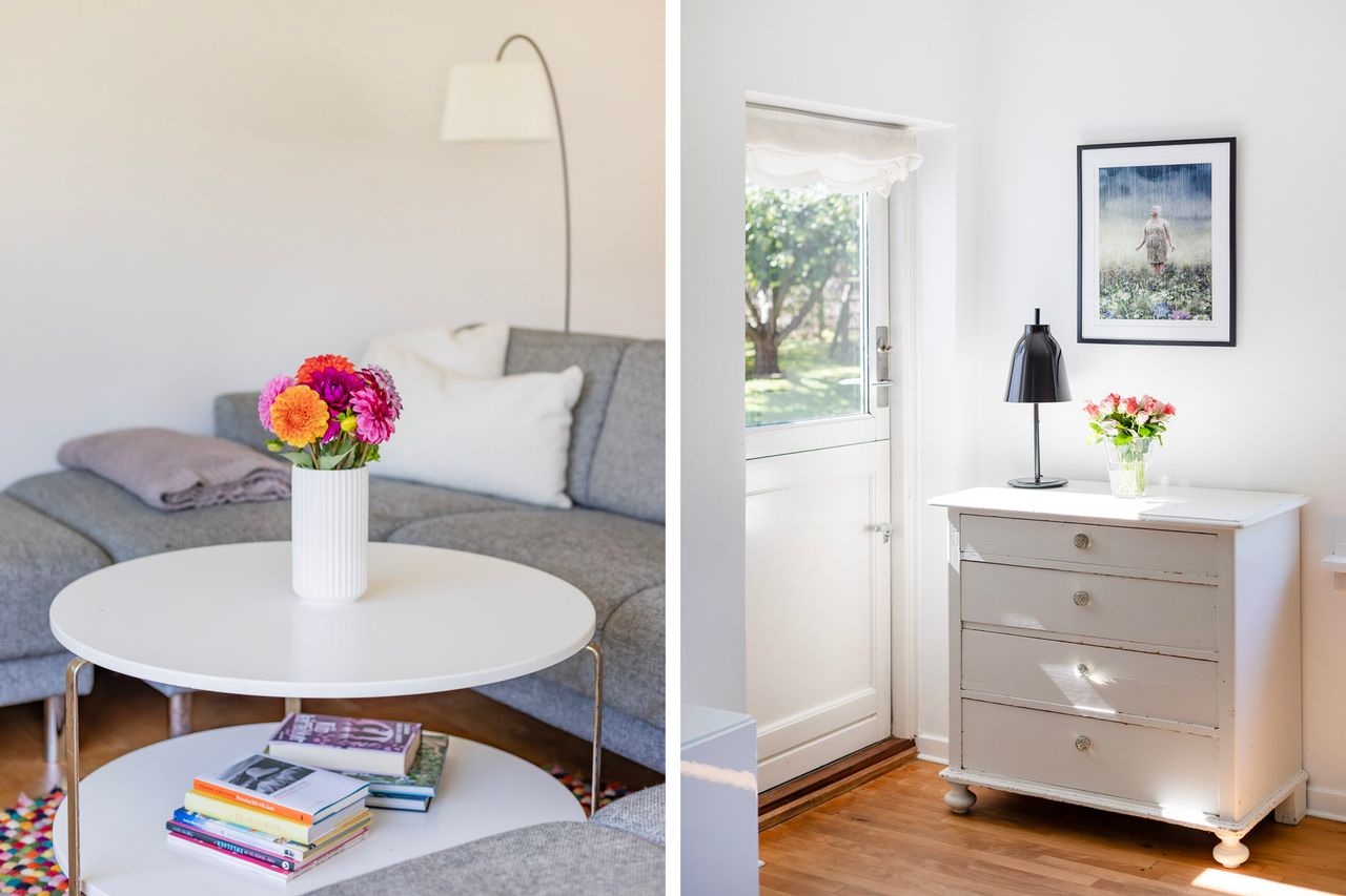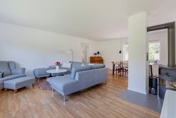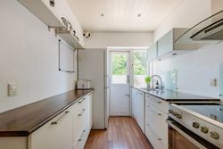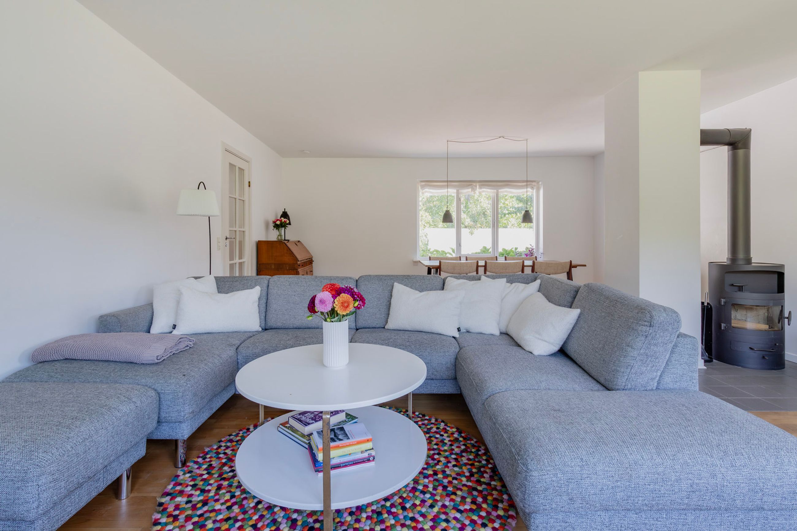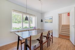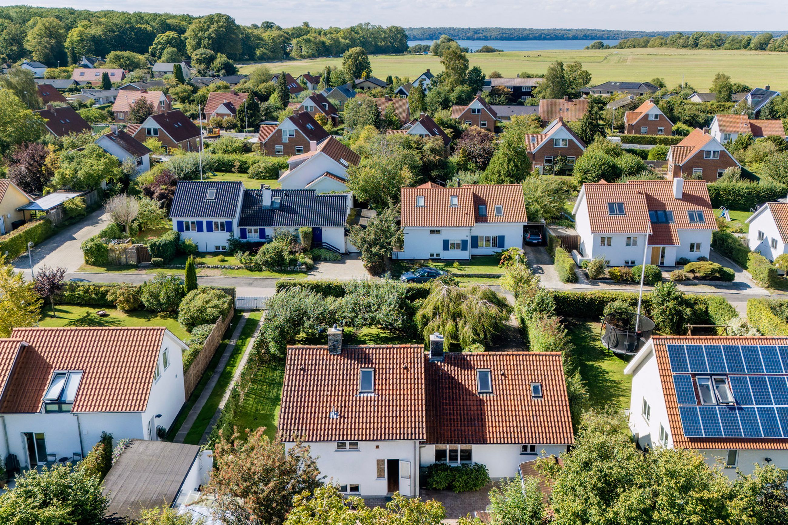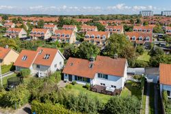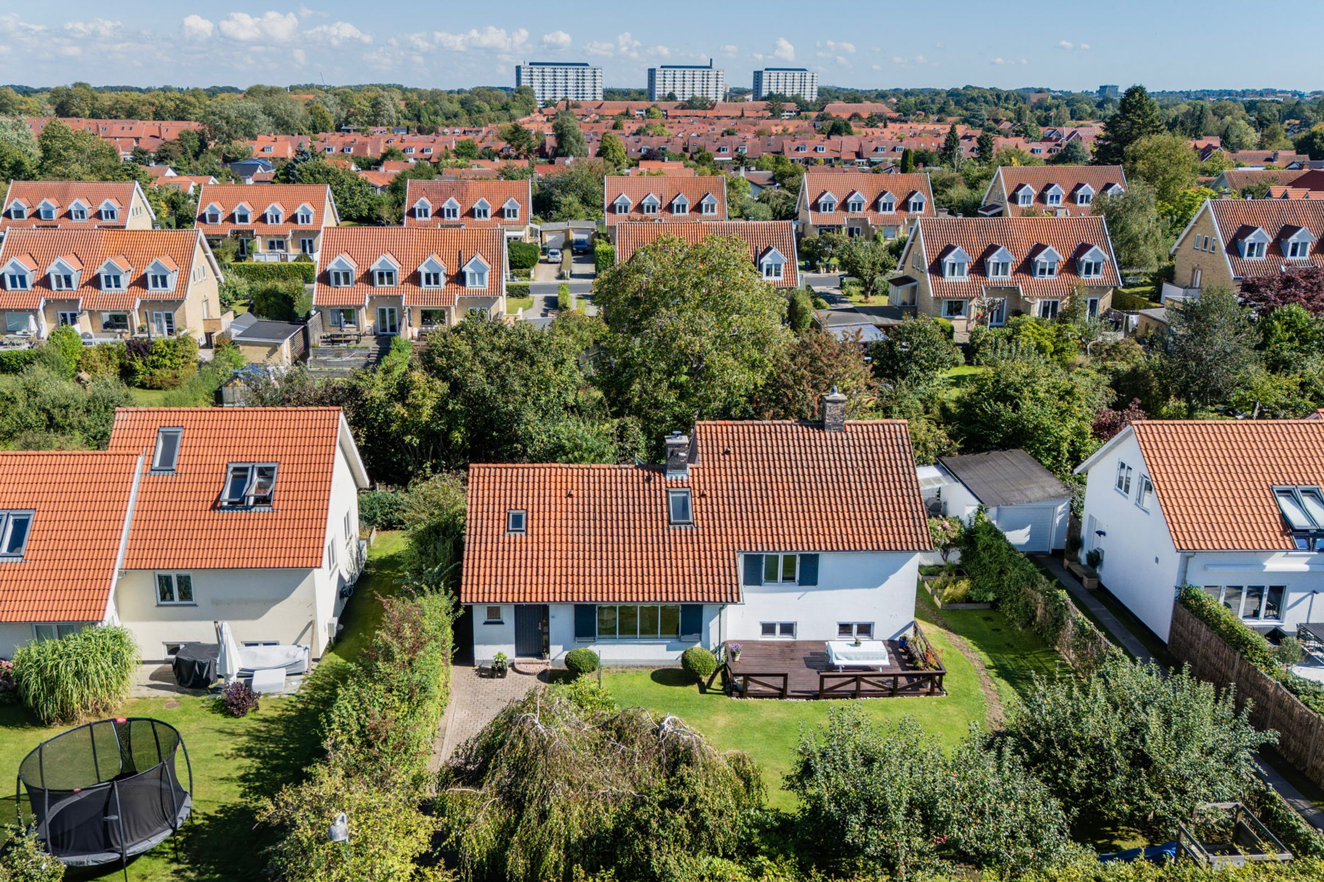 På en blind vej, der fører jer ned til Den Grønne Sti, ligger denne charmerende og arkitekttegnede familievilla, tegnet af Johannes Paludan. Det arkitektoniske og de fine skodder kan lede tankerne til det sydlandske, men det passer også rigtig fint til denne idylliske beliggenhed. Herfra kan I nemlig gå eller cykle til de smukke marker lige rundt om hjørnet, Furesøen eller Bådudlejningen ved Frederiksdal.