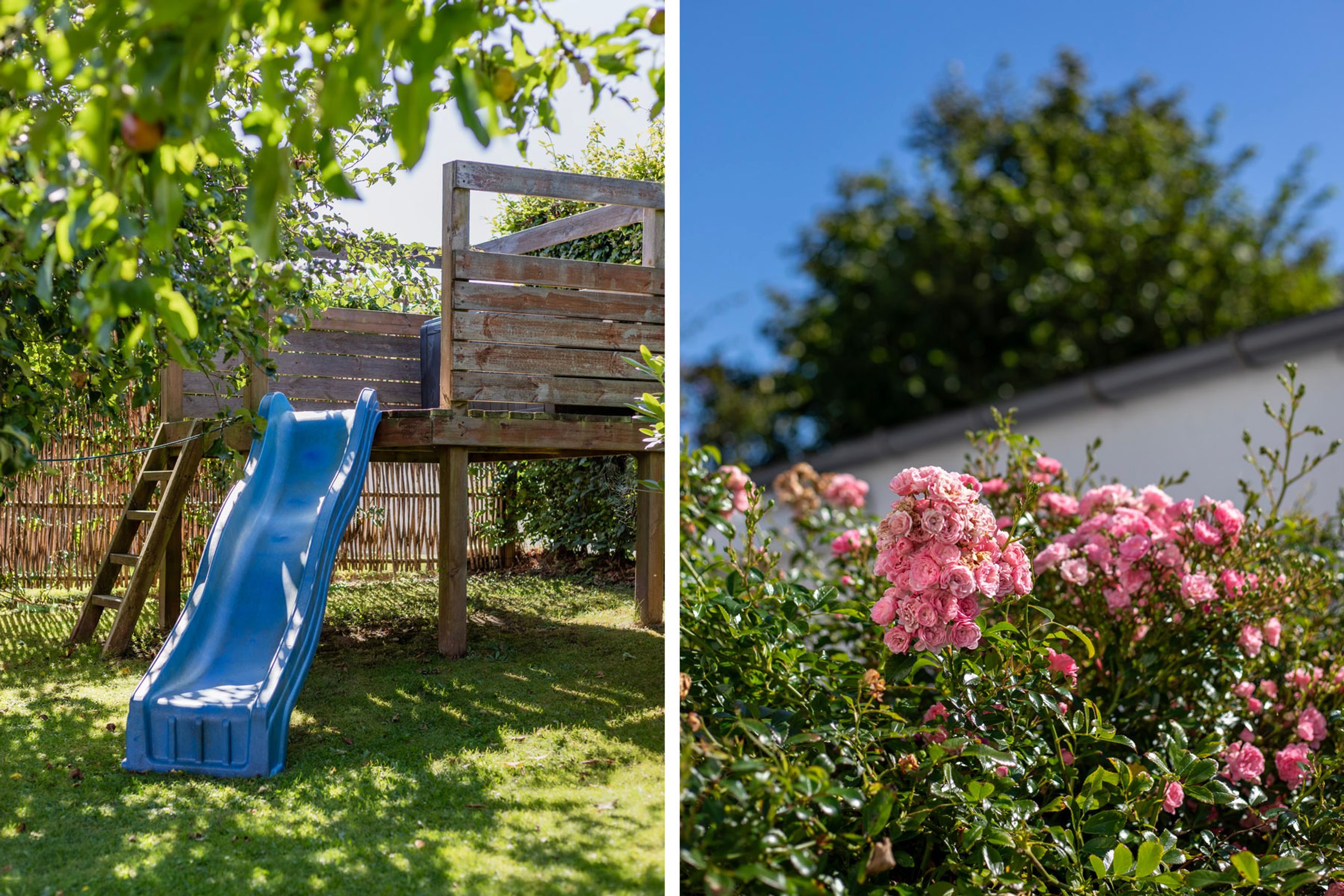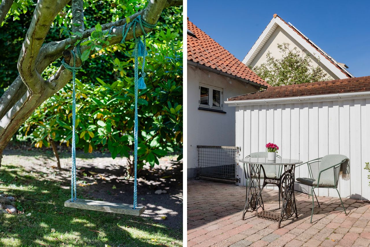 I haven er der masser af gammel beplantning. Her finder I bl.a. æbletræer, roser og rododendron. Der er plads til både gyngestativ og trampolin samt masser af opbevaring i skur og garage.