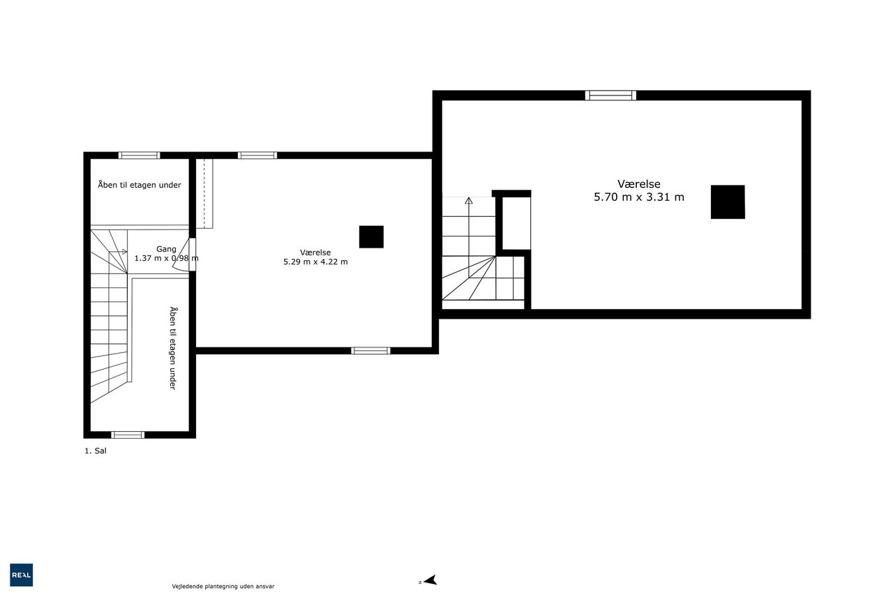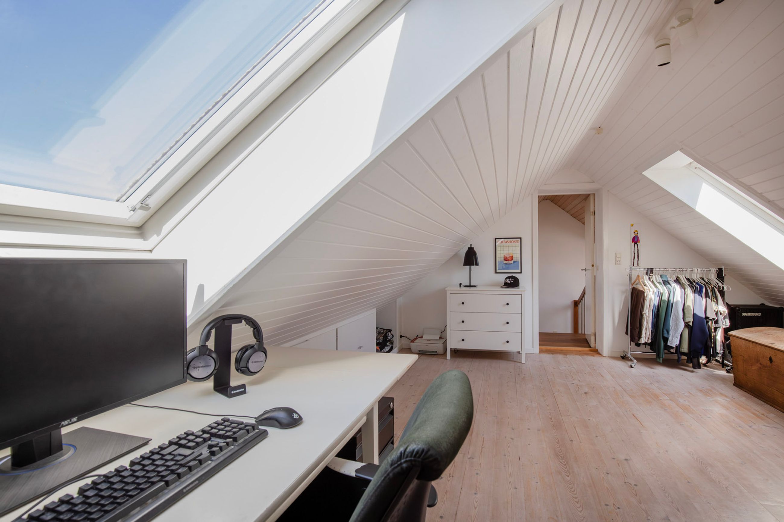 Det er værd at bemærke, at det ene værelse på ca. 20 m2 øverst i den nordlige del af huset er yderst brugbart, men ikke en del af boligarealet på 138 m2. Ejendommen snyder og overrasker derfor positivt, hvis I søger god plads og mange værelser. I alt får I ca. 204 etagemeter!