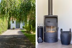 Ejendommen er fra 1948 og fremstå charmerende med de blå skodder. Der opvarmes med naturgas, men der er netop indlagt fjernvarme, så de nye ejere kan forvente at overgå hertil inden længe og formentlig kunne opgradere energimærket.