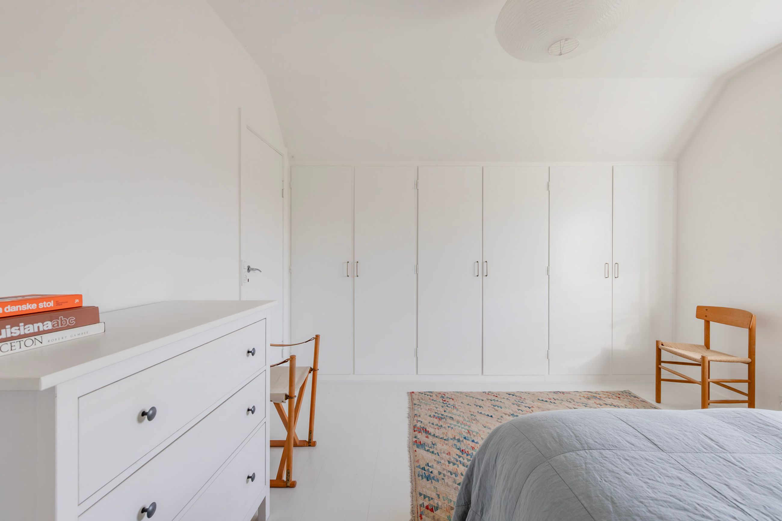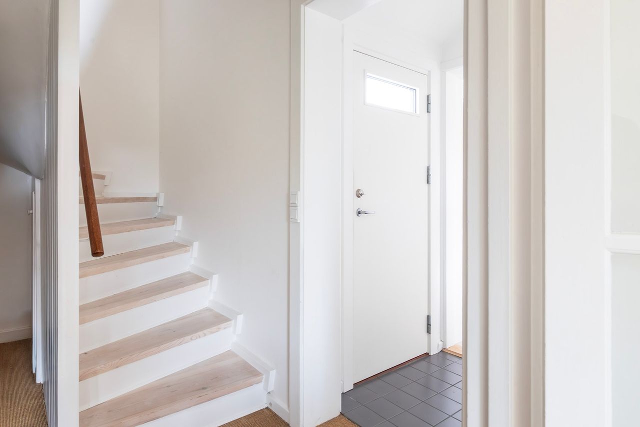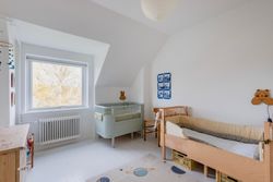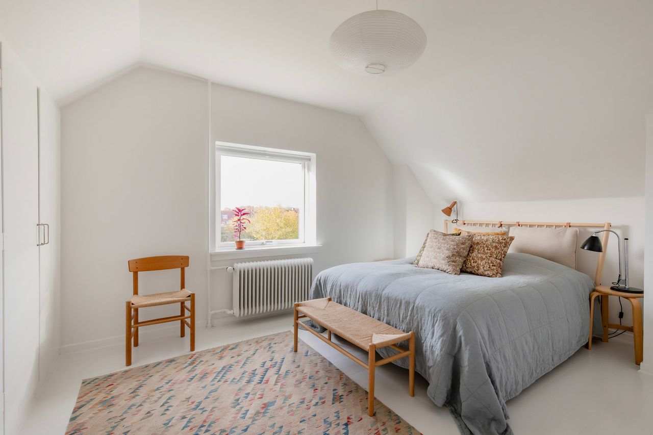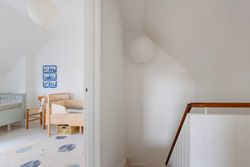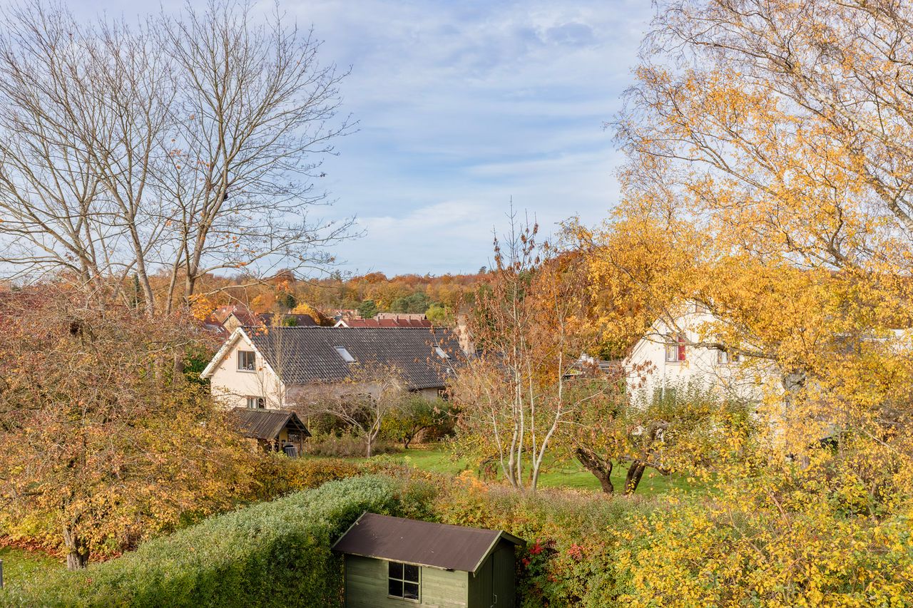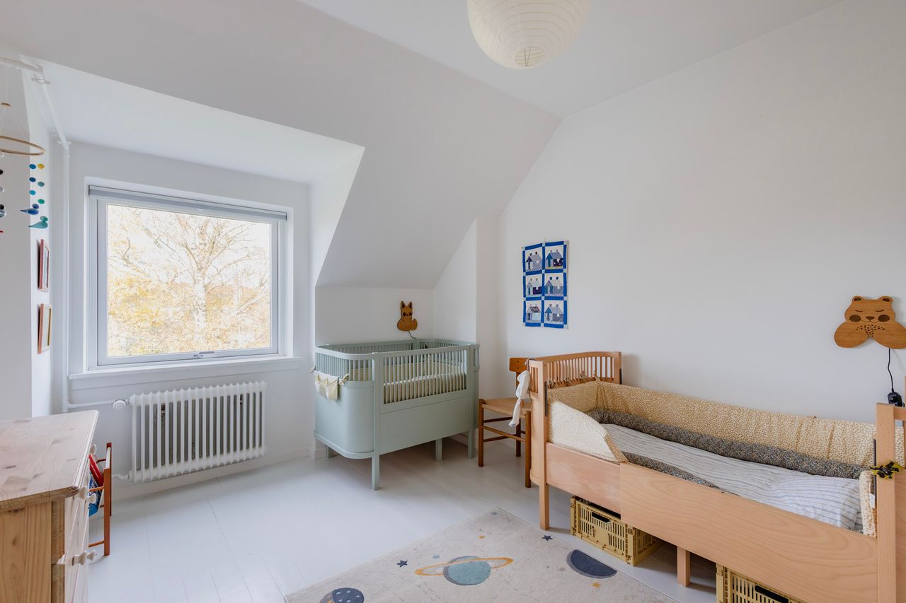 Førstesalen byder på to gode værelser med de oprindelige indbygningsskabe. Heroppe kan I nemt falde i staver over den sublime udsigt over villakvarteret og Geelskov, der nærmest læner sig ind imod jer.