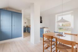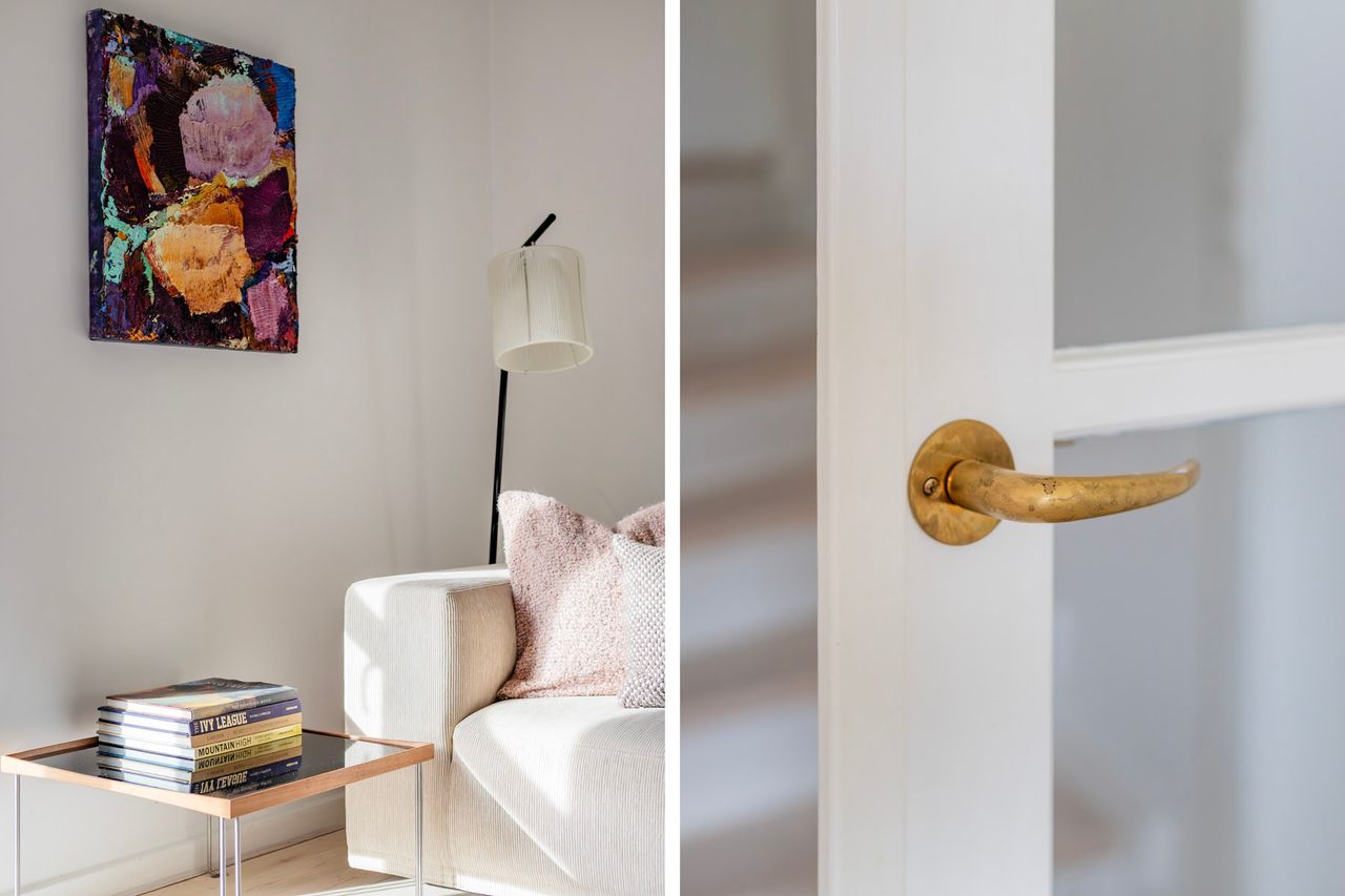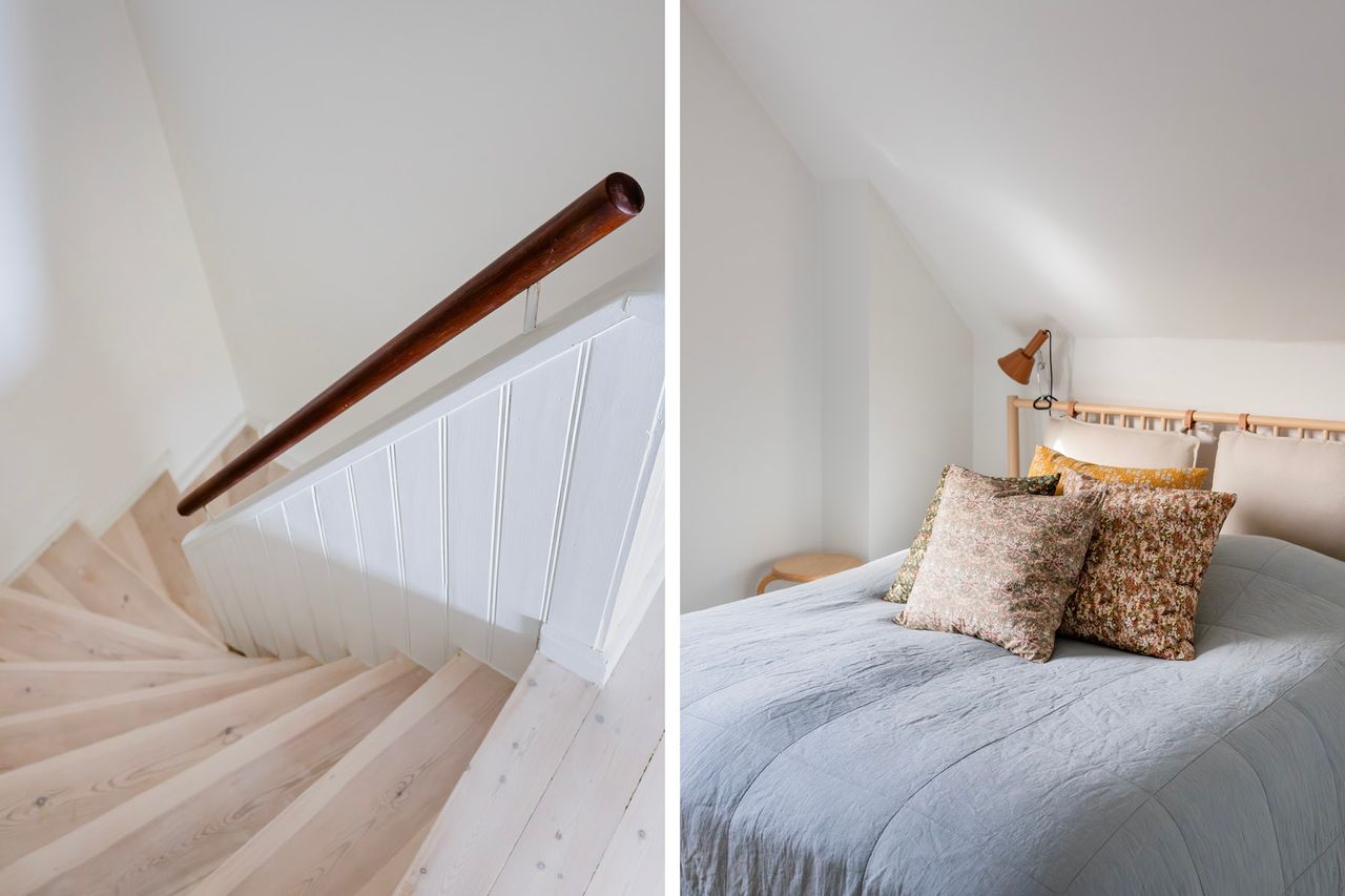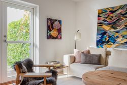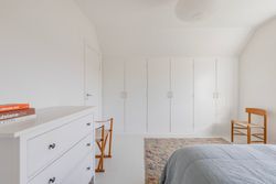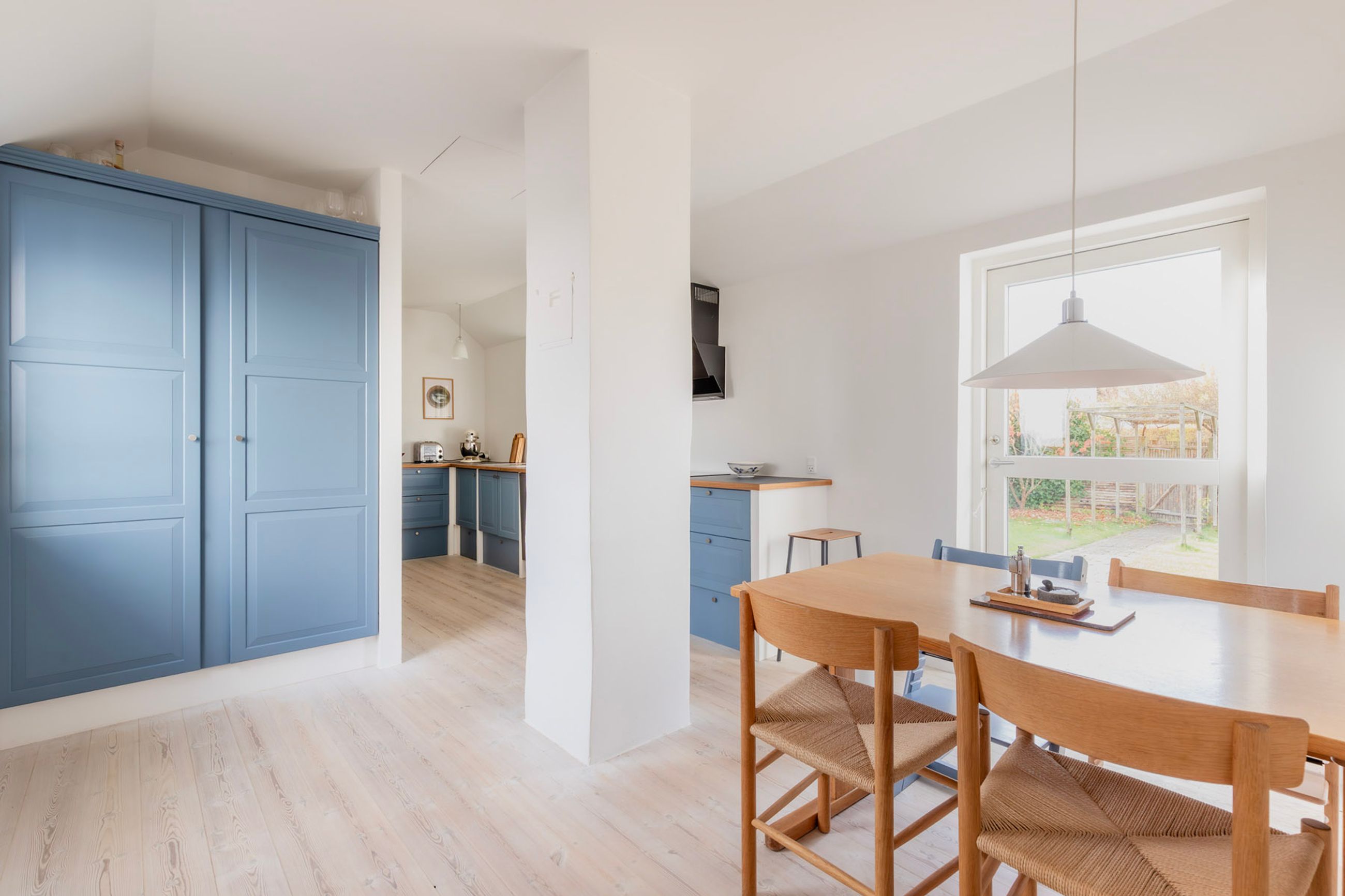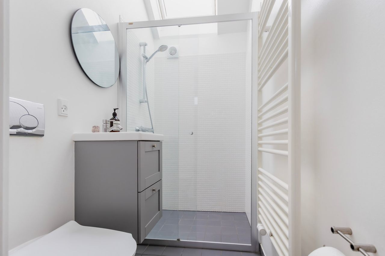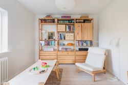 Førstesalen byder på to gode værelser med de oprindelige indbygningsskabe. Heroppe kan I nemt falde i staver over den sublime udsigt over villakvarteret og Geelskov, der nærmest læner sig ind imod jer.