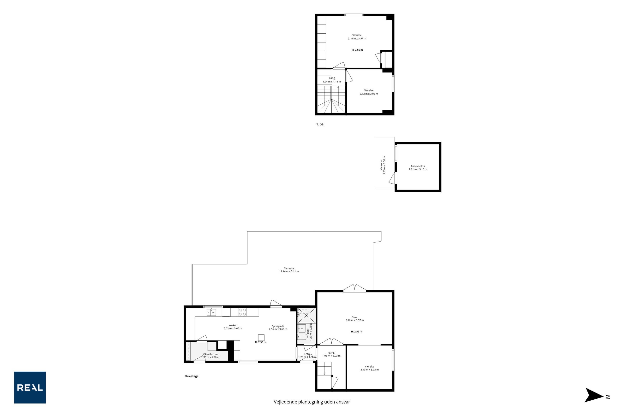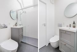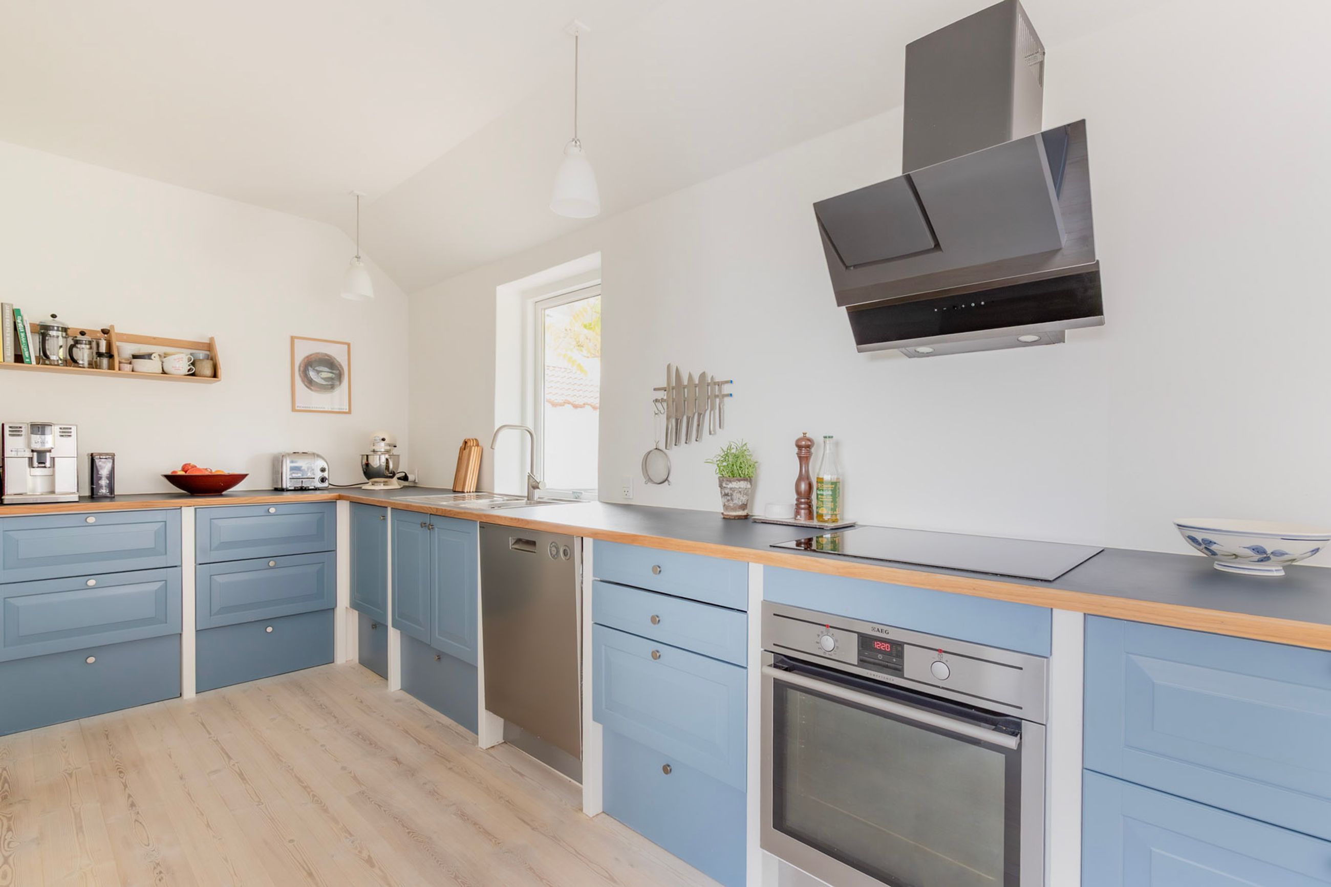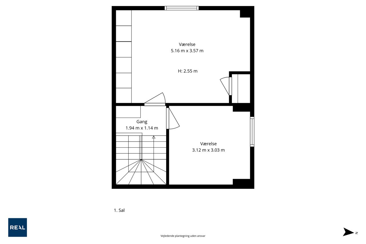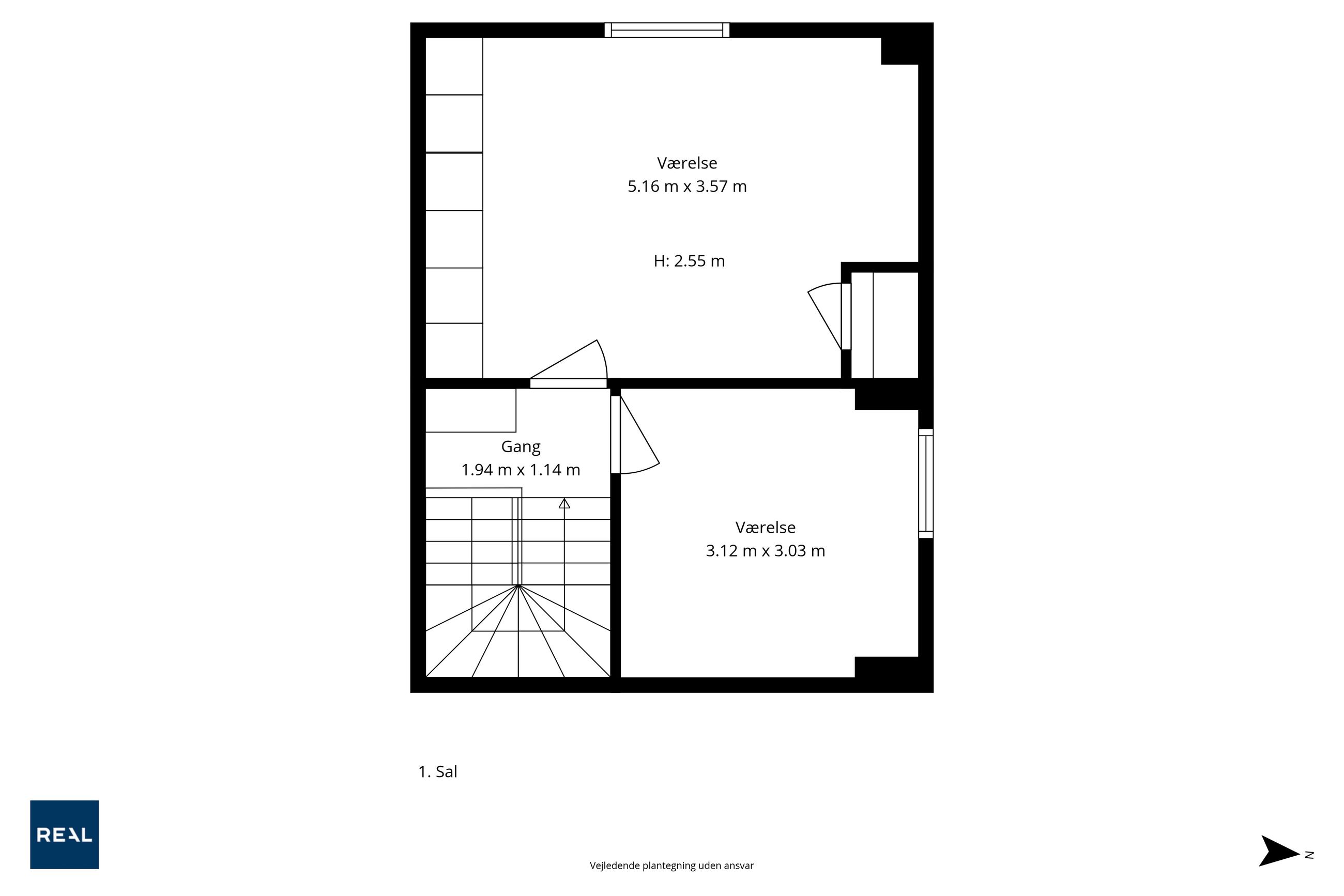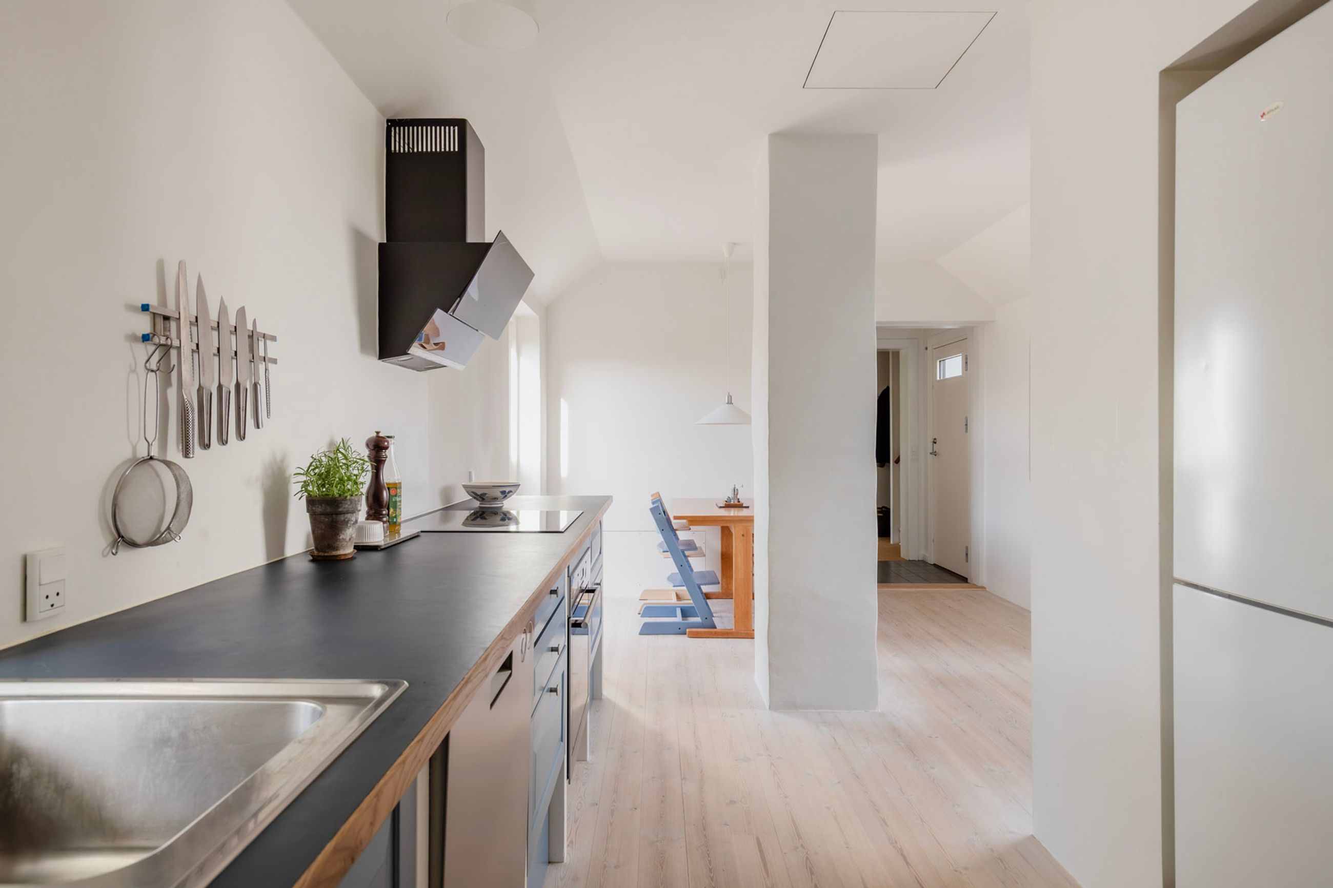 Førstesalen byder på to gode værelser med de oprindelige indbygningsskabe. Heroppe kan I nemt falde i staver over den sublime udsigt over villakvarteret og Geelskov, der nærmest læner sig ind imod jer.