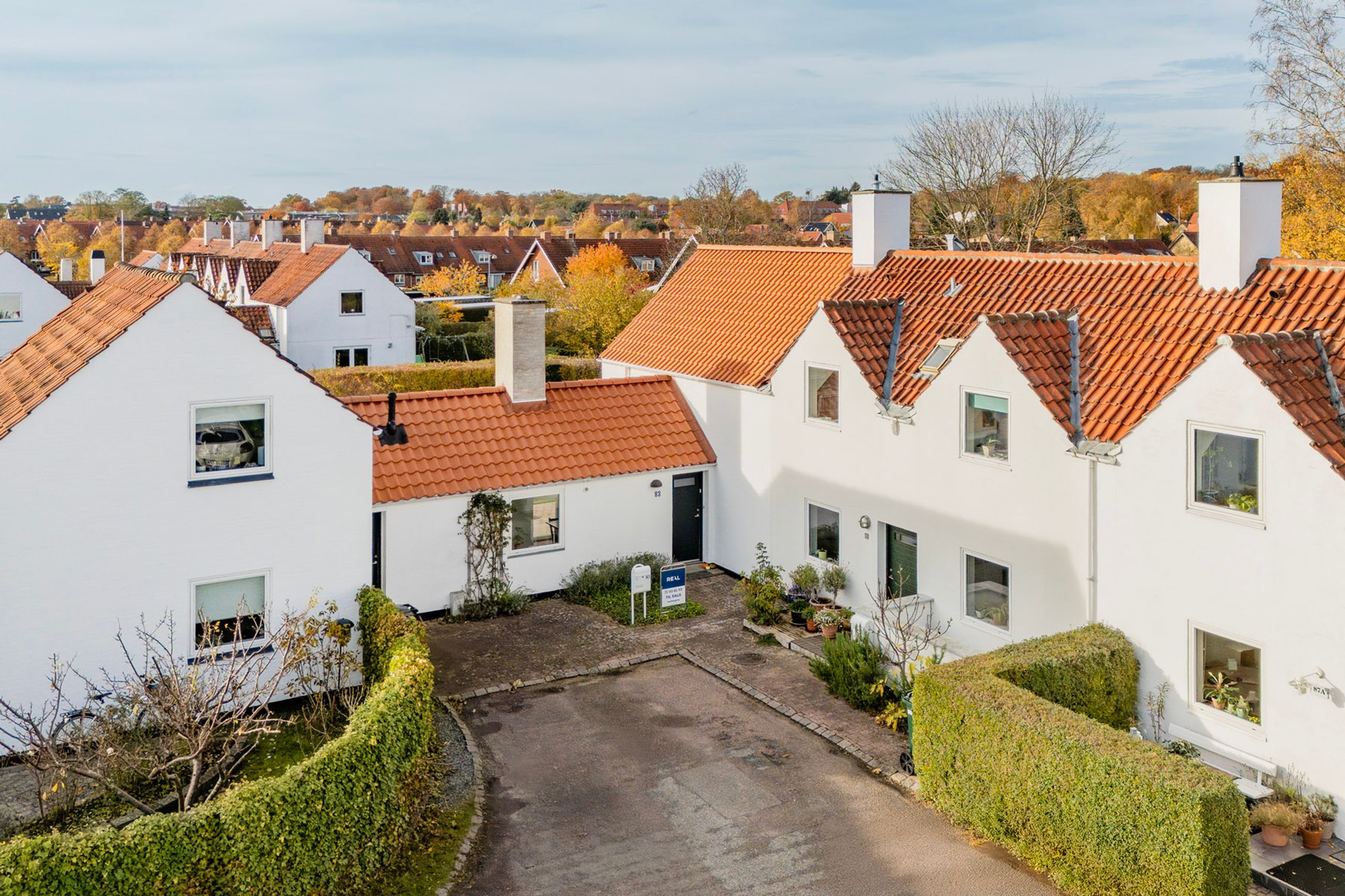 Yderst velholdt ejendom, hvor taget senest er udskiftet i 2023. Huset er som nævnt tegnet af Kay Fisker i 1957. Her ligger 47 smukke kædehuse symmetrisk i to U-former med små stisystemer, som forbinder dem med hinanden. De fleste vinduer og døre er skiftet i nyere tid og facaden fremstår pæn. Ejendommen opvarmes med naturgas, men der er planer om fjernvarme.