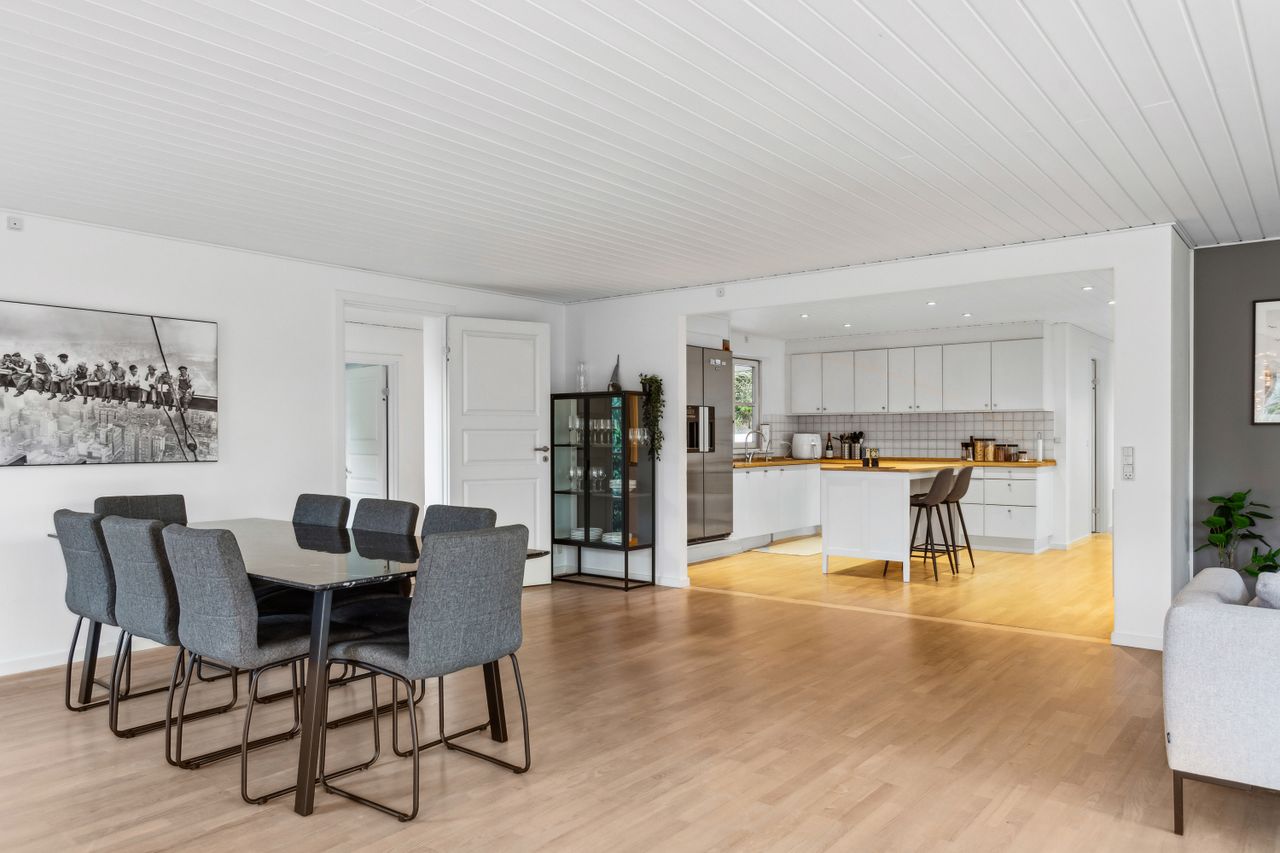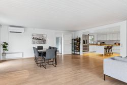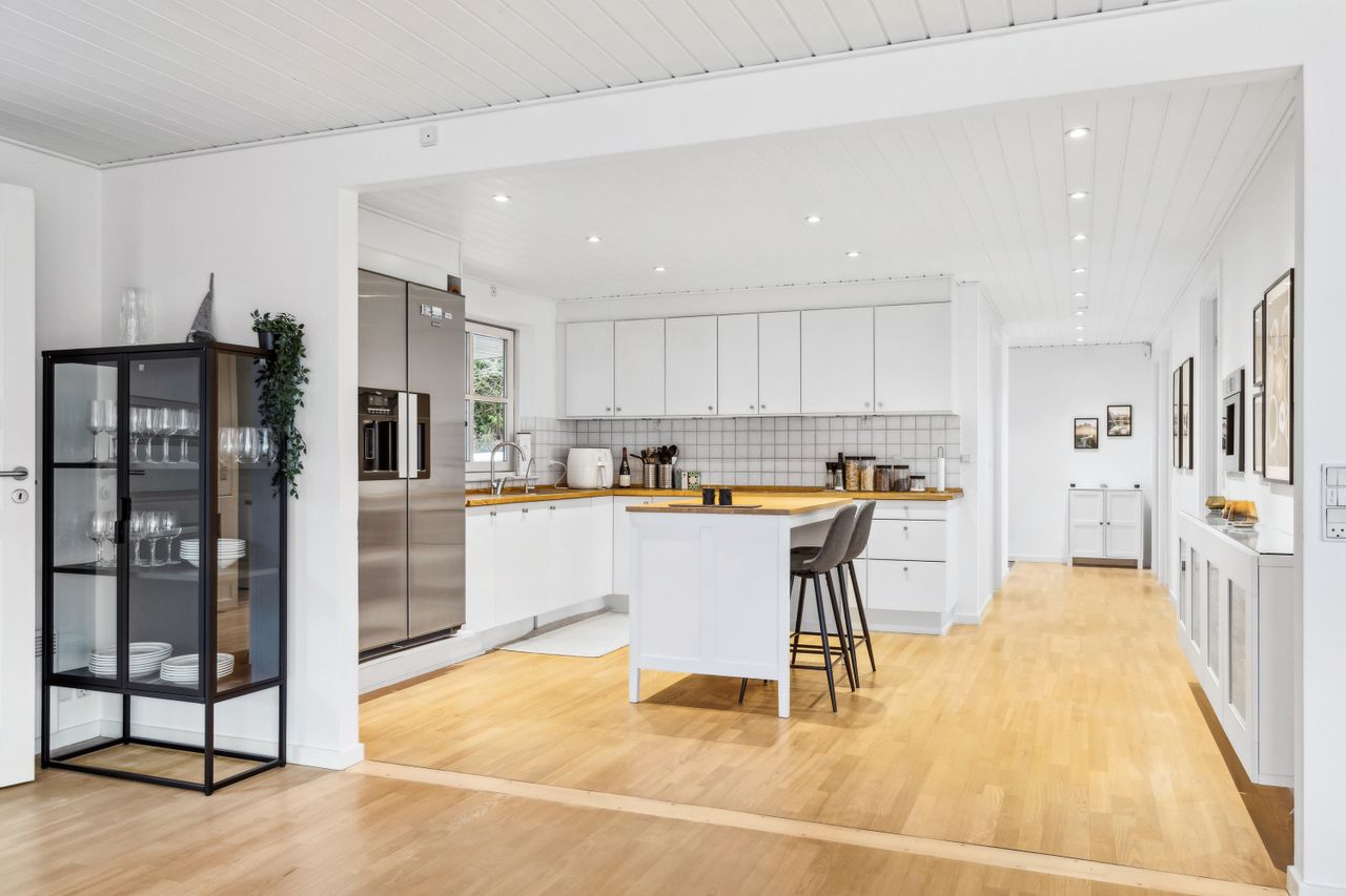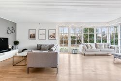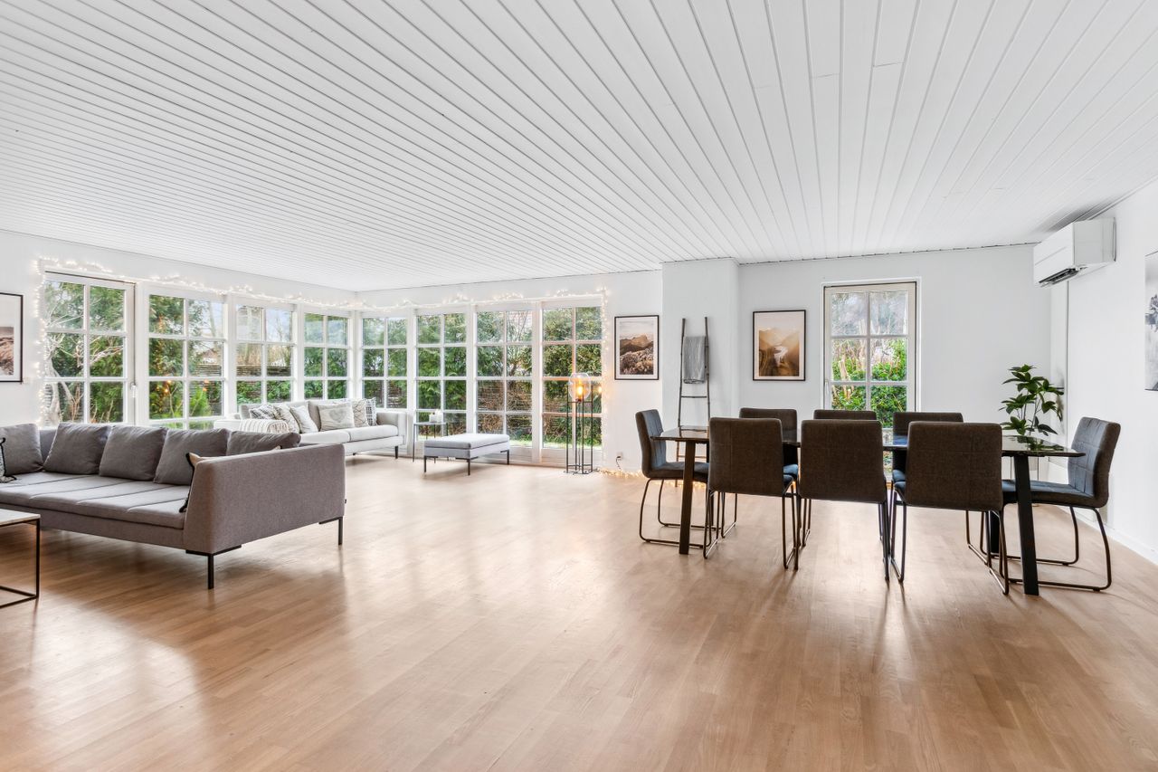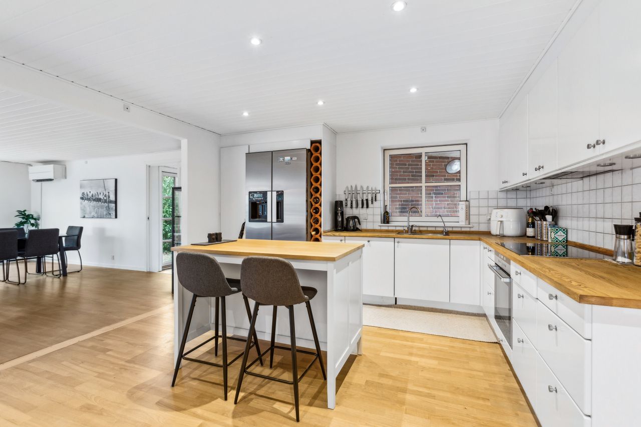 OMRÅDET:Nordhøjvej ligger i et roligt og naturskønt område i den vestlige del af Gilleleje, også kendt som Sommerlystkvarteret. Her kan du nyde den fredligere atmosfære, samtidig med at du kun er 200 m. fra den smukke Gilbergsti, som fører dig ned til stranden og videre til Gillelejes hyggelige centrum med butikker, caféer og den charmerende havn. Et perfekt sted at kombinere det rolige liv med nærhed til alt, hvad byen har at byde på. EJENDOMMEN:Denne velholdte halvdobbelte bolig byder på en charmerende og privat have samt solrige fliseterrasser mod syd og vest - perfekte til afslapning og udendørs liv. Pæn indkørsel som fører op til et delvist overdækket område, ideelt til cykler eller opbevaring - reg. som muret carport. En praktisk sidebygning med eget badeværelse som giver fleksibilitet - perfekt til teenager, gæster, fitnessrum eller hjemmekontor. Der er også et redskabskur, der giver god opbevaring plads. Alt i alt en bolig, der kombinere hygge, funktionalitet og praktiske løsninger INDRETNINGEN:Huset indeholder: Entre med klinkegulv med varme. Skønt køkken/alrum med spise/arbejdsø, hvide elementer, tyk træbordplade samt trægulv. Åbent fra køkkenet til dejlig og stor opholdsstue med skønt lysindfald fra stort vinduesparti i vinkel samt trægulv. Udgange fra stuen til terrasser på mod syd og vest. 3 store værelser med skabe, trægulve samt udgang fra dem alle til haven og flisegang ved huset. Stort badeværelse med glasbruseniche, bord med 2 vaske og skabe/skuffer, flere skabe samt stor håndklædetørrer og klinkegulv med varme. Godt bryggers med mange skabe, bord med vask, klinkegulv, indgang fra indkørslen samt opgang til loft.Fra stuen er der adgang til tilbygning i samme stil som huset og som indeholder et stort værelse/kontor (knapt 6 kvm heraf er ikke godk. til beboelse), møblerbart gangareal samt stort badeværelse med bruseniche og klinkegulv med varme. GENEREL STAND:Meget velholdt 1-plans ejendom med rigtig god plads og mulighed for den store familie eller måske hjemmekontor.