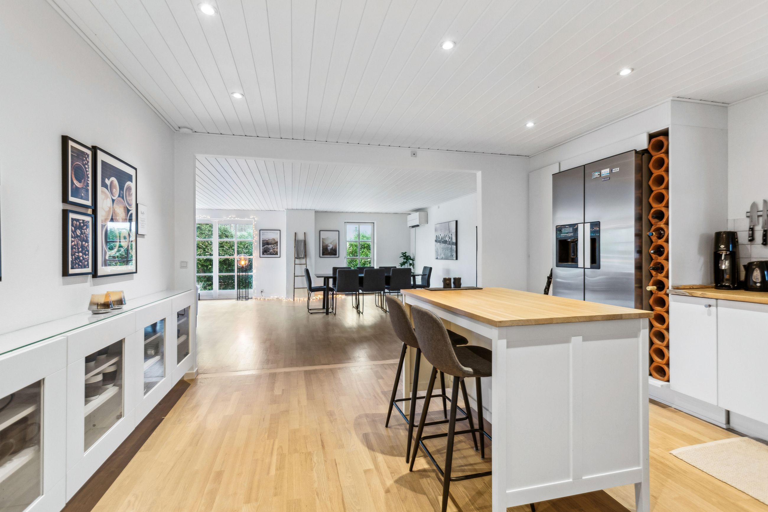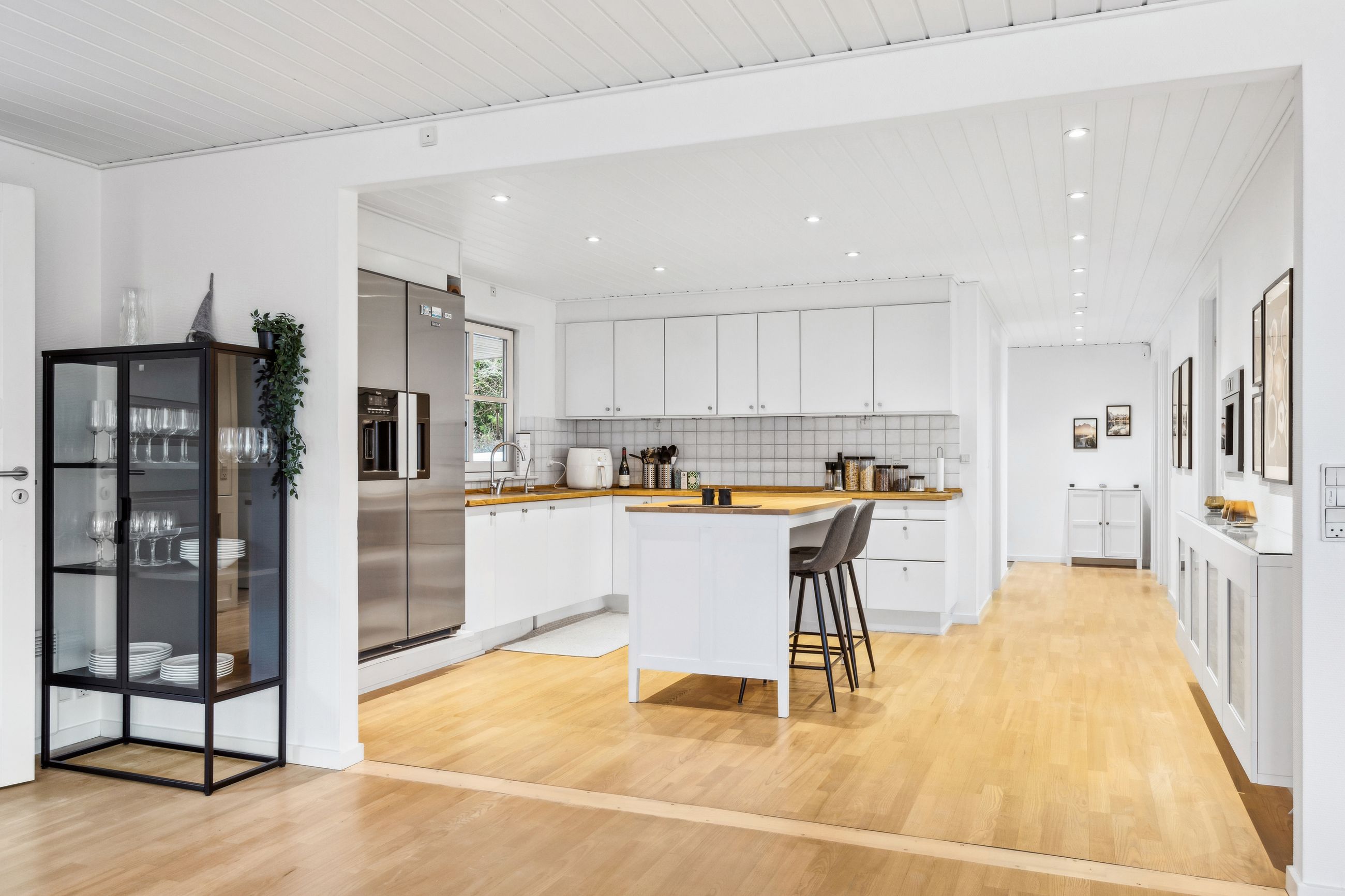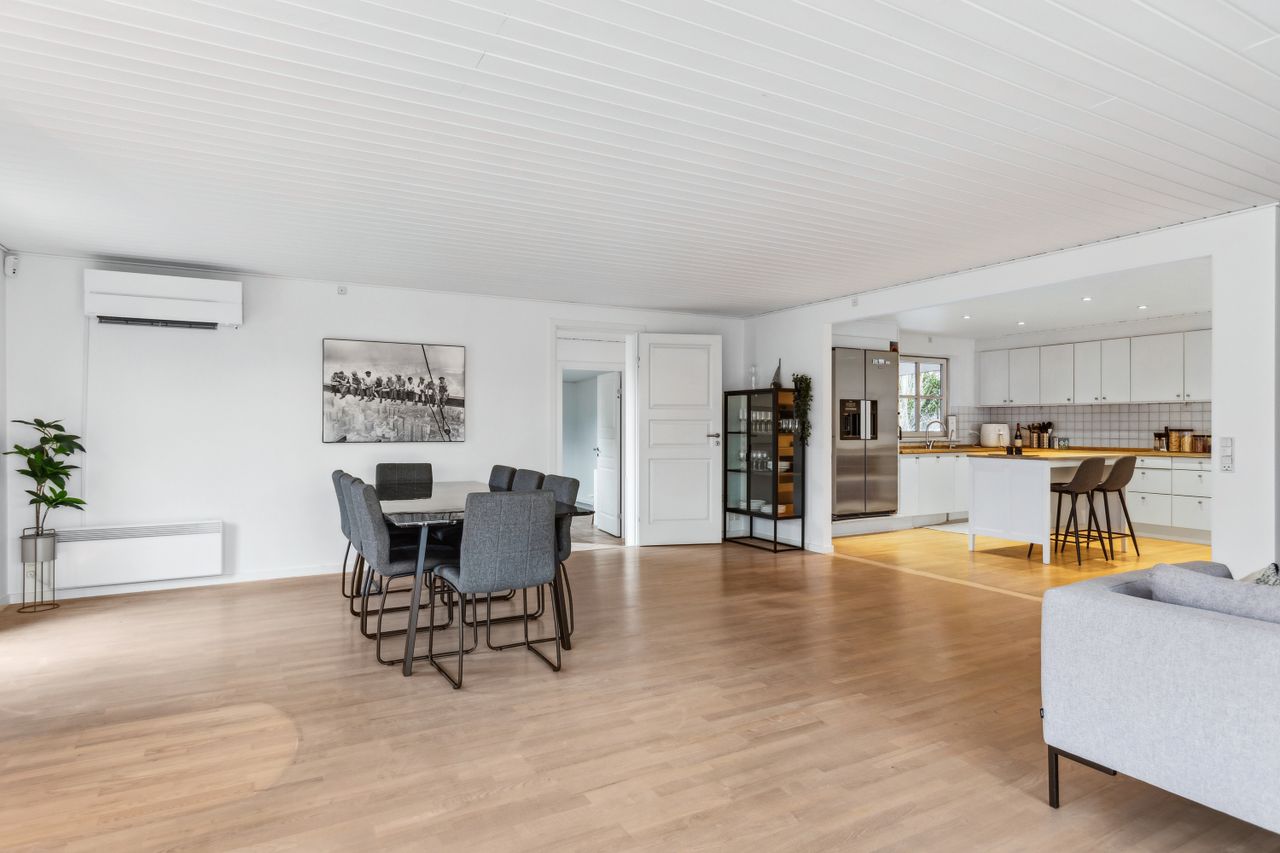 OMRÅDET:Nordhøjvej ligger i et roligt og naturskønt område i den vestlige del af Gilleleje, også kendt som Sommerlystkvarteret. Her kan du nyde den fredligere atmosfære, samtidig med at du kun er 200 m. fra den smukke Gilbergsti, som fører dig ned til stranden og videre til Gillelejes hyggelige centrum med butikker, caféer og den charmerende havn. Et perfekt sted at kombinere det rolige liv med nærhed til alt, hvad byen har at byde på. EJENDOMMEN:Denne velholdte halvdobbelte bolig byder på en charmerende og privat have samt solrige fliseterrasser mod syd og vest - perfekte til afslapning og udendørs liv. Pæn indkørsel som fører op til et delvist overdækket område, ideelt til cykler eller opbevaring - reg. som muret carport. En praktisk sidebygning med eget badeværelse som giver fleksibilitet - perfekt til teenager, gæster, fitnessrum eller hjemmekontor. Der er også et redskabskur, der giver god opbevaring plads. Alt i alt en bolig, der kombinere hygge, funktionalitet og praktiske løsninger INDRETNINGEN:Huset indeholder: Entre med klinkegulv med varme. Skønt køkken/alrum med spise/arbejdsø, hvide elementer, tyk træbordplade samt trægulv. Åbent fra køkkenet til dejlig og stor opholdsstue med skønt lysindfald fra stort vinduesparti i vinkel samt trægulv. Udgange fra stuen til terrasser på mod syd og vest. 3 store værelser med skabe, trægulve samt udgang fra dem alle til haven og flisegang ved huset. Stort badeværelse med glasbruseniche, bord med 2 vaske og skabe/skuffer, flere skabe samt stor håndklædetørrer og klinkegulv med varme. Godt bryggers med mange skabe, bord med vask, klinkegulv, indgang fra indkørslen samt opgang til loft.Fra stuen er der adgang til tilbygning i samme stil som huset og som indeholder et stort værelse/kontor (knapt 6 kvm heraf er ikke godk. til beboelse), møblerbart gangareal samt stort badeværelse med bruseniche og klinkegulv med varme. GENEREL STAND:Meget velholdt 1-plans ejendom med rigtig god plads og mulighed for den store familie eller måske hjemmekontor.