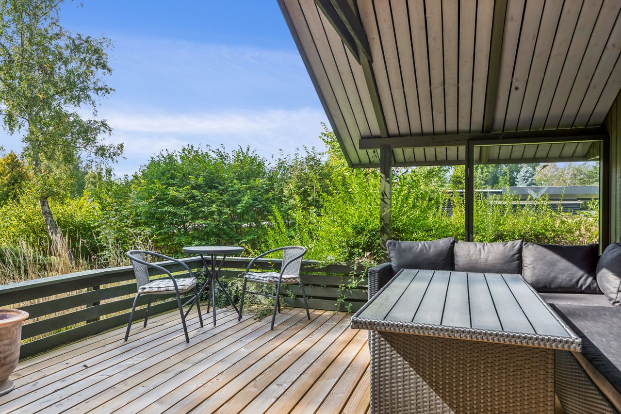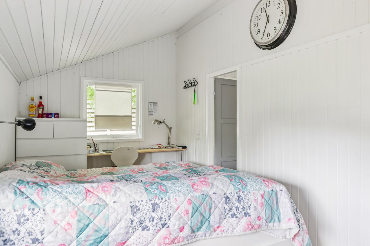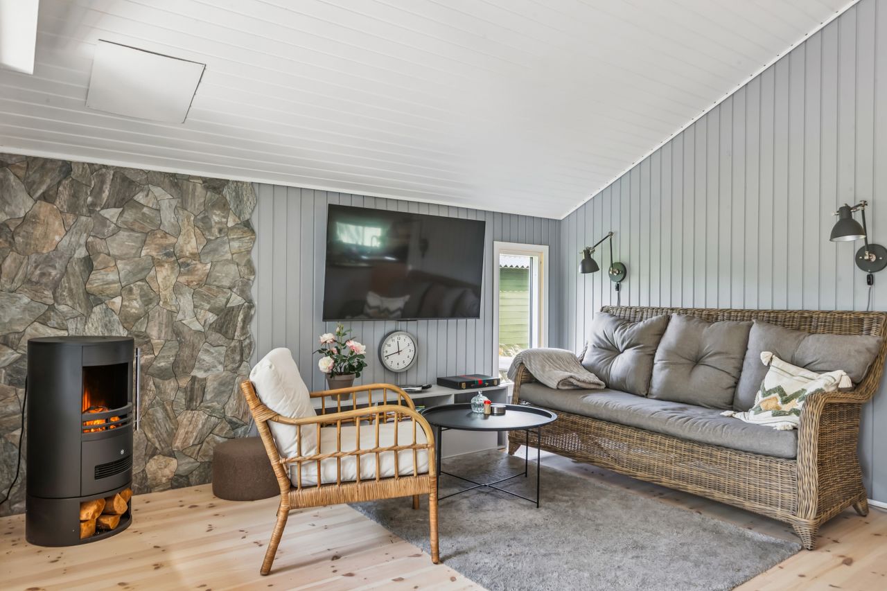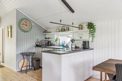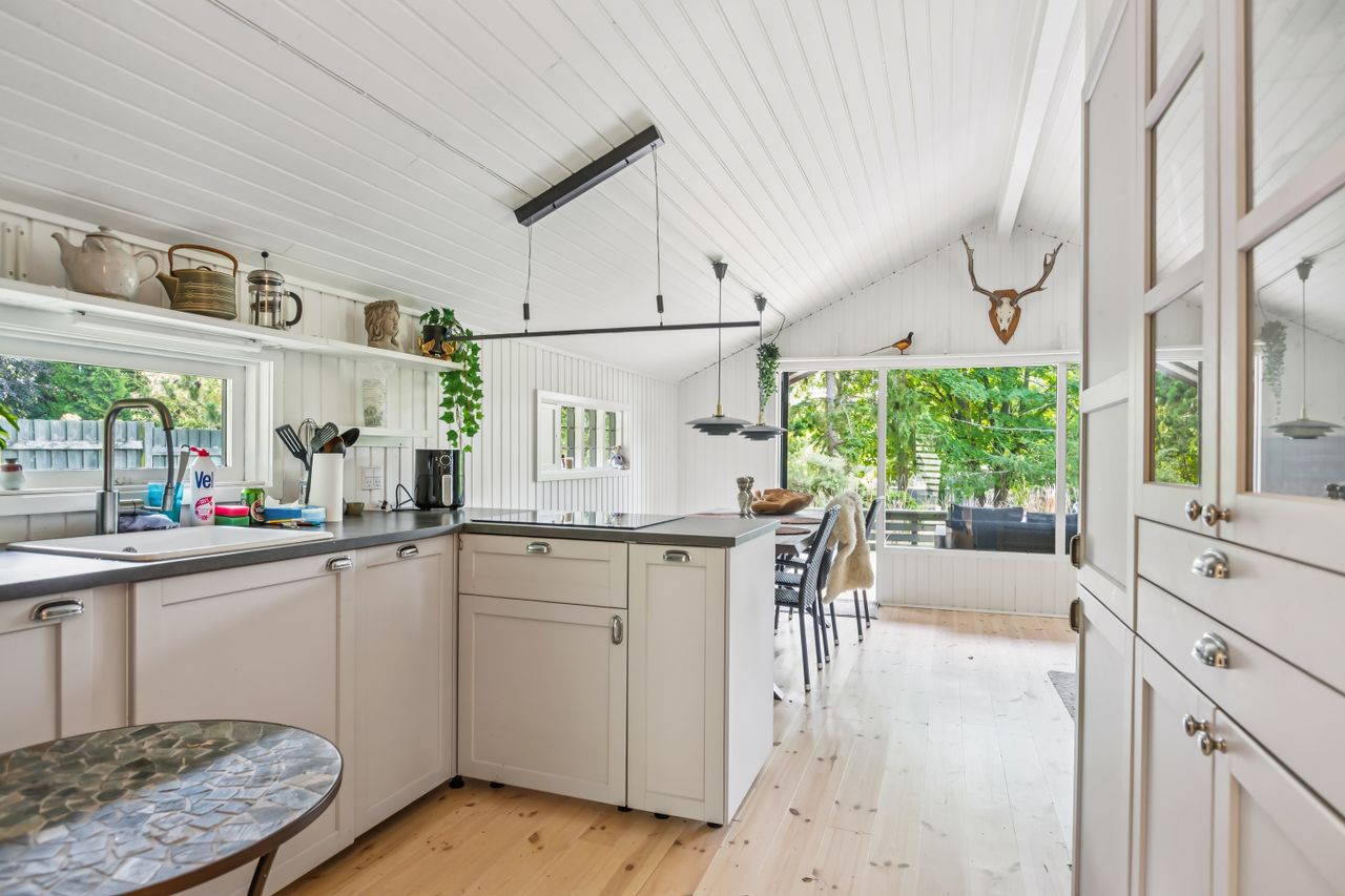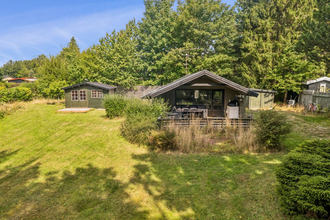 OMRÅDET:I den østlige del af Gilleleje, tæt på Nakkehoved Fyr og kort afstand til golfbaner. Man kan også gå ned til byen og den skønne havn via Fyrstien. Tæt på gode indkøbsmuligheder af dagligvarer samt offentlig transport. EJENDOMMEN:Hyggeligt fritidshus, som har gennemgået en omfattende renovering og opdatering i 2024. Det gælder eks. tag, gulve, køkken og badeværelse.Huset ligger på den nordlige del af grunden, så man kan nyde den store have mod syd. Haven er et fint mix af naturgrund med masser af sol- og opholdsplads samt rhododendroner og et flot lærketræ. Husets store og delvist overdækkede træterrasse vender også mod syd.Her er endvidere et lækkert nyt gæstehus (udhus) med 4 gode sovepladser (ikke godkendt til beboelse). Udhus integreret i hovedhuset. INDRETNINGEN:Overdækket indgangsparti. Entre/lille gang med varmepumpe. Badeværelse med brusehjørne samt flot vask på bord med skuffer - nyt toilet og gulv i november 2025. Stort soveværelse (oprindeligt 2) med skabe og trægulv. Nydeligt og praktisk indrettet køkken åbent til den hyggelige stue med trægulv, stor spiseplads og opholdsplads med sofa. Effektiv el-brændeovn og udgang til den dejlige terrasse. Loft til kip i hele huset. GENEREL STAND:Hyggeligt træfritidshus som er helt indflytningsklart - indbo medfølger.Der mangler bare en ny ejer.