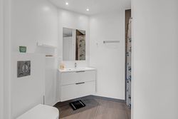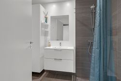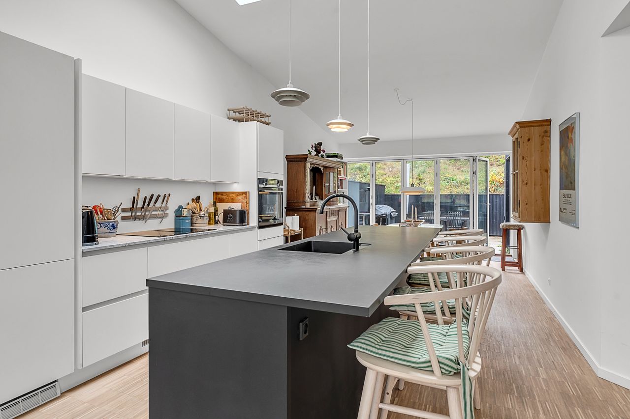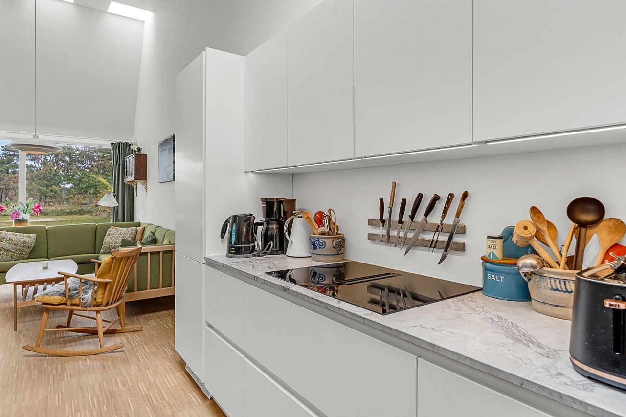 OMRÅDET:Beliggende på vandsiden af Strandvejen finder man denne utrolig gennemførte arkitekttegnede fritidsbolig fra 2022. Alt, hvad man nogensinde kunne ønske sig, er indenfor rækkevide! Gåafstand til offentlig transport, havet, Gilleleje Centrum, indkøb, store frie naturarealer og uendeligt meget mere. Der er altså stisystemer til supermarkeder og byen med nogle af Nordsjællands absolut flotteste gå ruter med udsigt hele vejen til Kullen i Sverige. EJENDOMMEN:Et nyere opført sommerhus med sans for den enkelte detalje. Her får man loft til kip i hele huset, samt et væld af ovenlysvinder og store glasfacader og ikke mindst gulvvarme i hele huset. Til de varme dage har man en stor sydvendt, flisebelagt og ugeneret gårdhave med udendørsbruser. Indbygget carport, samt udhus med både lade boks, ovenlysvinduer og rigtig god plads. Havets buldren og ca. 150 meter til stranden, så bliver det altså ikke meget bedre! INDRETNINGEN:Huset indeholder: Lys entre med garderobeplads. Stort badeværelse med klinker og muret bruseniche. Fantastisk flot HTH køkken med køkken arbejdsø, god skabsplads og et betagende lysindfald fra det store ovenlysvindue. Opholdsstue med hele 4 ovenlysvinduer og en kæmpe glas facade i retning mod kysten. Spisestue med et pragtfuldt glasparti som også åbner op til hele terrassen. Kæmpe soveværelse (tidligere 2) med egen udgang til terrassen og rigtig fin skabsplads. Lyst soveværelse med stort glasparti i retning af kysten og adgang til eget badeværelse. Badeværelse med klinker, skabsplads og muret bruseniche. GENEREL STAND:Et utrolig gennemført og velholdt sommerhus med lav vedligeholdelse. Her skal man ikke bevæge en finger, men altså bare holde ferie!