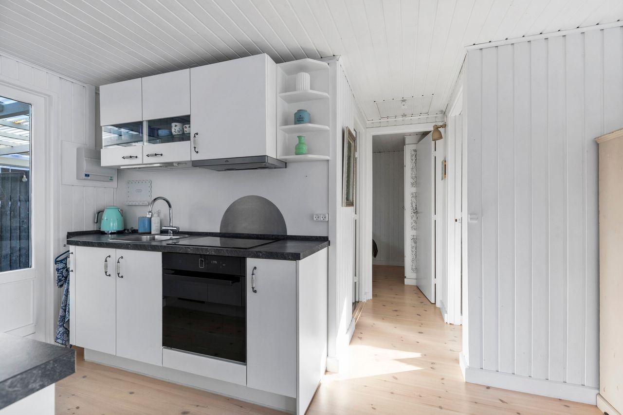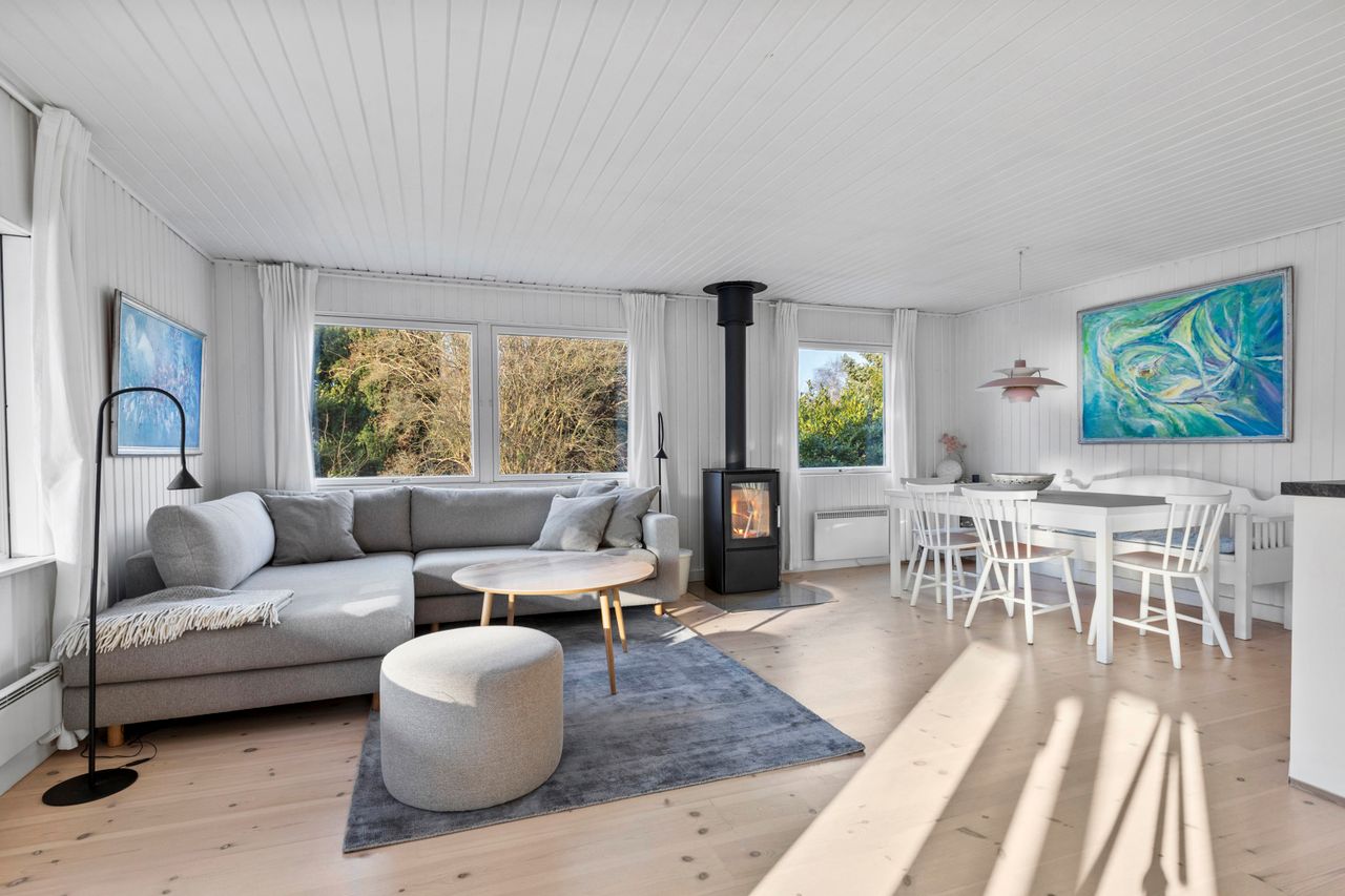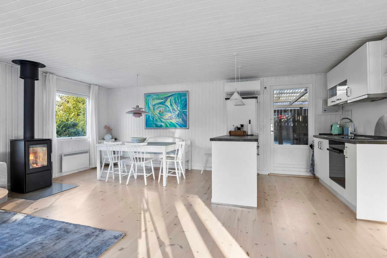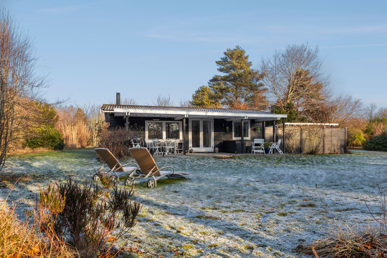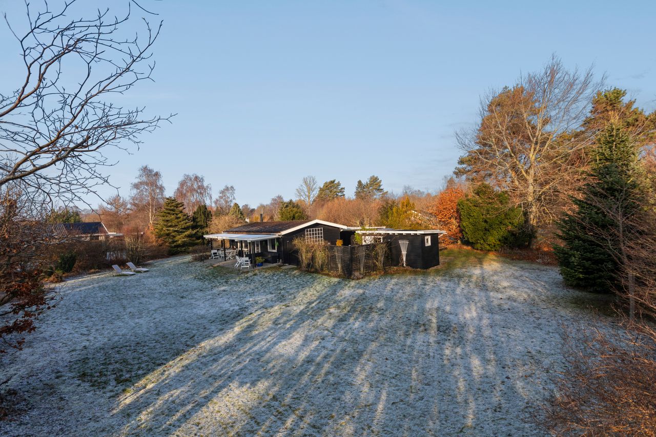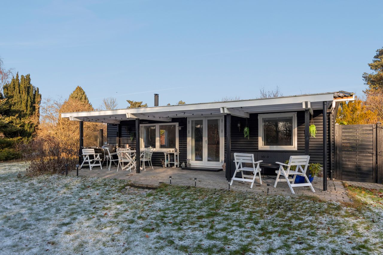 OMRÅDET:I den østlige del af Gilleleje - tæt på Nakkehoved Fyr og golfbane. 10 - 15 minutters gang til stranden. 2 km. til indkøb. Under 3 km. til den skønne havn og den hyggelige by med butikker, restauranter m.m. EJENDOMMEN:Rigtig hyggeligt træfritidshus med rolig beliggenhed og stor skøn solrig have med pæn beplantning.Huset er sat i stand og har fået en fin opdatering inden for de sidste 2-3 år. Herunder: Køkken, gulve i stue og værelser, ny dobbelt terrasse dør samt!Skøn ugeneret gårdhave samt stor overdækket fliseterrasse. Stort overdækket flisebelagt areal ved husets indgang.Carport og 2 udhuse. INDRETNINGEN:Huset indeholder: Stor, lys og rummelig stue med både spise- og opholdsplads samt åbent køkken. Køkkenet har hvide elementer og pæn bordplade. Brændeovn i stuen og udgang til terrassen. Soveværelse med stort klædeskab samt endnu et værelse med skab og plads til en 1½-mands seng. Badeværelse med brusehjørne. GENEREL STAND:Hyggeligt, velindrettet og indflytningsklart.