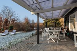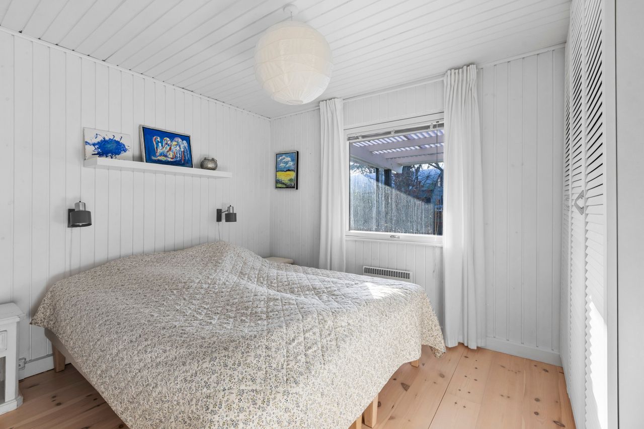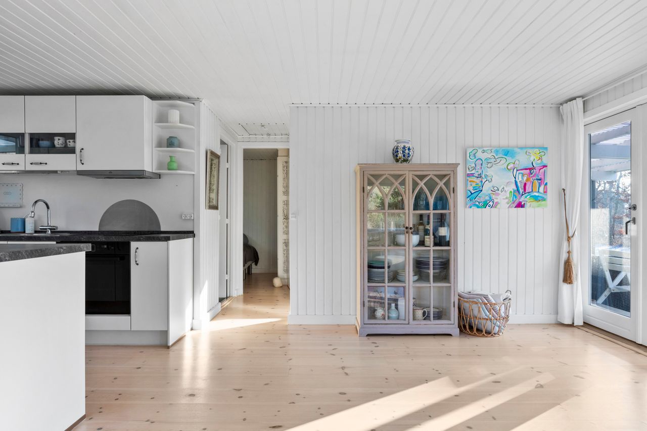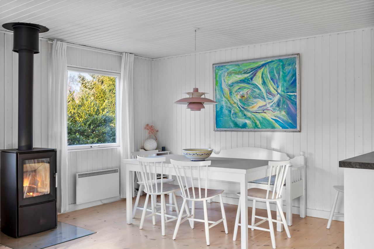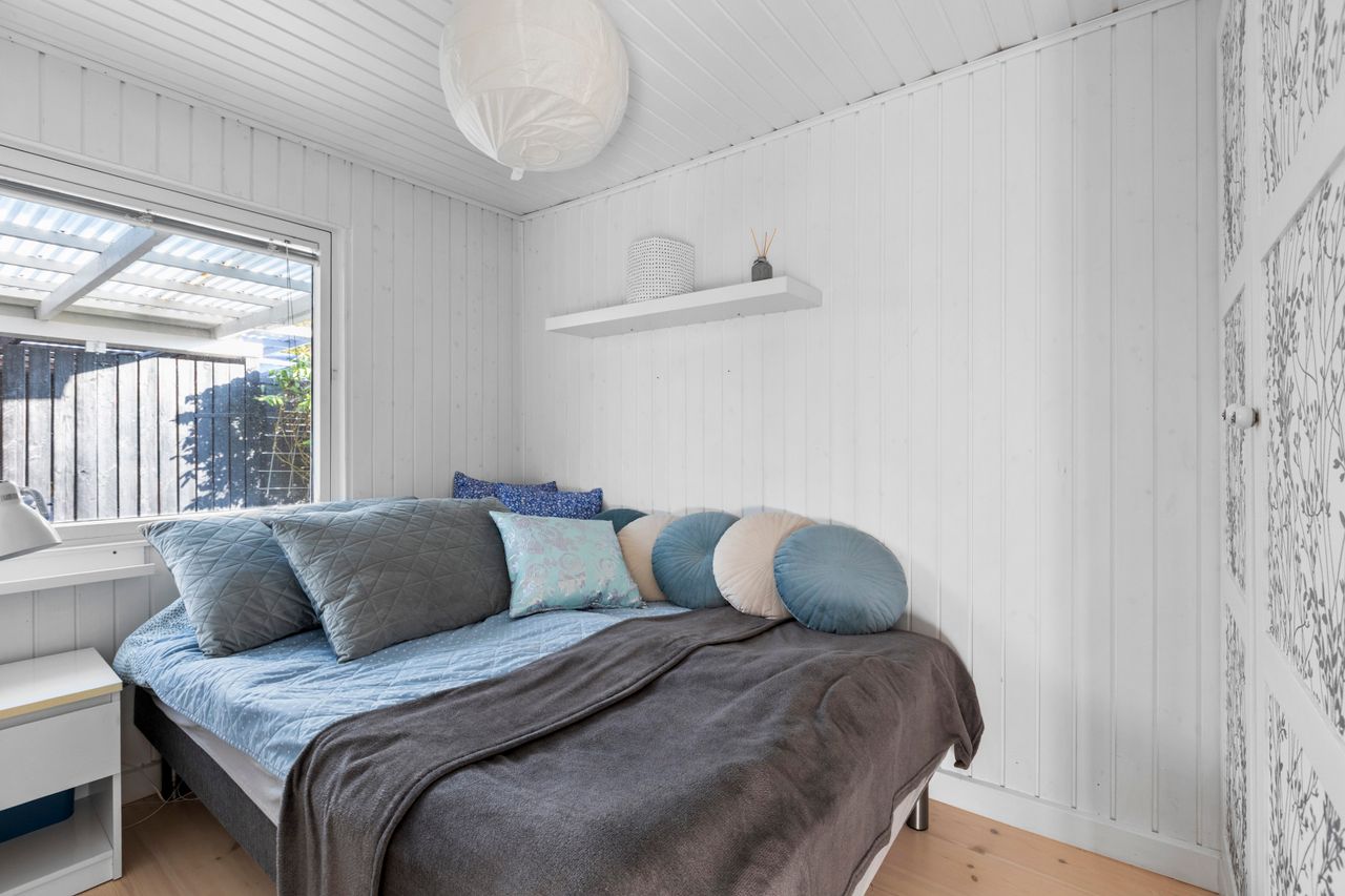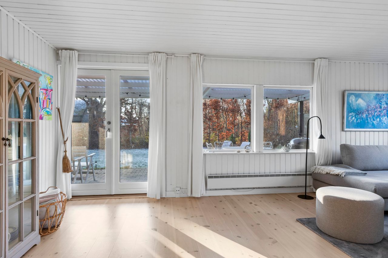OMRÅDET:I den østlige del af Gilleleje - tæt på Nakkehoved Fyr og golfbane. 10 - 15 minutters gang til stranden. 2 km. til indkøb. Under 3 km. til den skønne havn og den hyggelige by med butikker, restauranter m.m. EJENDOMMEN:Rigtig hyggeligt træfritidshus med rolig beliggenhed og stor skøn solrig have med pæn beplantning.Huset er sat i stand og har fået en fin opdatering inden for de sidste 2-3 år. Herunder: Køkken, gulve i stue og værelser, ny dobbelt terrasse dør samt!Skøn ugeneret gårdhave samt stor overdækket fliseterrasse. Stort overdækket flisebelagt areal ved husets indgang.Carport og 2 udhuse. INDRETNINGEN:Huset indeholder: Stor, lys og rummelig stue med både spise- og opholdsplads samt åbent køkken. Køkkenet har hvide elementer og pæn bordplade. Brændeovn i stuen og udgang til terrassen. Soveværelse med stort klædeskab samt endnu et værelse med skab og plads til en 1½-mands seng. Badeværelse med brusehjørne. GENEREL STAND:Hyggeligt, velindrettet og indflytningsklart.