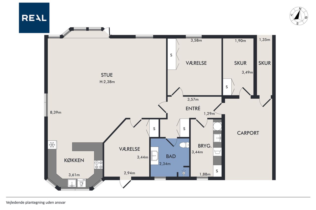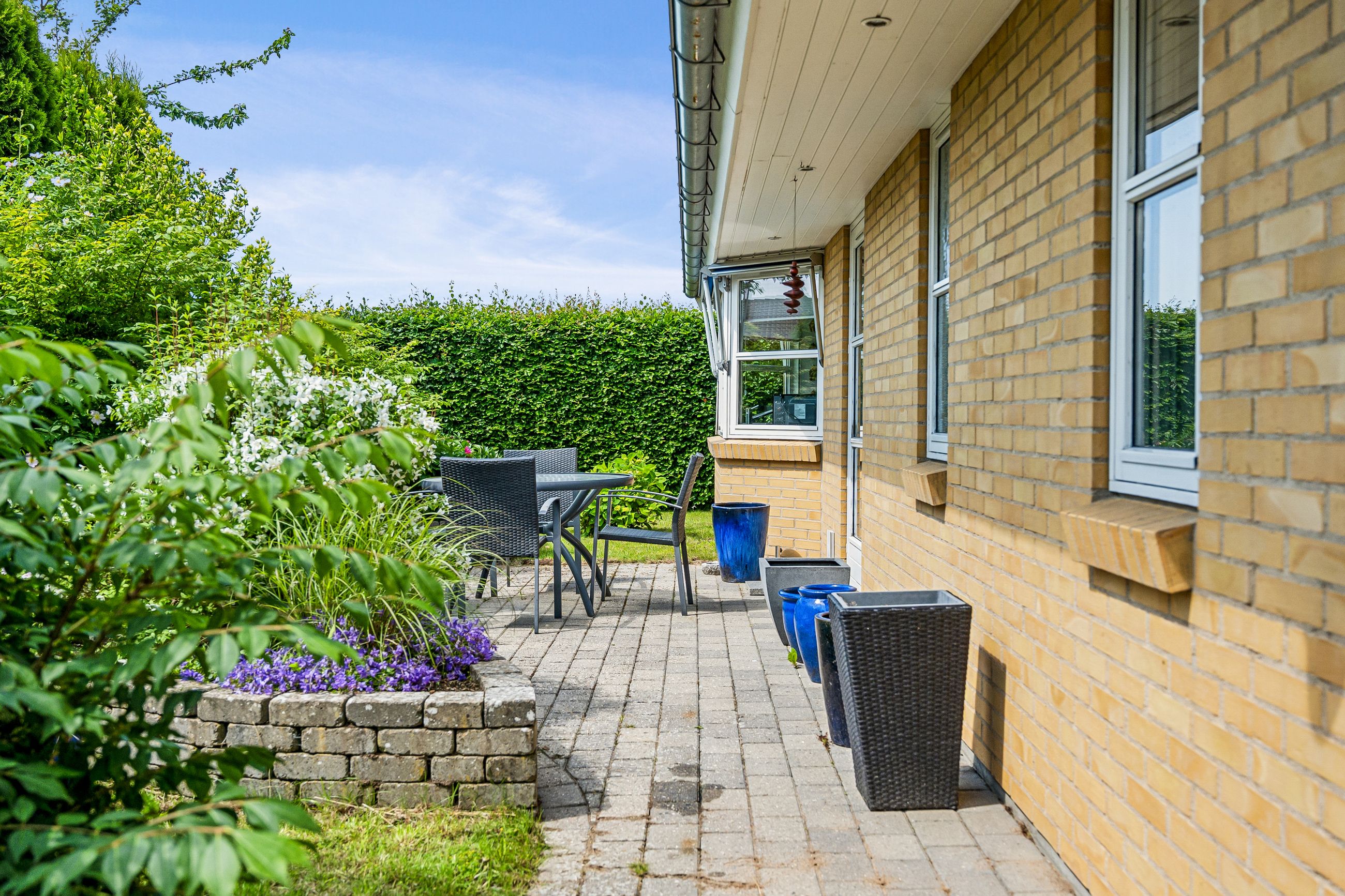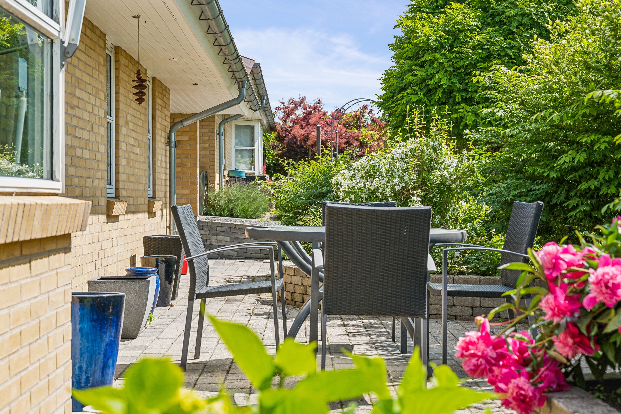 Boligen rummer 110 m2 og fremstår både lys og indbydende. Indretningen er gennemtænkt og funktionel med et åbent køkken i direkte forbindelse til stuen, hvorfra der er udgang til terrasse og en overskuelig have. Her kan du nyde de lange sommeraftener i fredelige omgivelser. Derudover byder boligen på to gode værelser, et lyst badeværelse med bruseniche, et praktisk bryggers og entré.