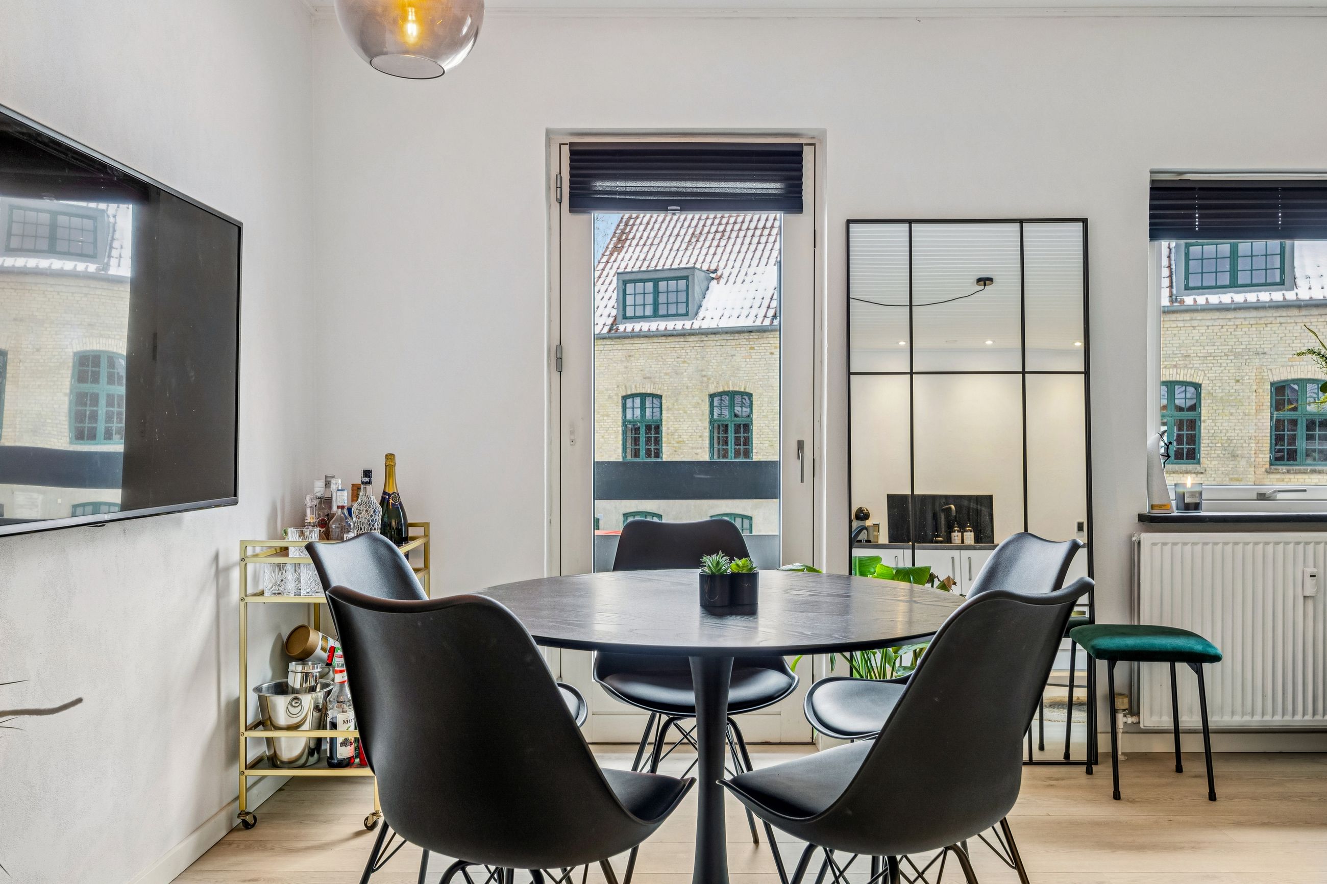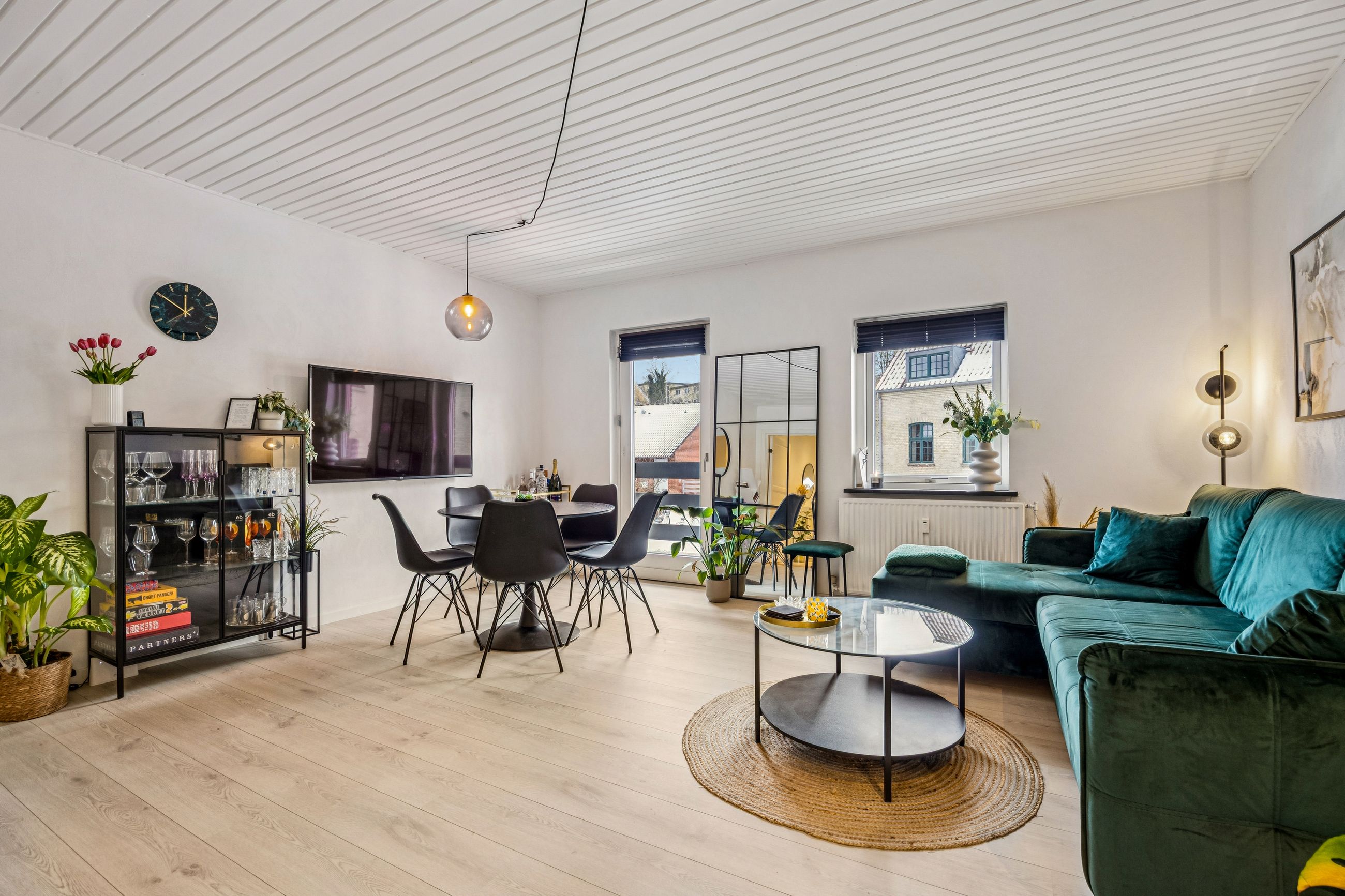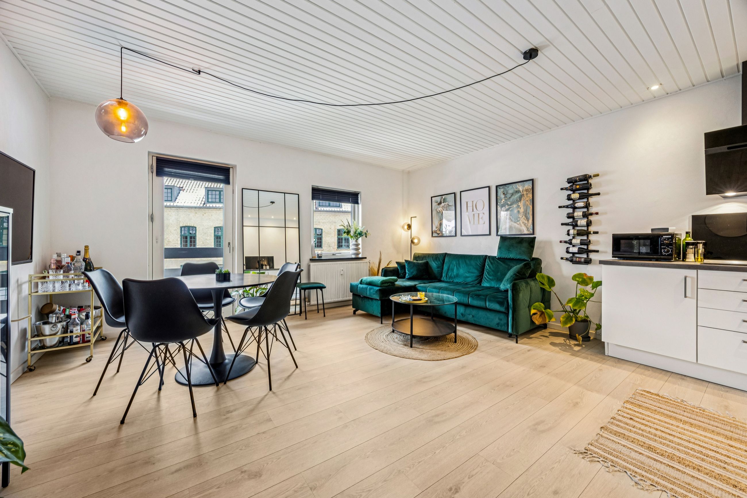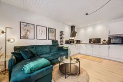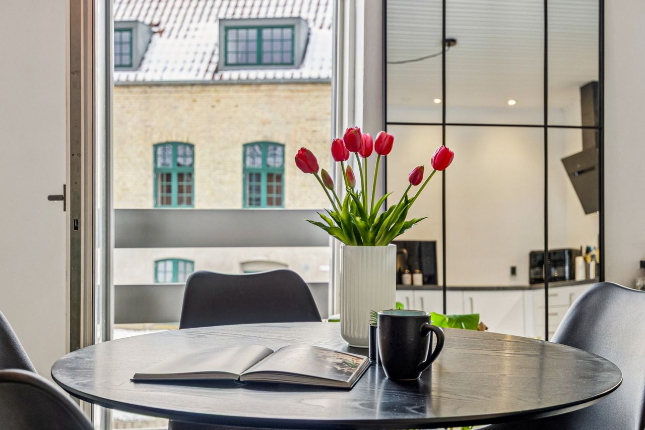 Lejligheden byder på en rummelig entré med god plads til overtøj, et stilrent badeværelse i tidssikre materialer samt et dejligt soveværelse med fin indretning og naturligt lysindfald. Det store opholdsrum kombinerer køkken og stue i ét – perfekt til både hverdagsliv og hyggelige aftener. De store vinduespartier giver et flot lys og skaber en åben og luftig fornemmelse.