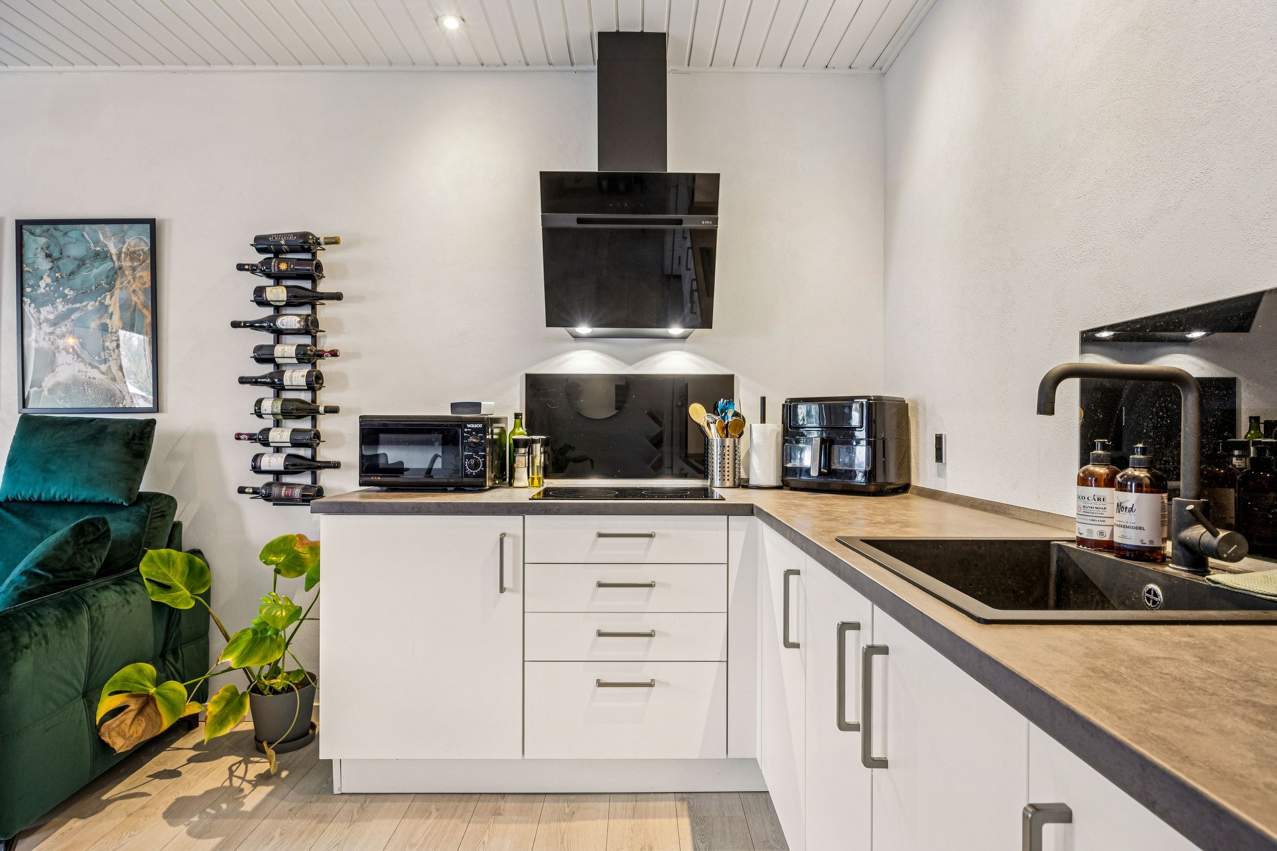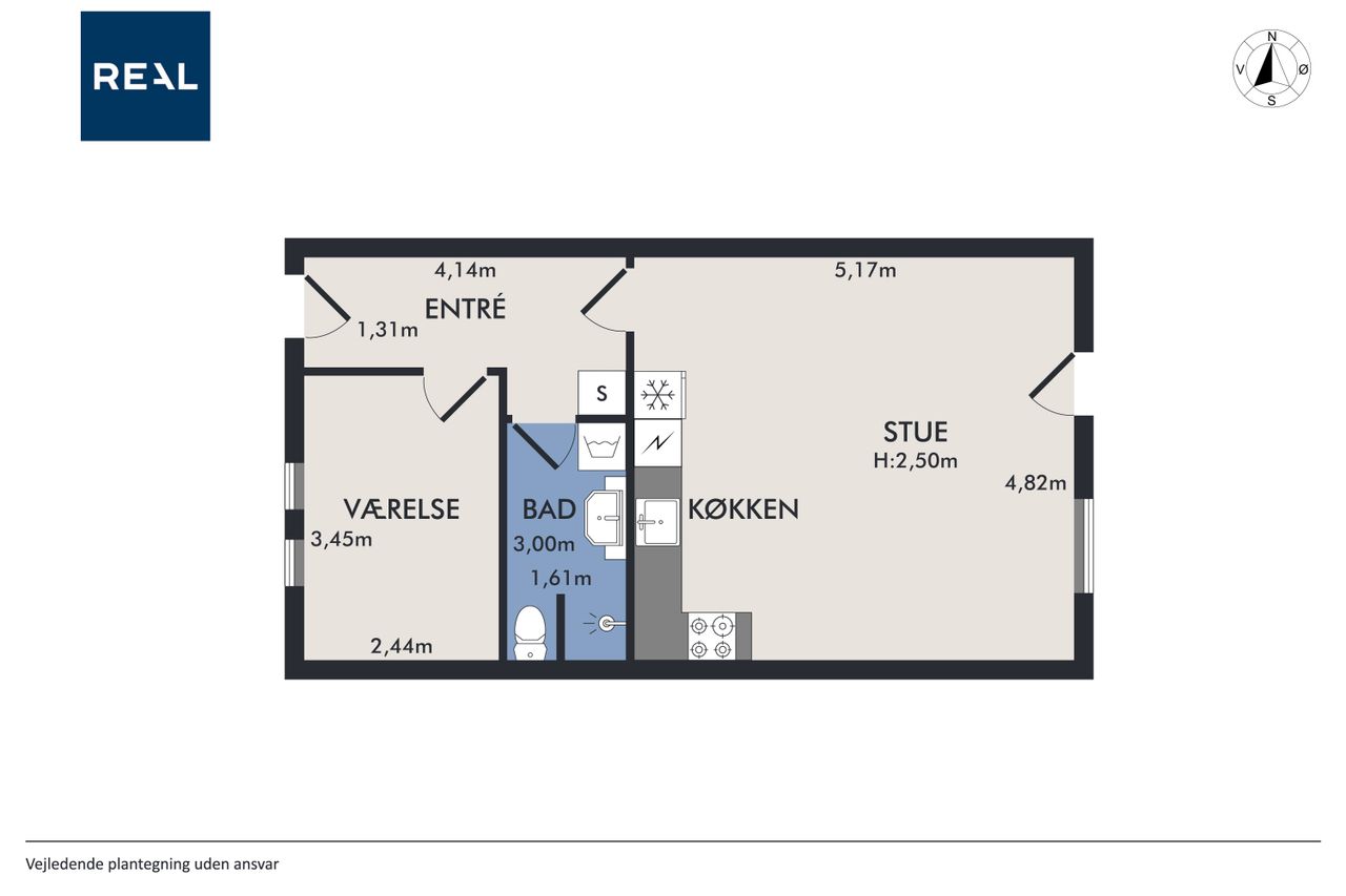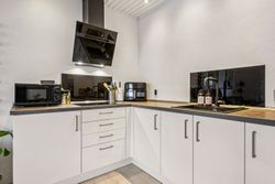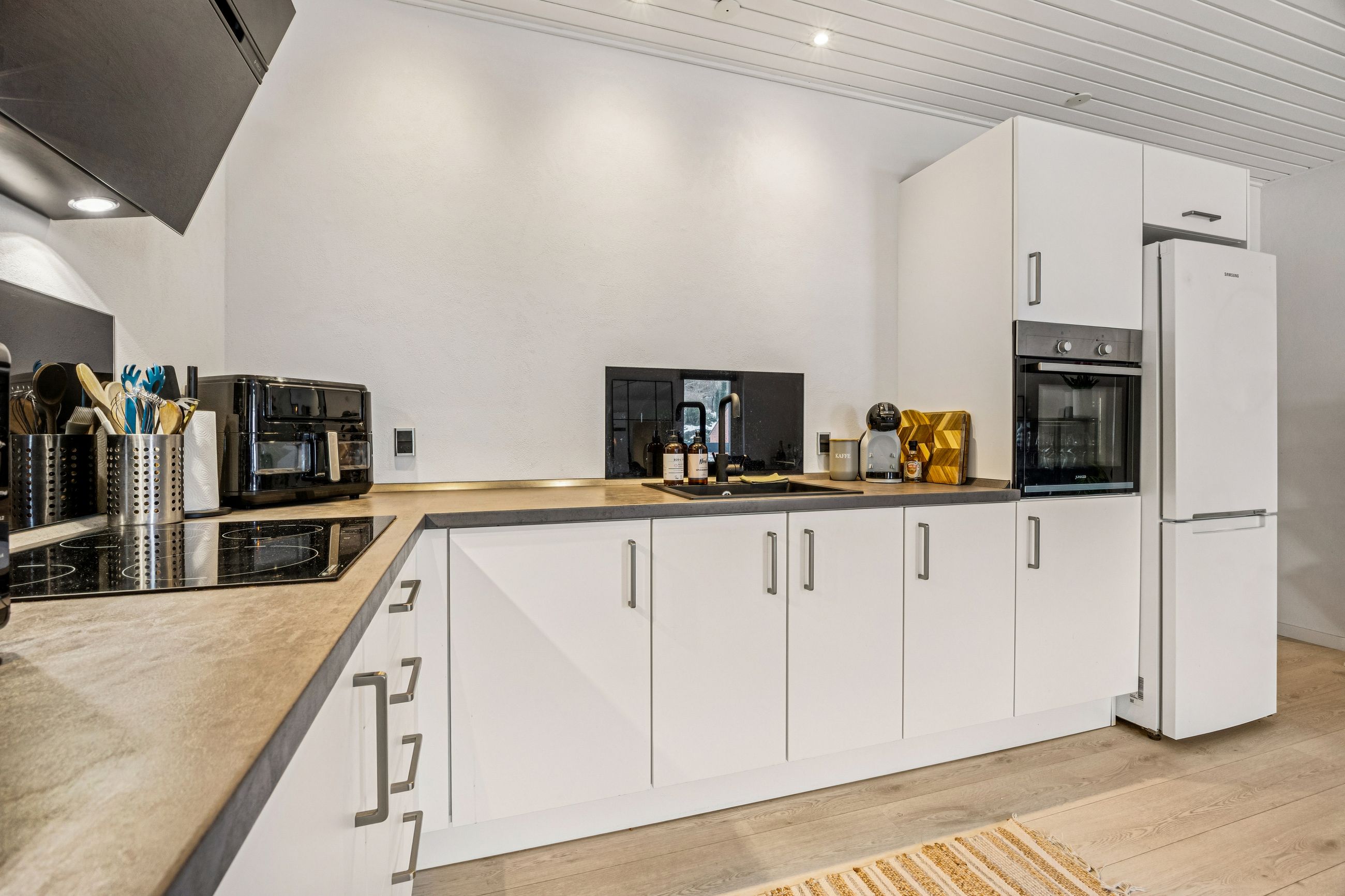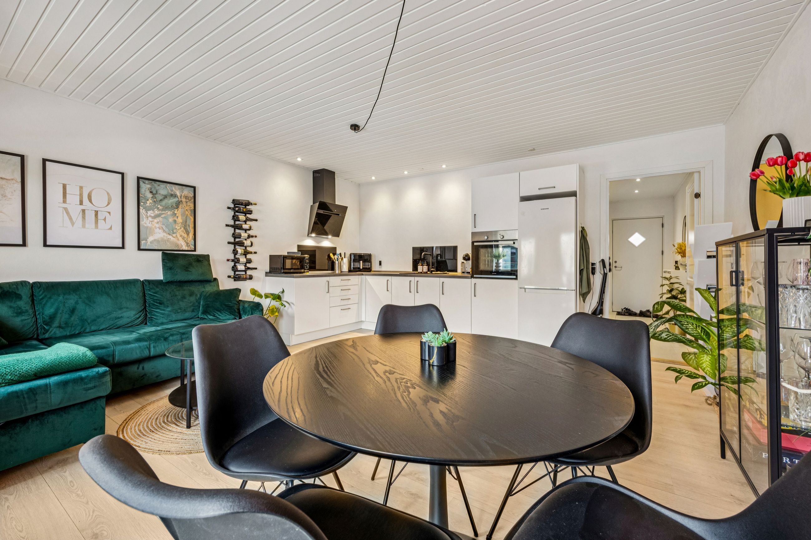 Lejligheden byder på en rummelig entré med god plads til overtøj, et stilrent badeværelse i tidssikre materialer samt et dejligt soveværelse med fin indretning og naturligt lysindfald. Det store opholdsrum kombinerer køkken og stue i ét – perfekt til både hverdagsliv og hyggelige aftener. De store vinduespartier giver et flot lys og skaber en åben og luftig fornemmelse.
