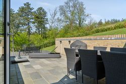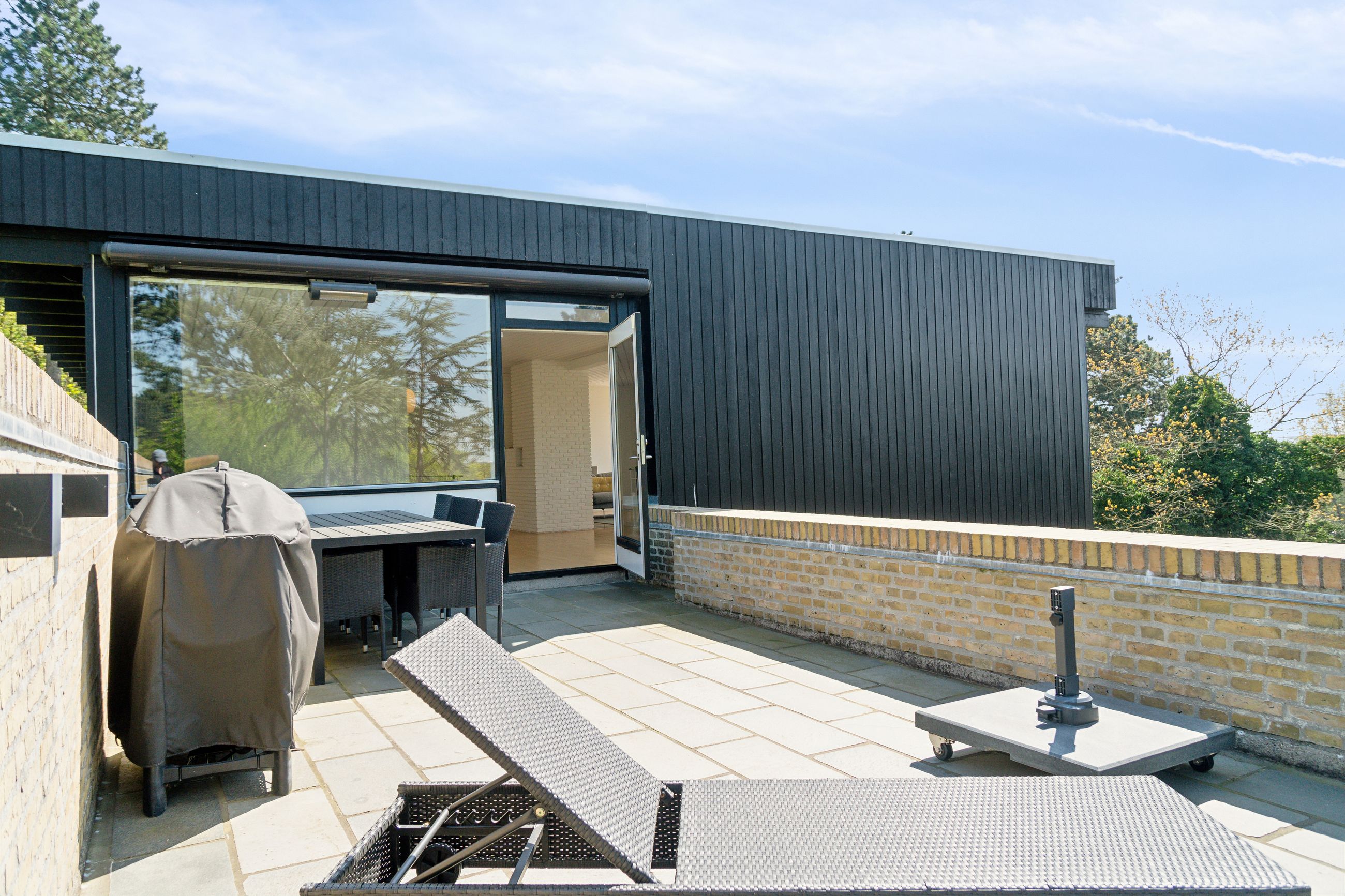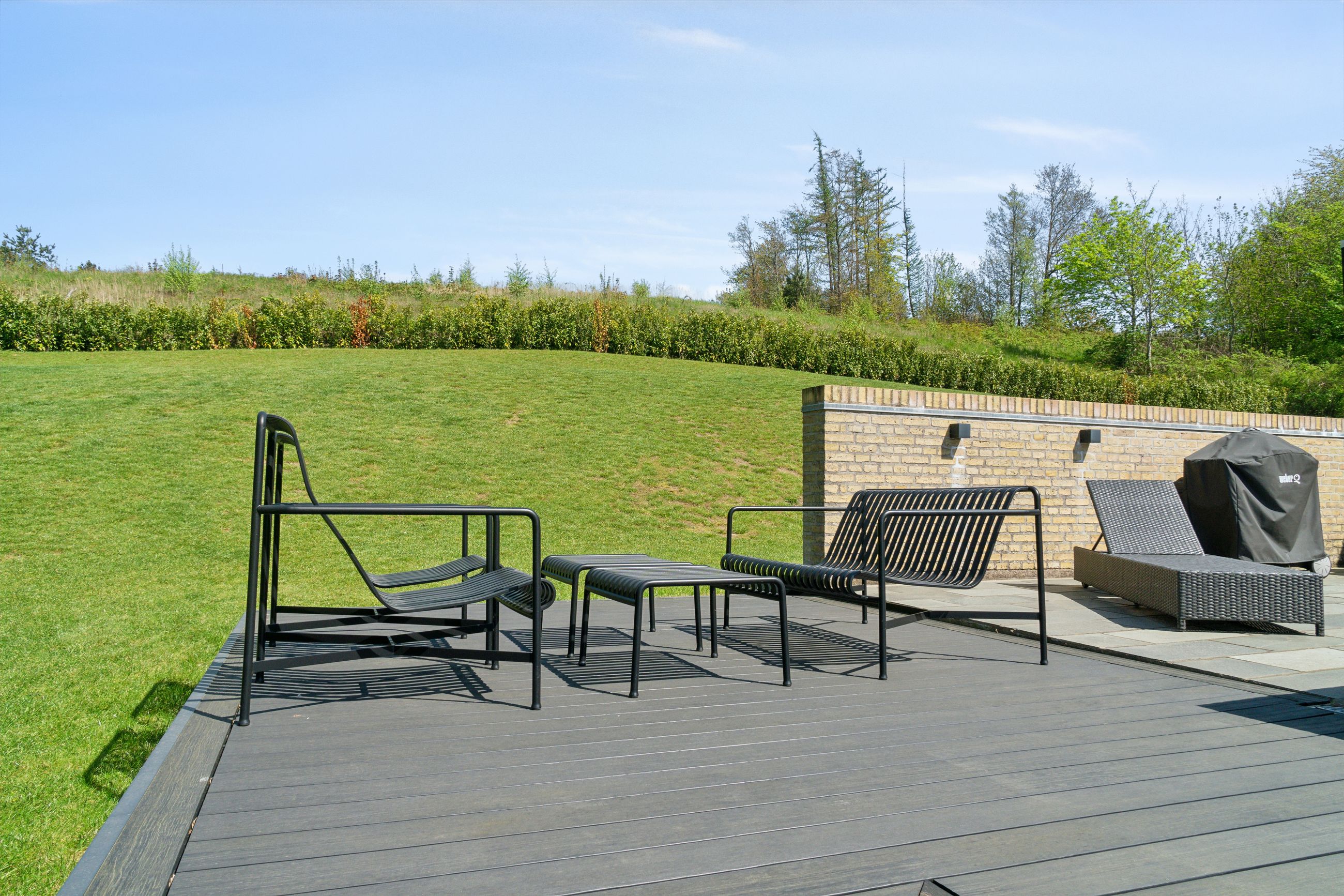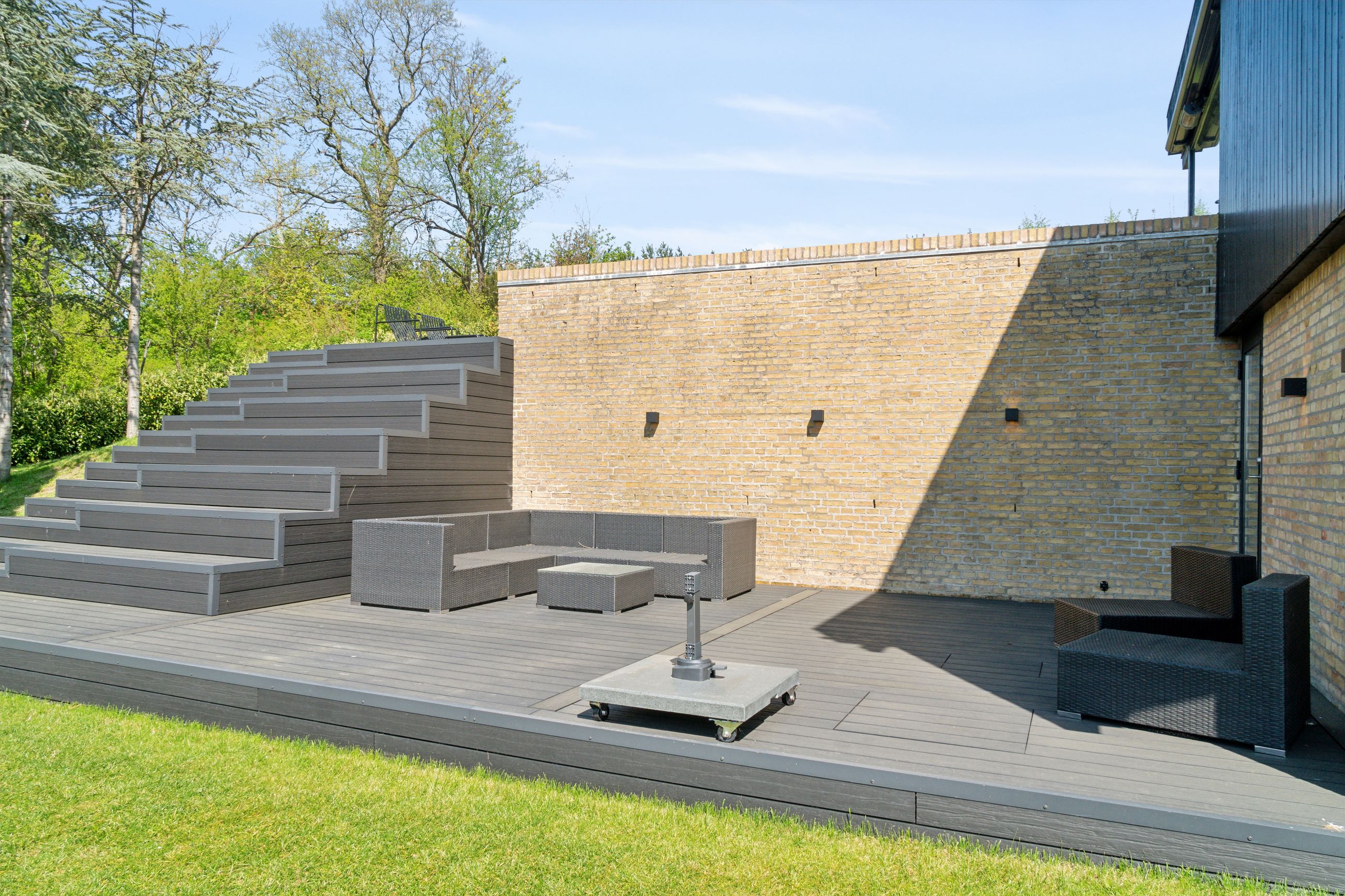 Udenfor finder I terrasser til enhver lejlighed, hvor I kan nyde roen og den fantastiske udsigt i ugenerede omgivelser. Haven, der falder smukt i terrasser, tilbyder både privatliv og plads til leg og afslapning. I bunden af grunden ligger en dobbelgarage, som fuldender de praktiske detaljer.