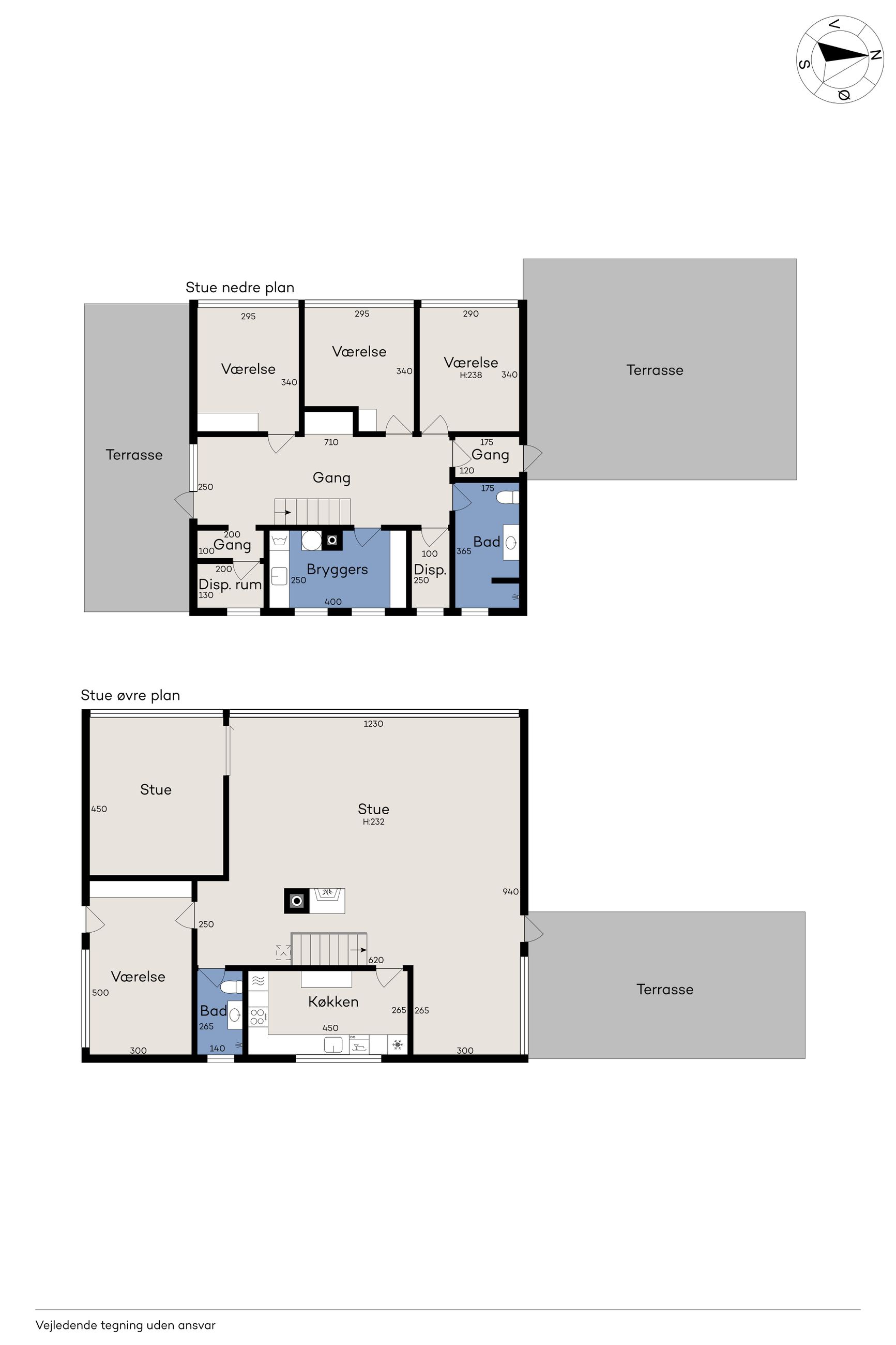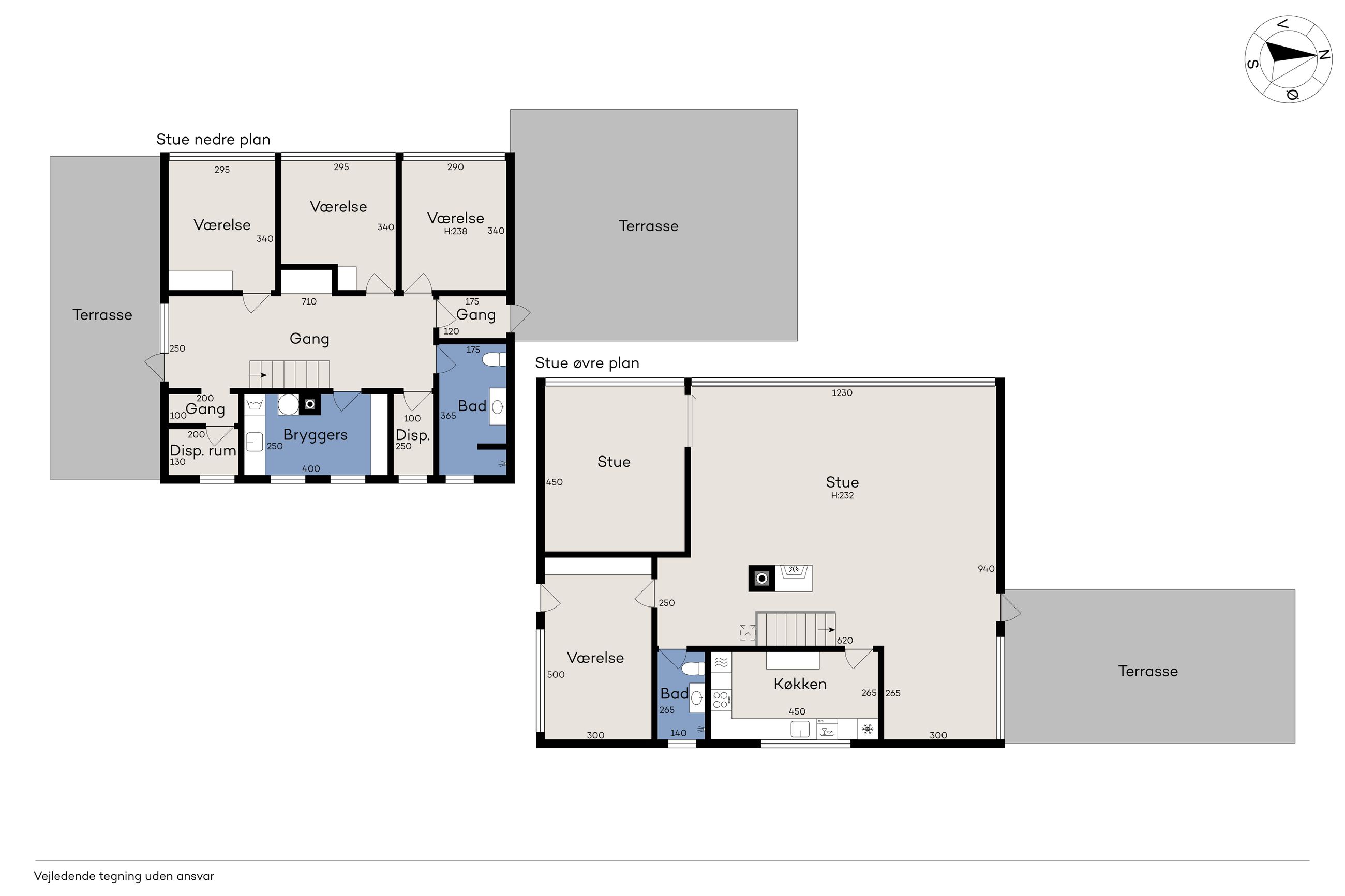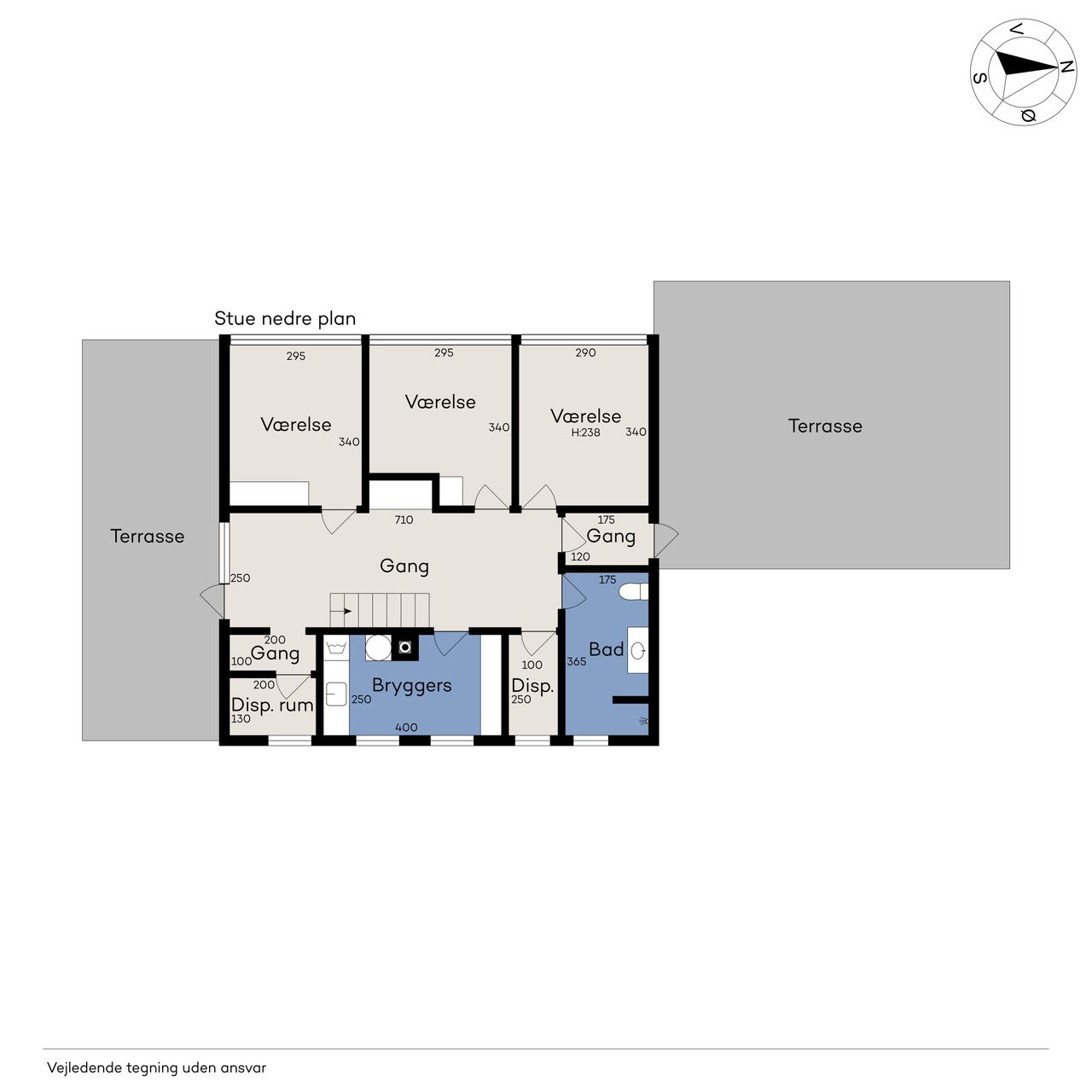 Underetagen er dedikeret til børnenes afdeling med tre store værelser, eget badeværelse og en separat indgang – ideelt til teenageren eller gæster. Derudover findes et praktisk bryggers og en mellemgang, der let kan indrettes som hyggekrog.