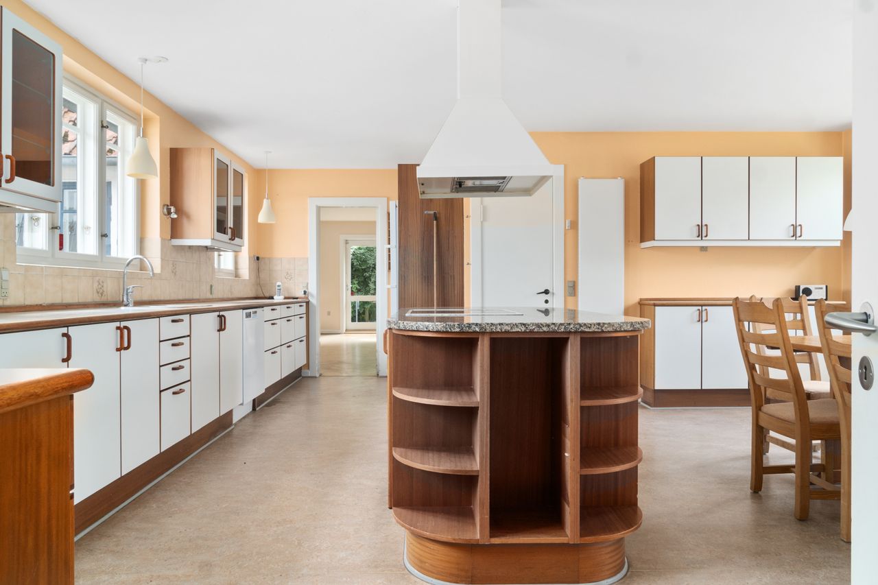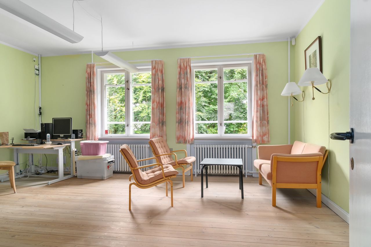 Den gamle konfirmandstue med egen indgang, toilet og køkken giver mulighed for at indrette et separat gæsteområde eller måske et hjemmekontor.
