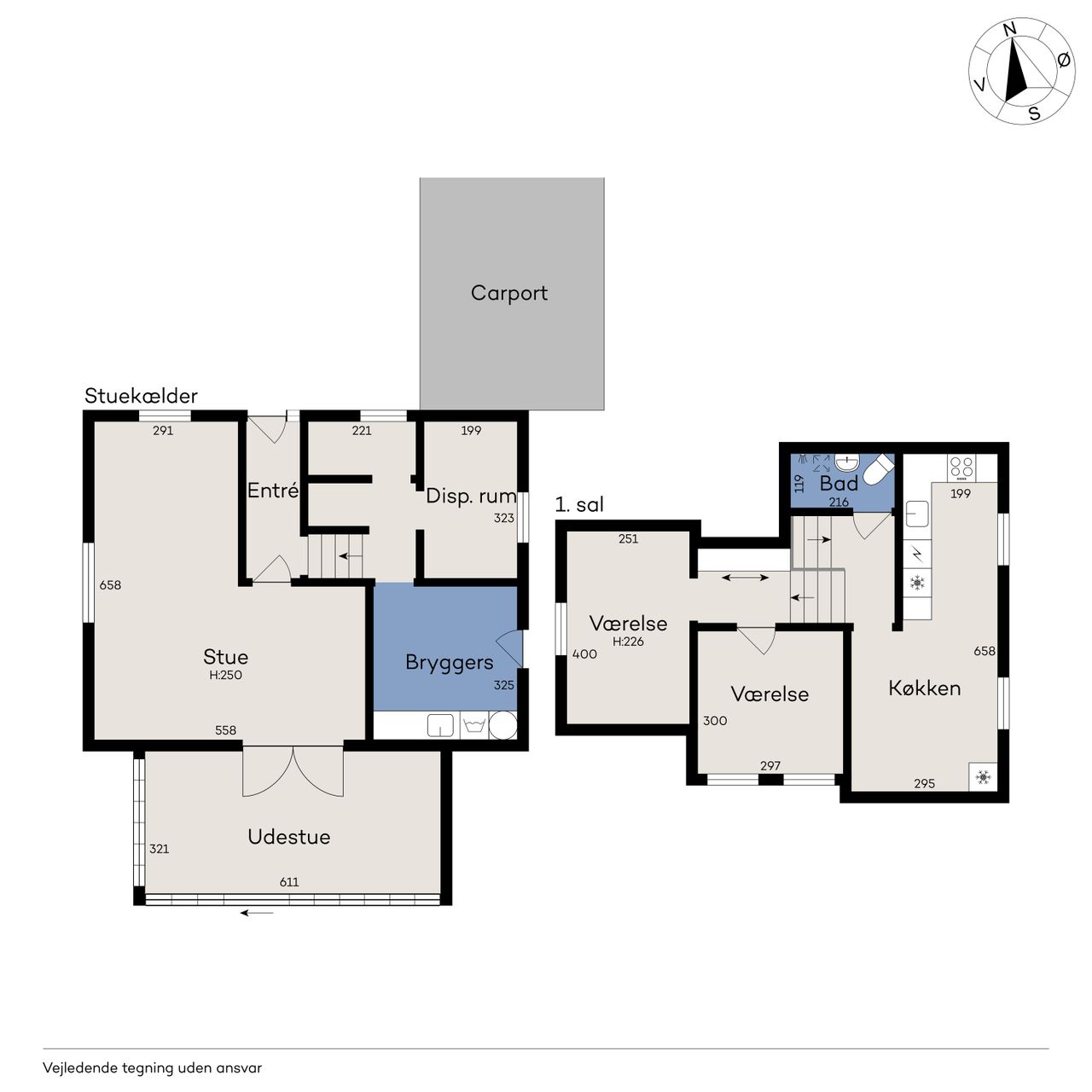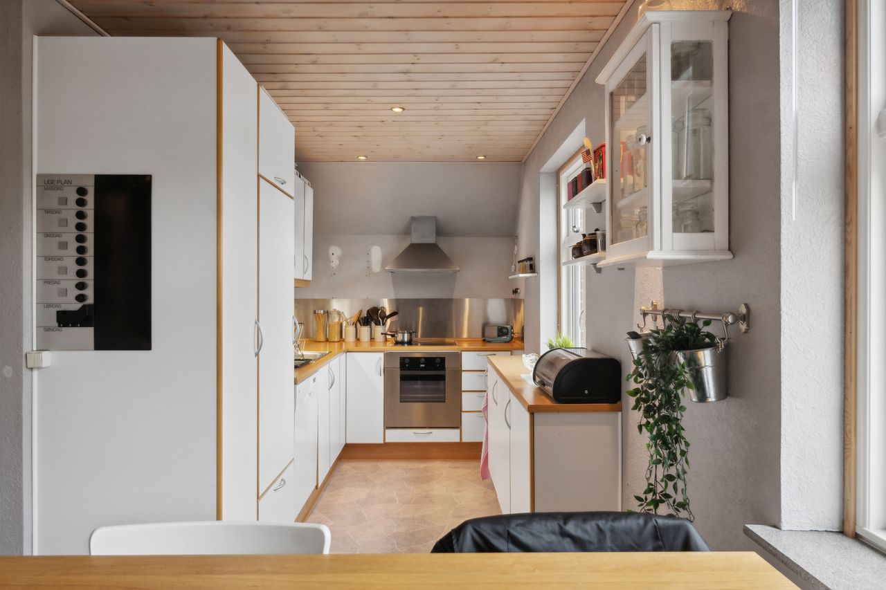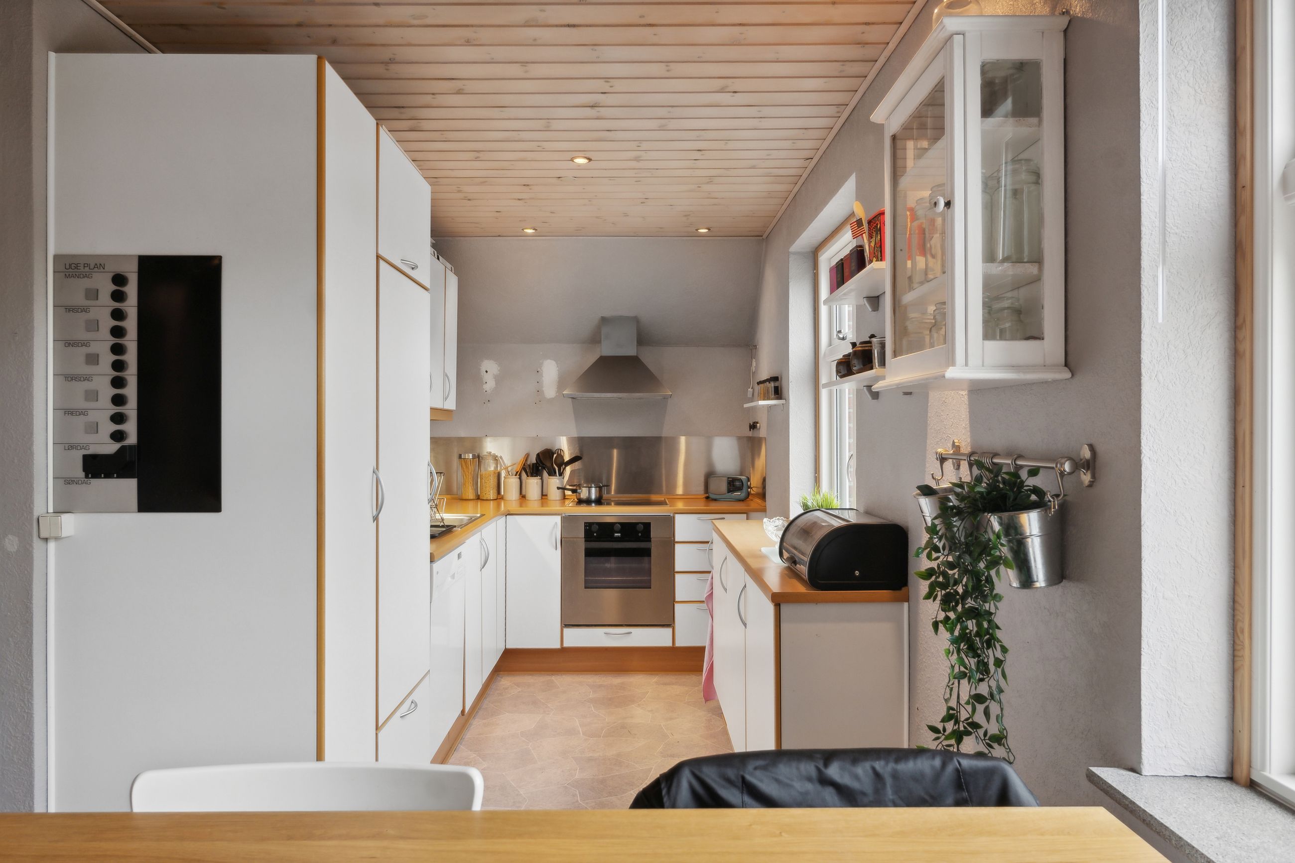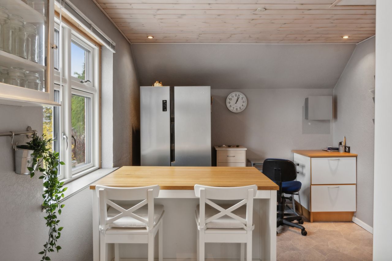 På førstesalen finder I et stort, pænt køkken med god opbevaringsplads og mulighed for at etablere en spisesektion. Badeværelset med brus er lige ved siden af, og en skabsgang leder jer videre til de to regulære værelser, som nemt kan indrettes efter jeres behov.
