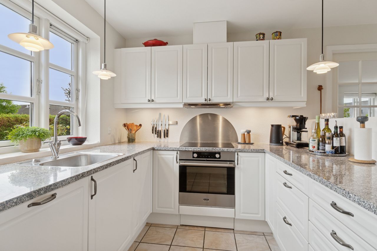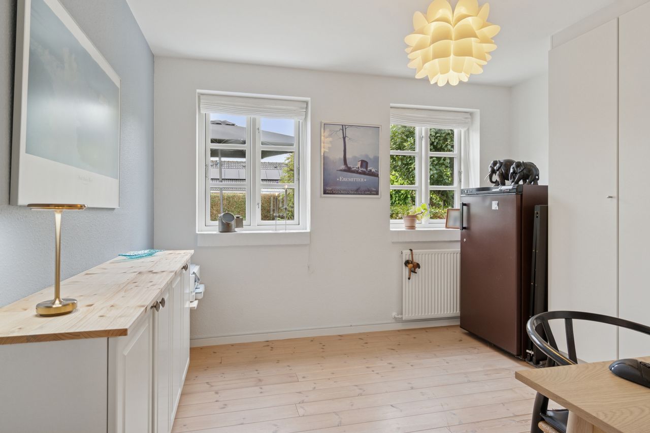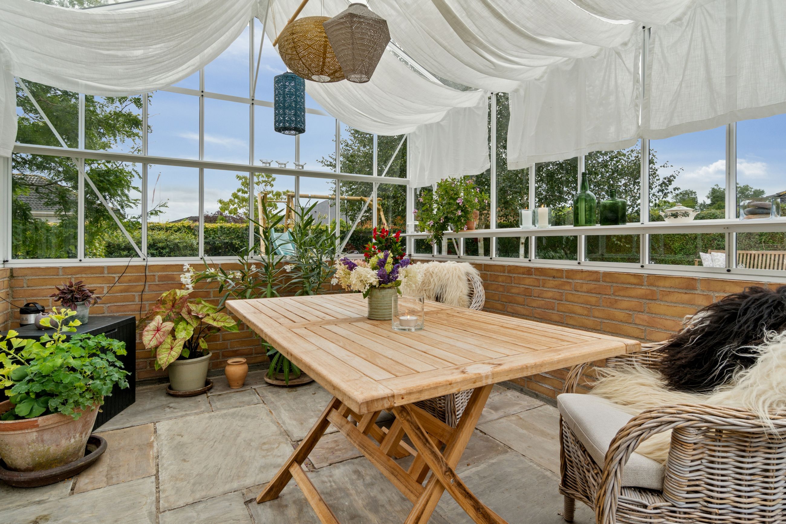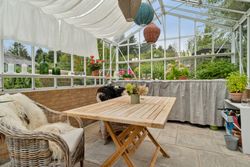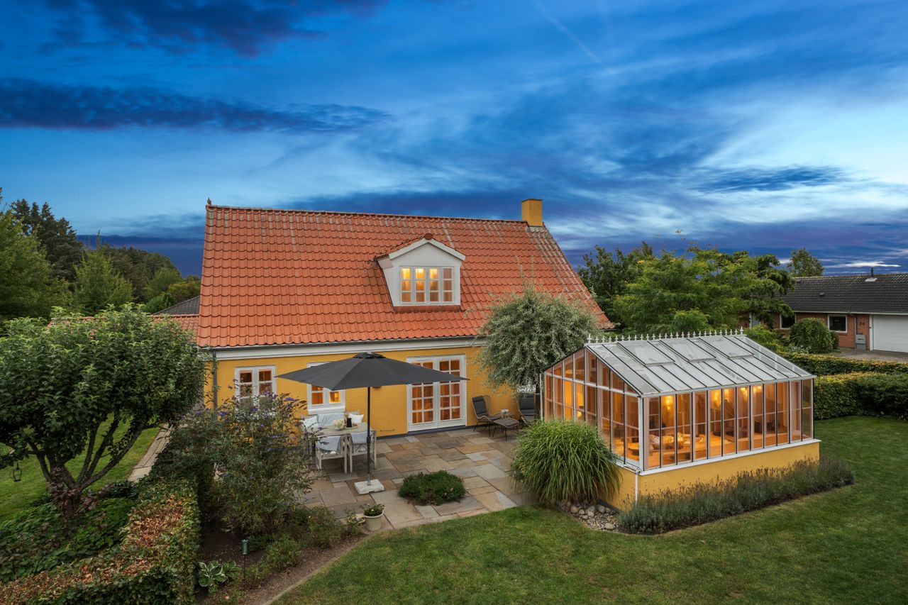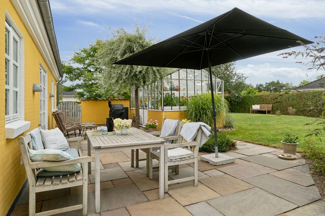 En af boligens helt store kvaliteter er det skønne orangeri – et ekstra rum med lys og liv, hvor I kan nyde både hverdag og gæster året rundt, uanset vejret. Udenfor venter en dejlig, overskuelig have med flot beplantning, grøn græsplæne til leg og flere hyggelige, solrige terrasser, hvor I kan slappe af med en kop kaffe, grillmiddage og gode stunder med børnene.