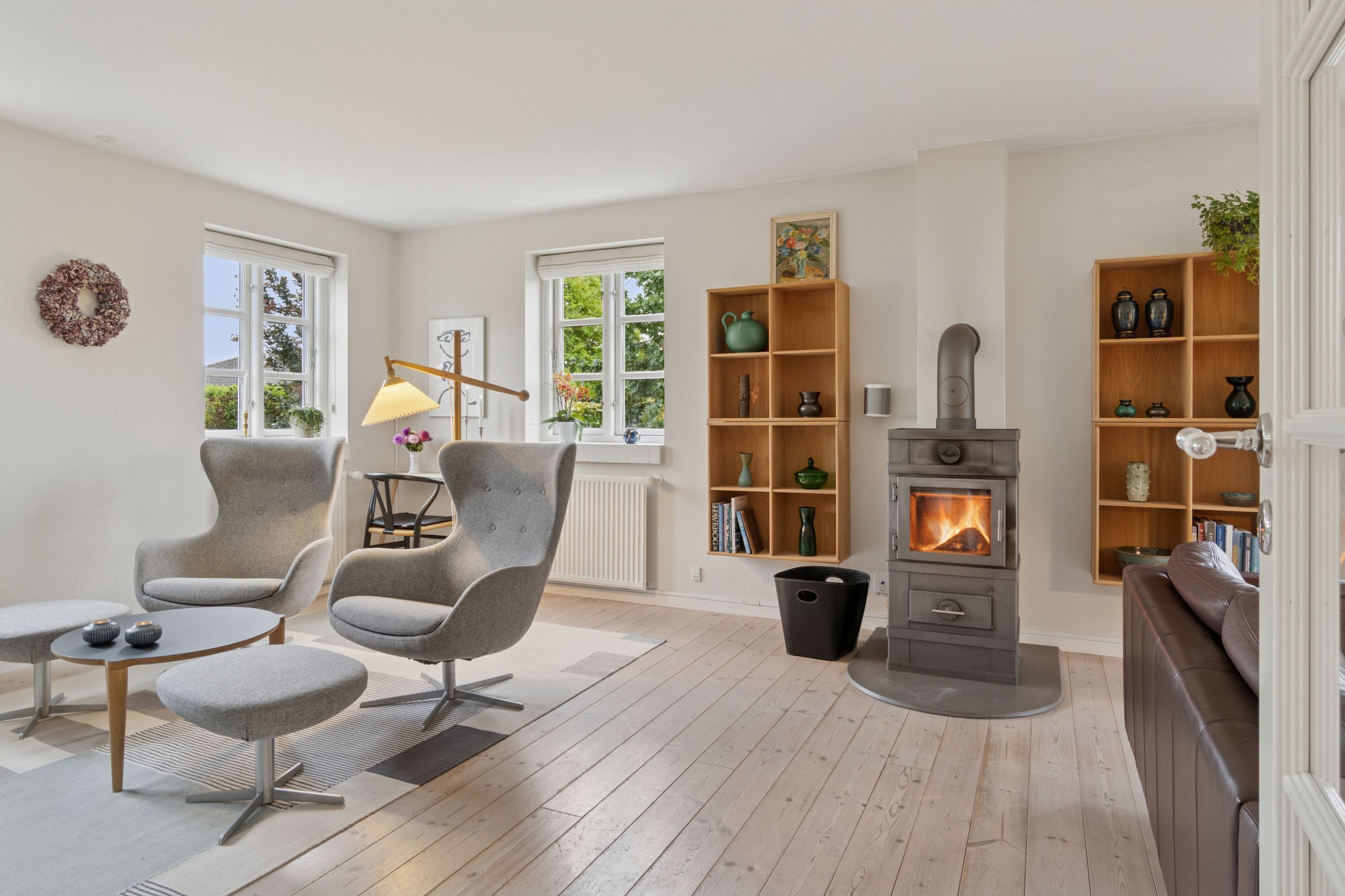Boligen fra 2004 er indrettet med fokus på funktionalitet og familievenlighed. På førstesalen finder I 3 gode værelser (mulighed for 4), møblerbar repos samt et badeværelse – ideelt til både børneværelser og forældresoveværelse. I stueetagen er der et praktisk kombineret bryggers og entré med god opbevaringsplads, et lyst og åbent køkken-alrum med direkte udgang til haven og terrassen – det naturlige samlingspunkt for familien – samt en rummelig opholdsstue med brændeovn og et værelse ideelt til hjemmekontor samt et badeværelse.