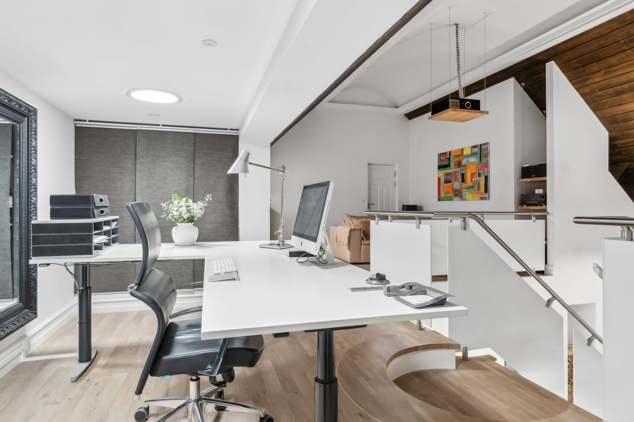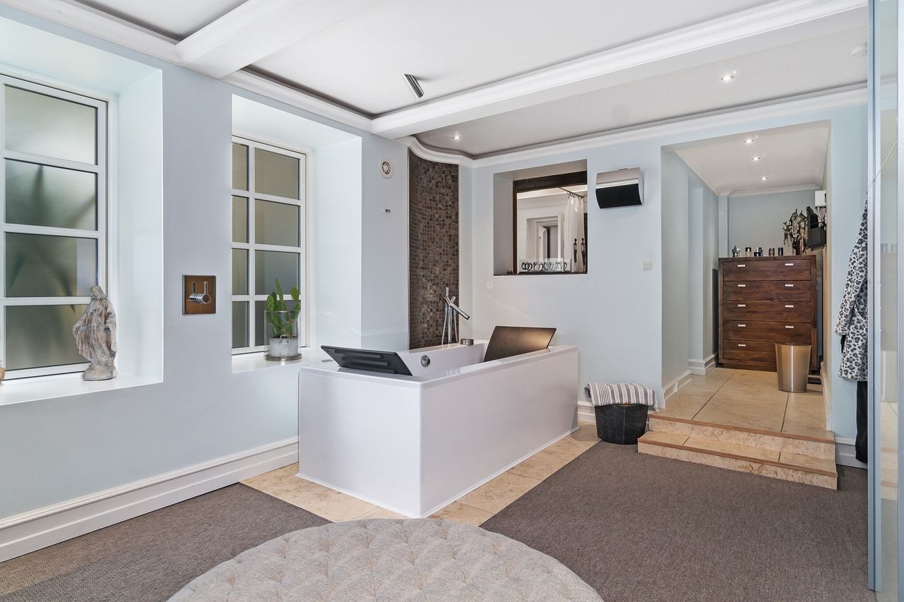 Ejendommen er totalrenoveret i perioden 2003-2007 og fremstår med et klassisk og moderne udtryk. Det sortglaserede tegltag og facaden med hvide stenplader og zink sikrer minimal vedligeholdelse, mens luksuriøse detaljer som en loftshøjde på otte meter og mørkbejdset lærketræ skaber en unik atmosfære indendørs.
