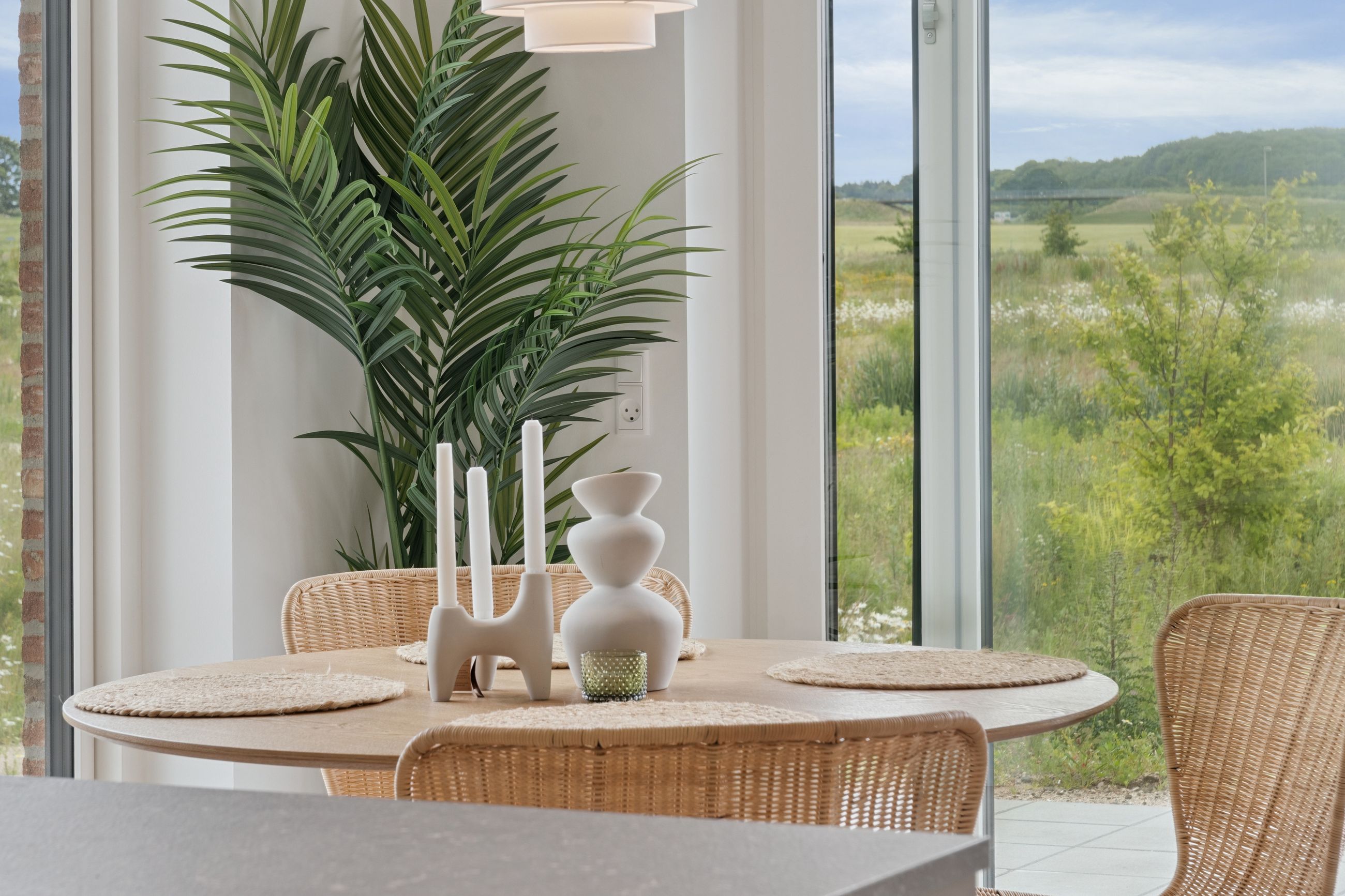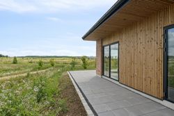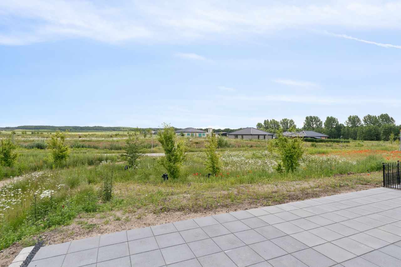 Grunden er på 200 kvm, og herude skal vi specielt fremhæve den solrige fliseterrasse, der er delvist overdækket og har en fantastisk udsigt.