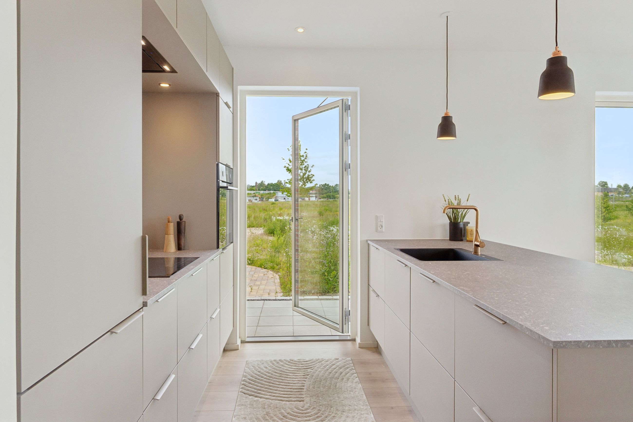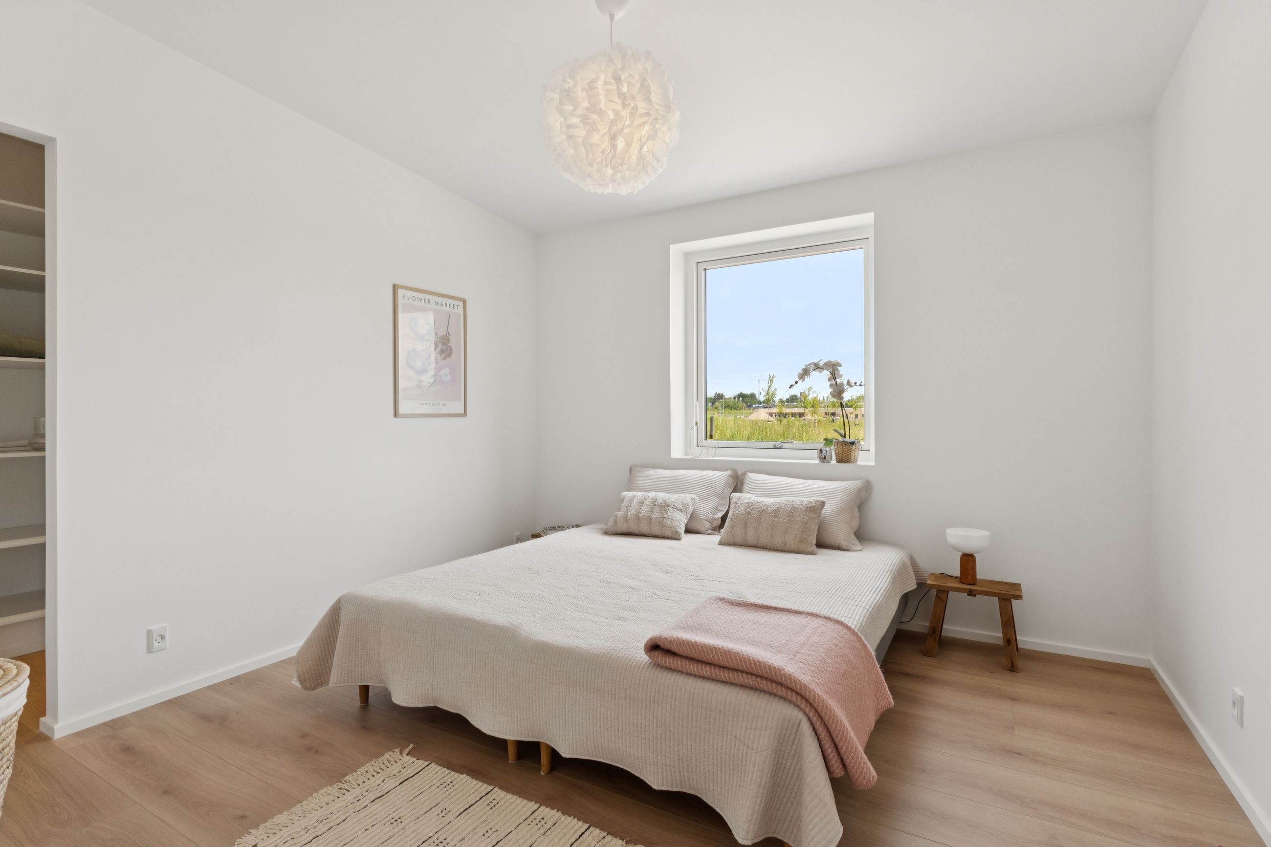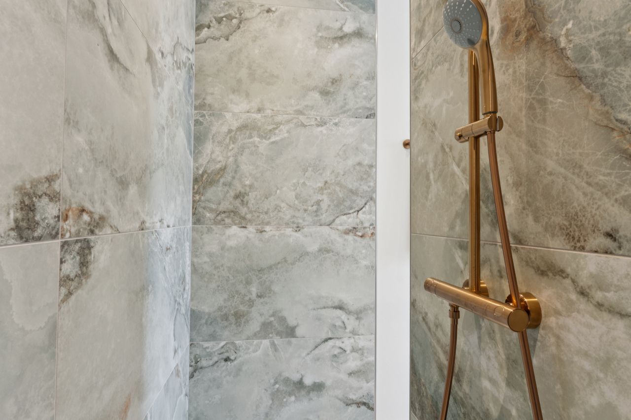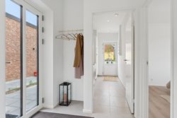 To værelser giver jer fine indretningsmuligheder, og det ene af dem er oplagt som soveværelse, da I her får eget walk-in-closet. Badeværelset ligger nær værelserne, og det er udført med flotte fliser, separat bruseafsnit og armaturer i messinglook, mens hjemmet afrundes af det praktiske bryggers.