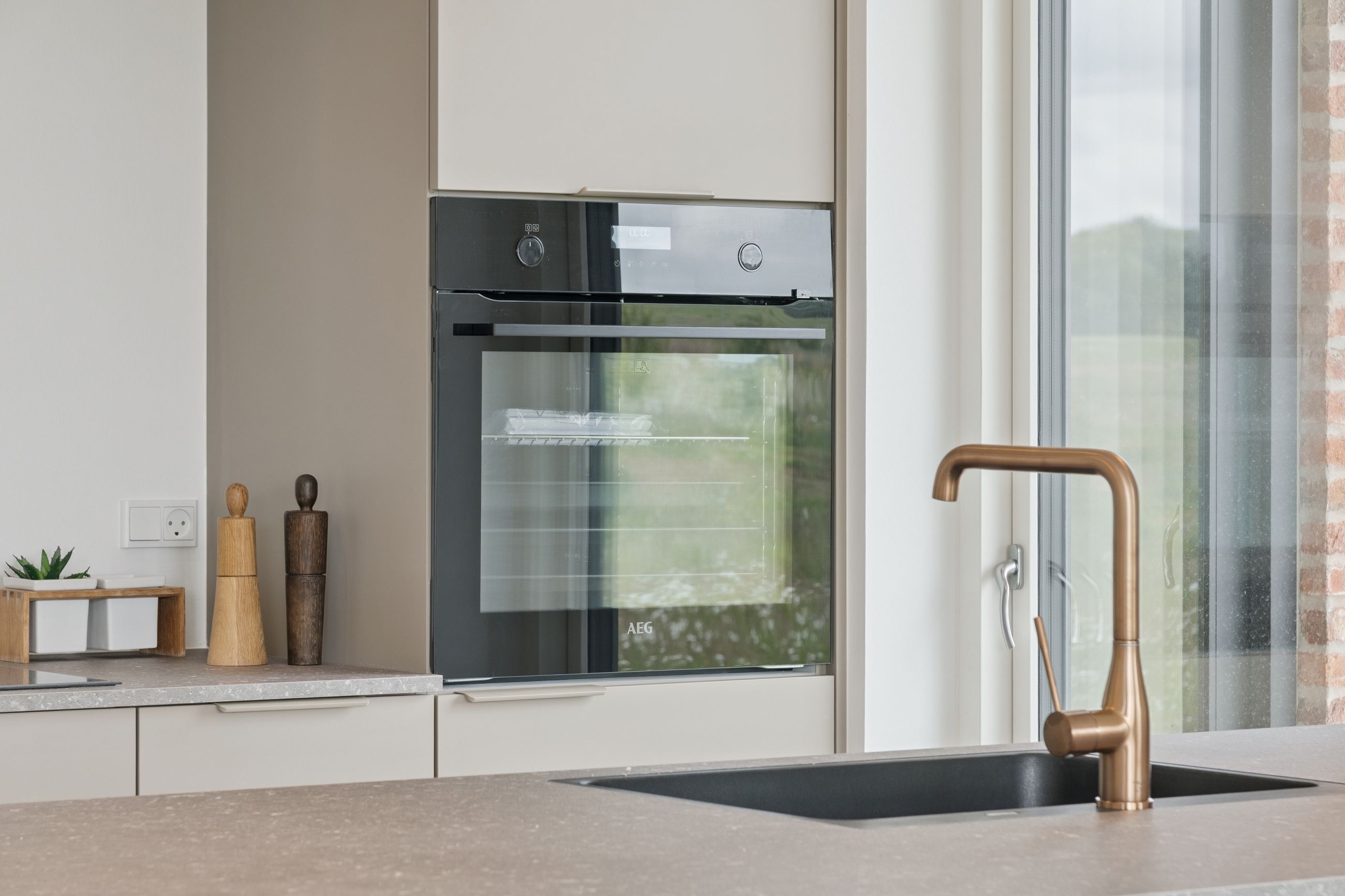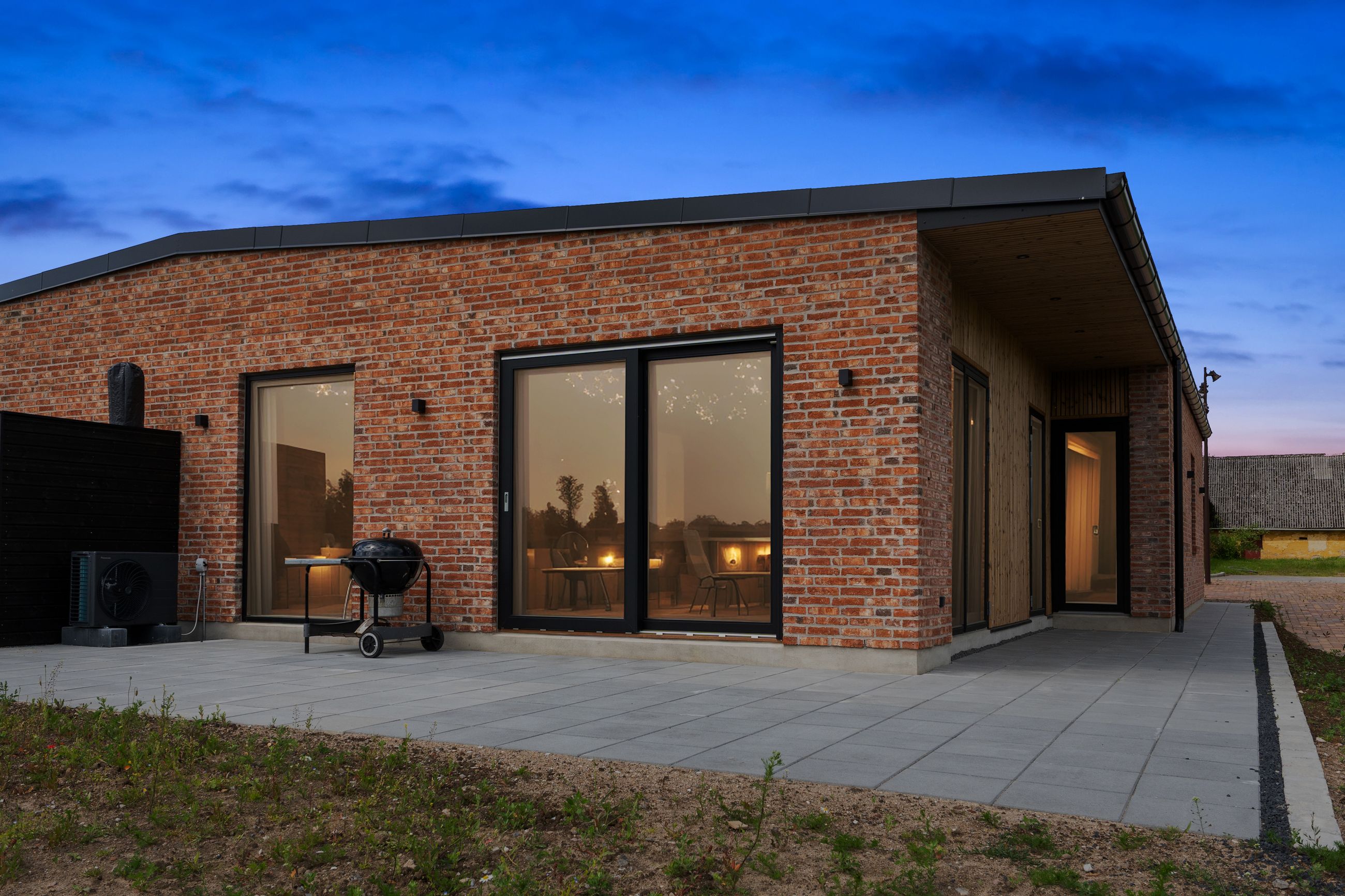 Huset præsenterer sig med et elegant udtryk, hvor mursten, sorte detaljer og træ mødes i en flot harmoni. I træder indenfor via entréen, hvor et velindrettet hjem på 107 kvm udfolder sig. Først skal I se opholdsmiljøet, hvor et smukt køkken med køkkenhalvø, kogeniche og masser af opbevaringsplads indbyder til madlavning. Den åbne forbindelse til alrummet og stuen giver et utrolig behageligt rumforløb, mens talrige vinduer og to havedøre lukker et gavmildt dagslys ind.