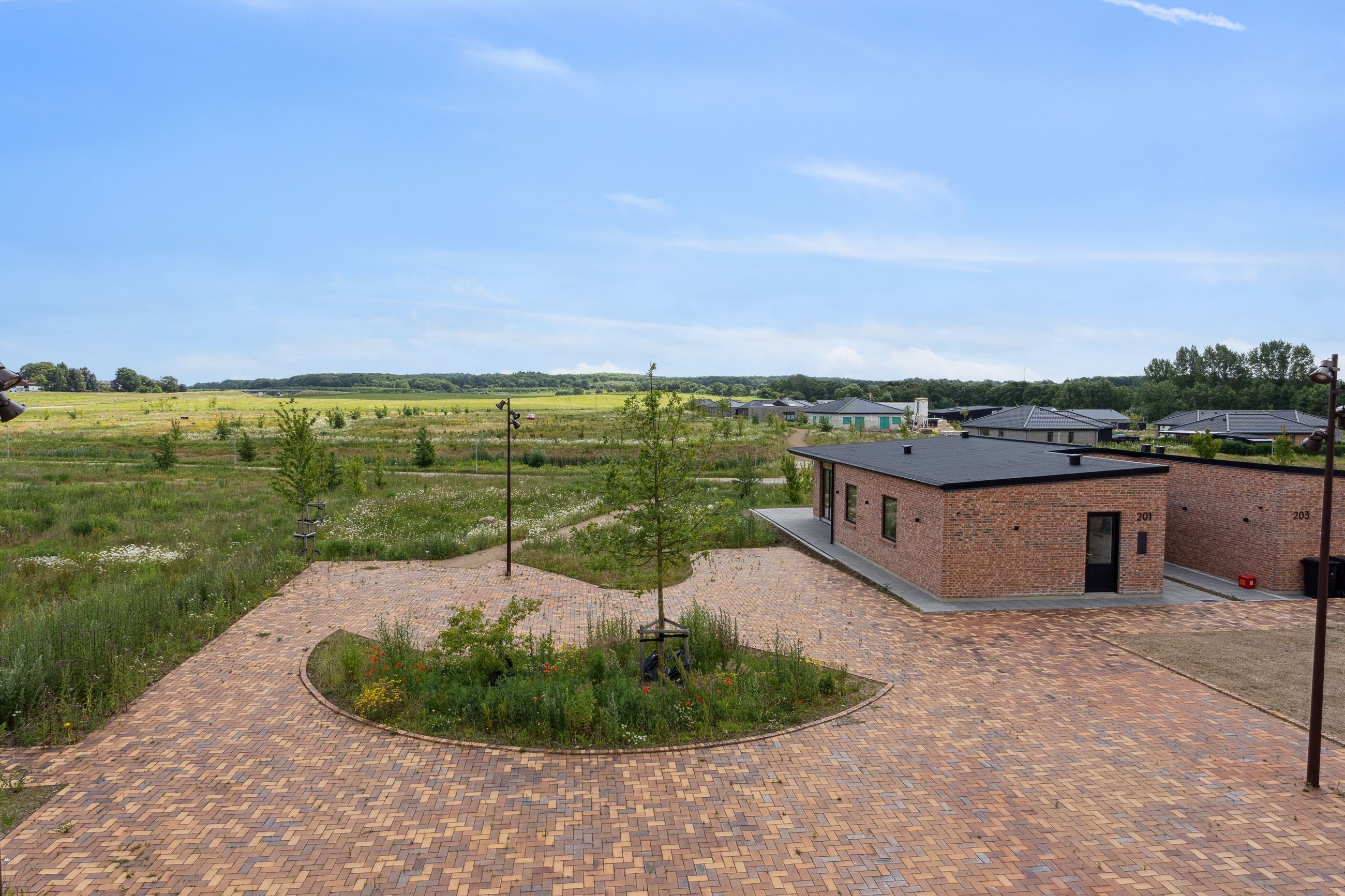 I bliver en del af et nyopført nabolag, hvor smuk natur, nordisk arkitektur og trygge stisystemer omkranser jer. Bussen afgår små 800 meter fra adressen, og inden for gåafstand har I også fodboldbaner, skole og dagtilbud. Der er en kilometer til indkøbsmuligheder, mens Næstved Nord Station kan nås på en ganske kort cykeltur. Cyklen er også oplagt, når I skal en tur til Næstveds charmerende bymidte.