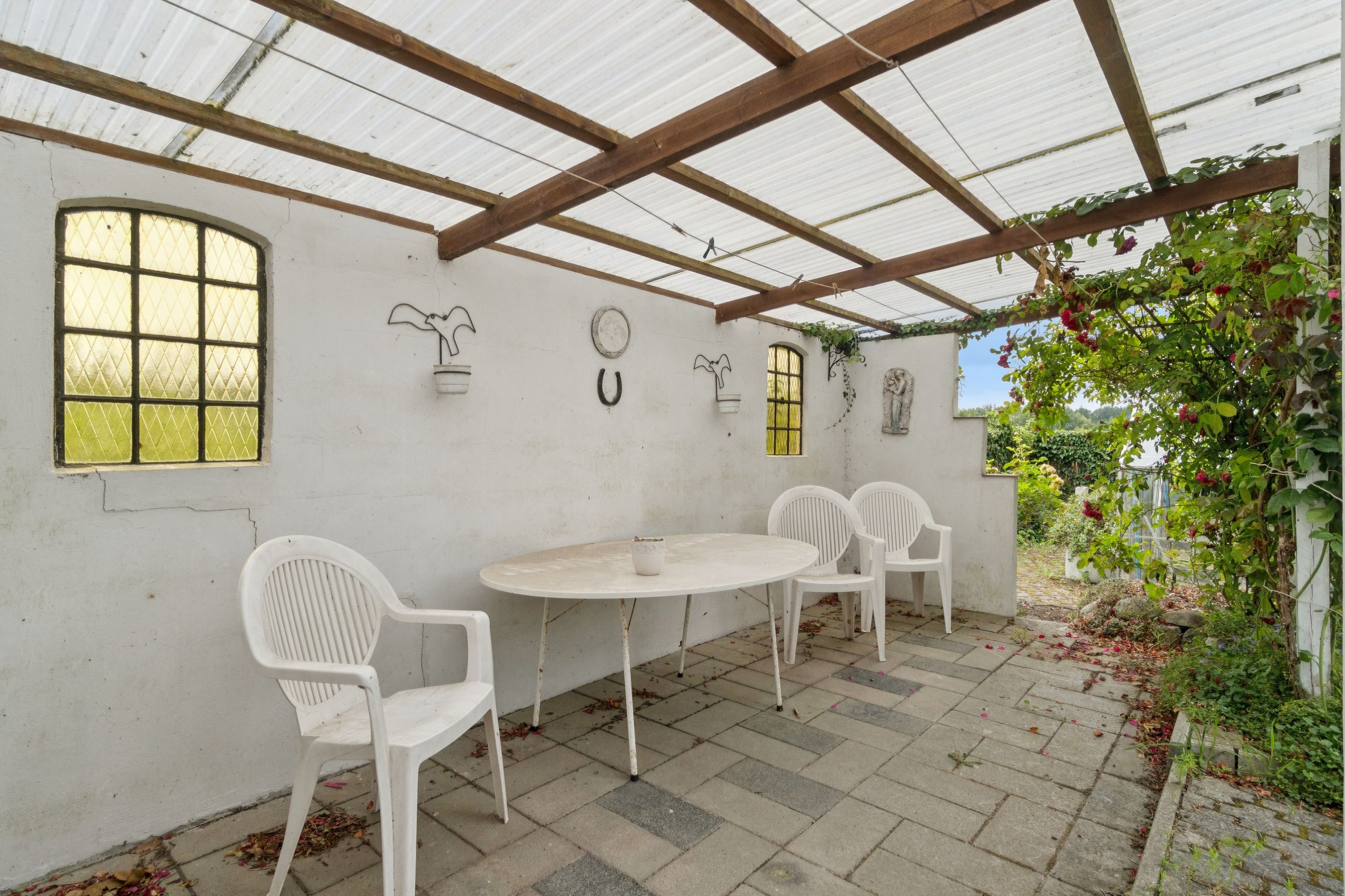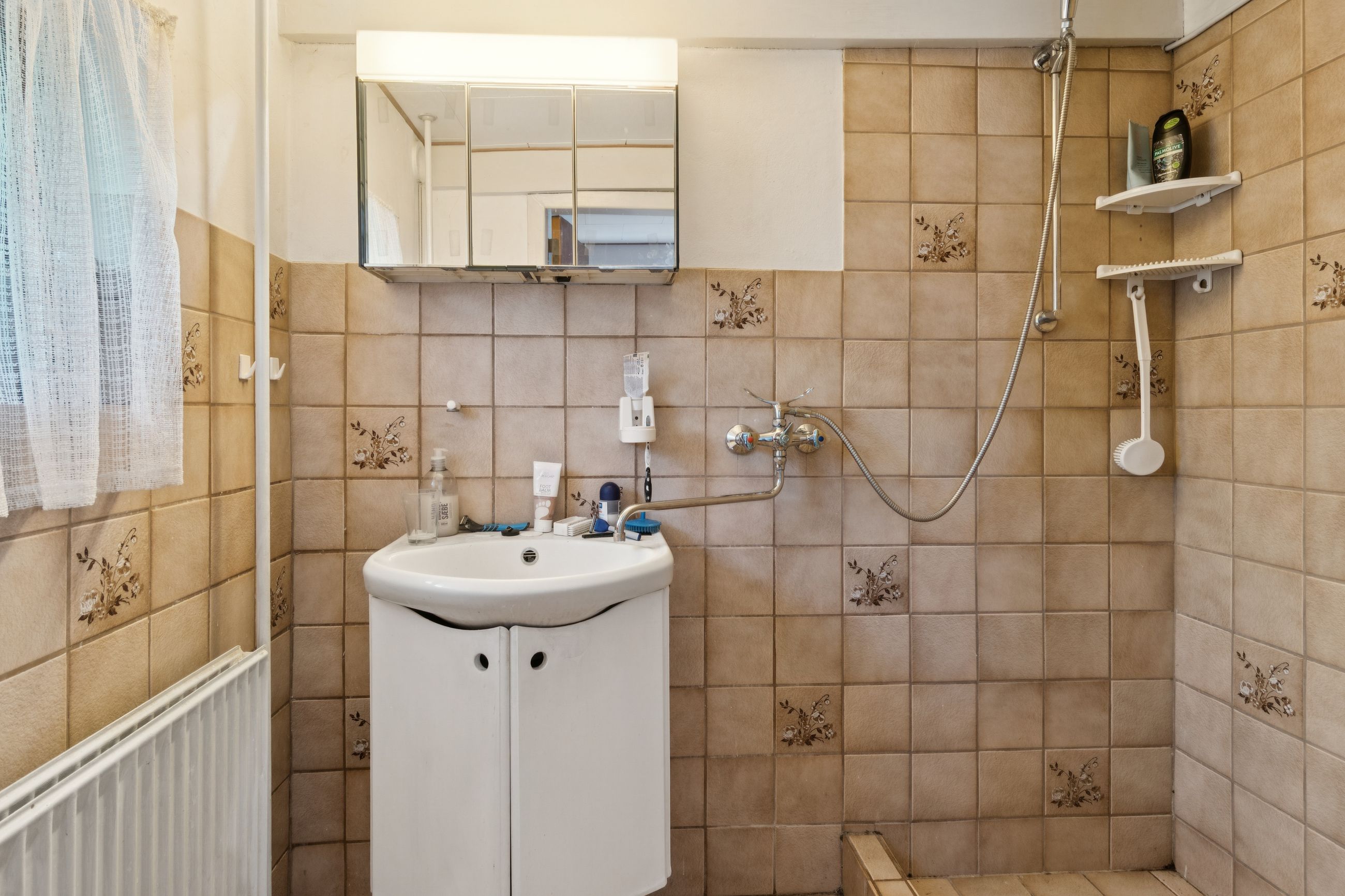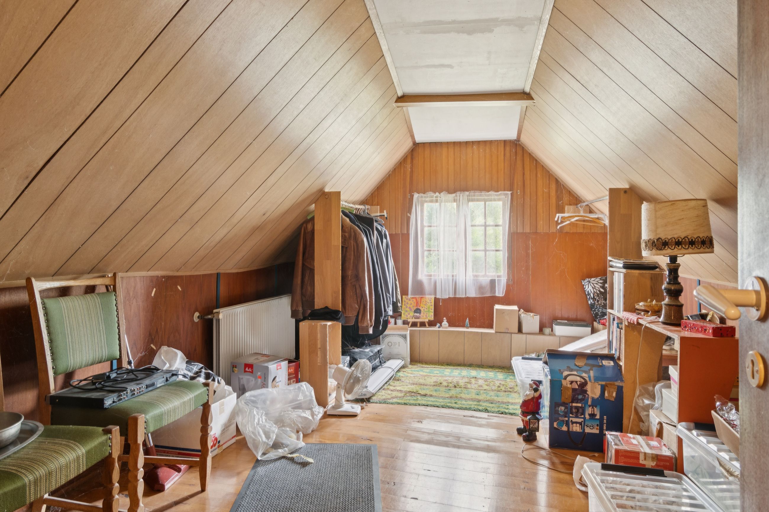 Indendørs byder hjemmet på masser af sjæl. Spisekøkkenet står i landlig stil med fyldningslåger og træbeklædte vægge og lofter. Her er det nemt at forestille sig morgenkaffen i ro og mag. Fra køkkenet kan I træde ind i en stor og indbydende stue, der desuden får selskab af en udestue med dør ud til terrassen.