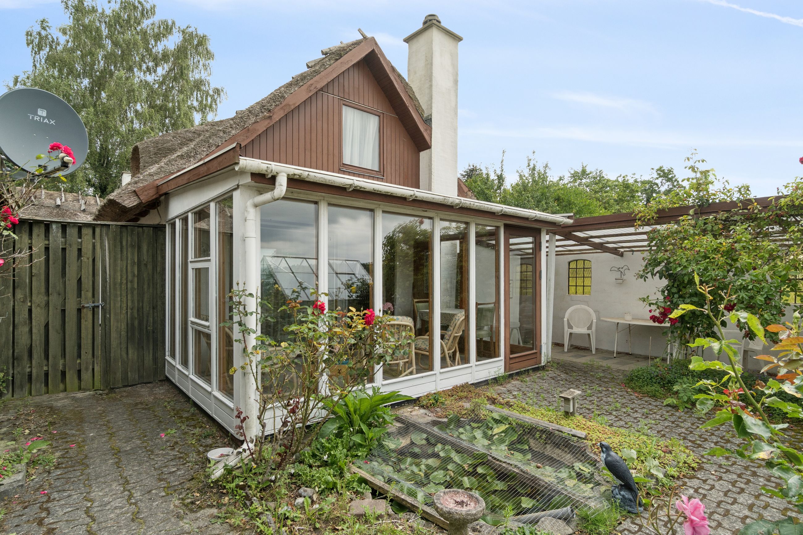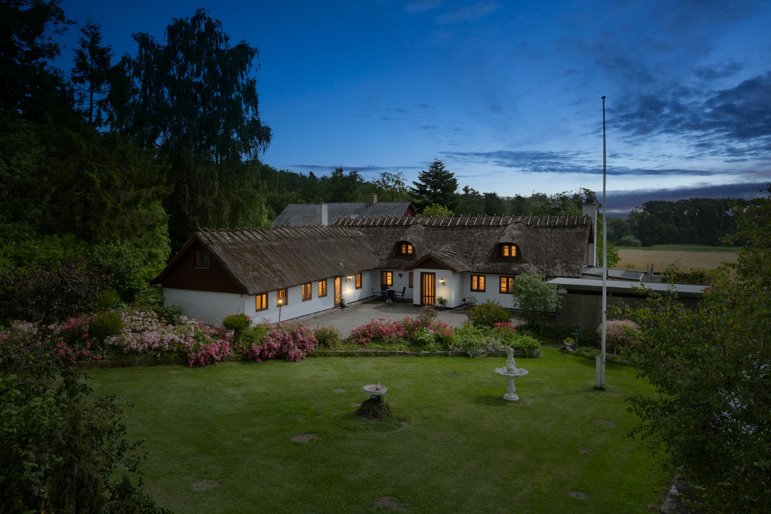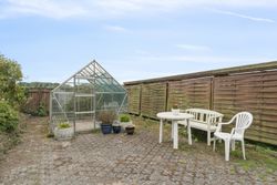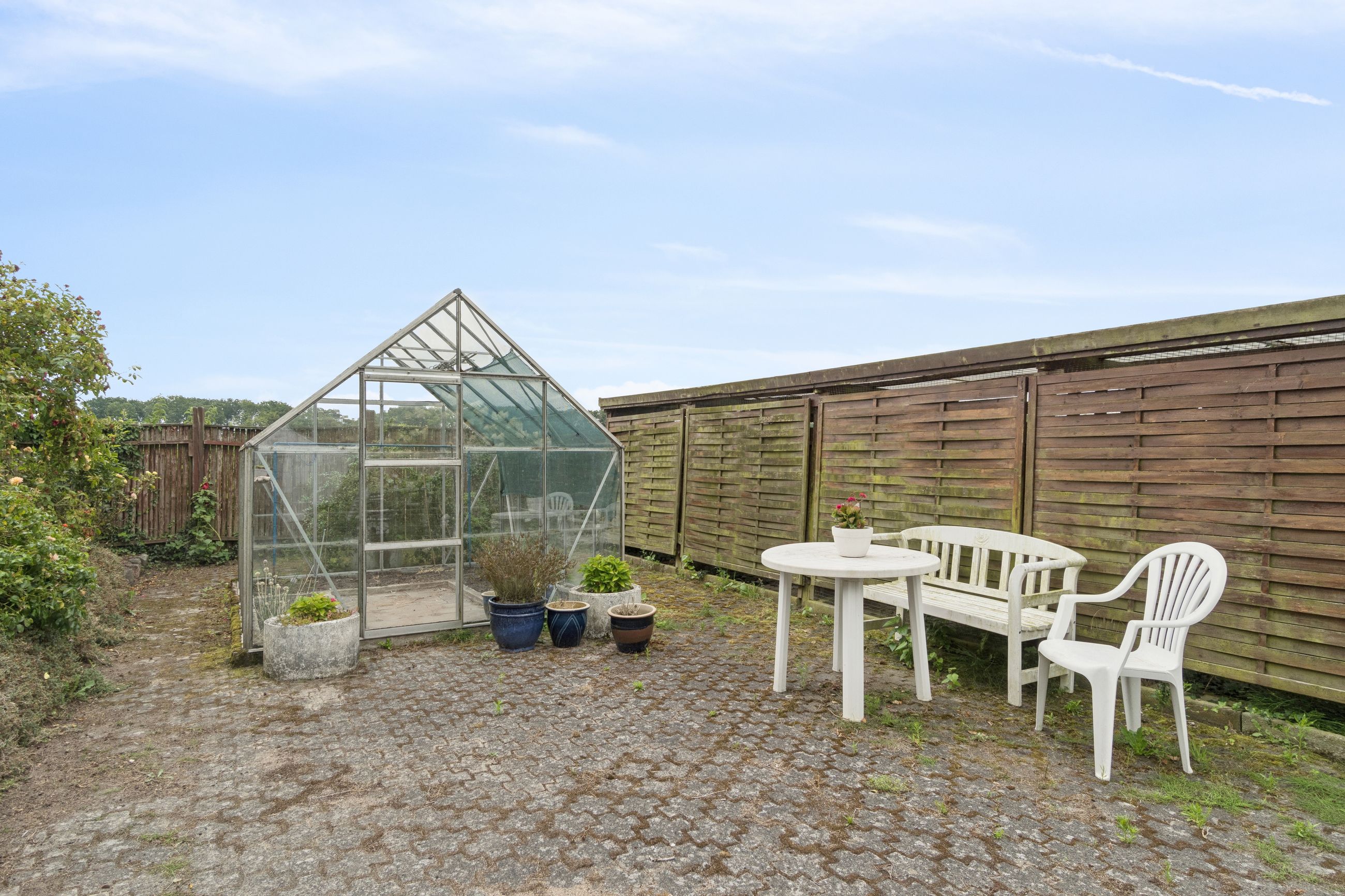 Udendørs får I en skøn og overskuelig have med velplejet græsplæne, farverige blomsterbede og en betagende udsigt til mark og egen granplantage. Der er god mulighed for både havearbejde og afslapning året rundt med udestue, overdækket terrasse, udhus og drivhus, hvilket sætter de perfekte rammer for sommerens stille stunder eller hyggelige aftener med venner og familie.