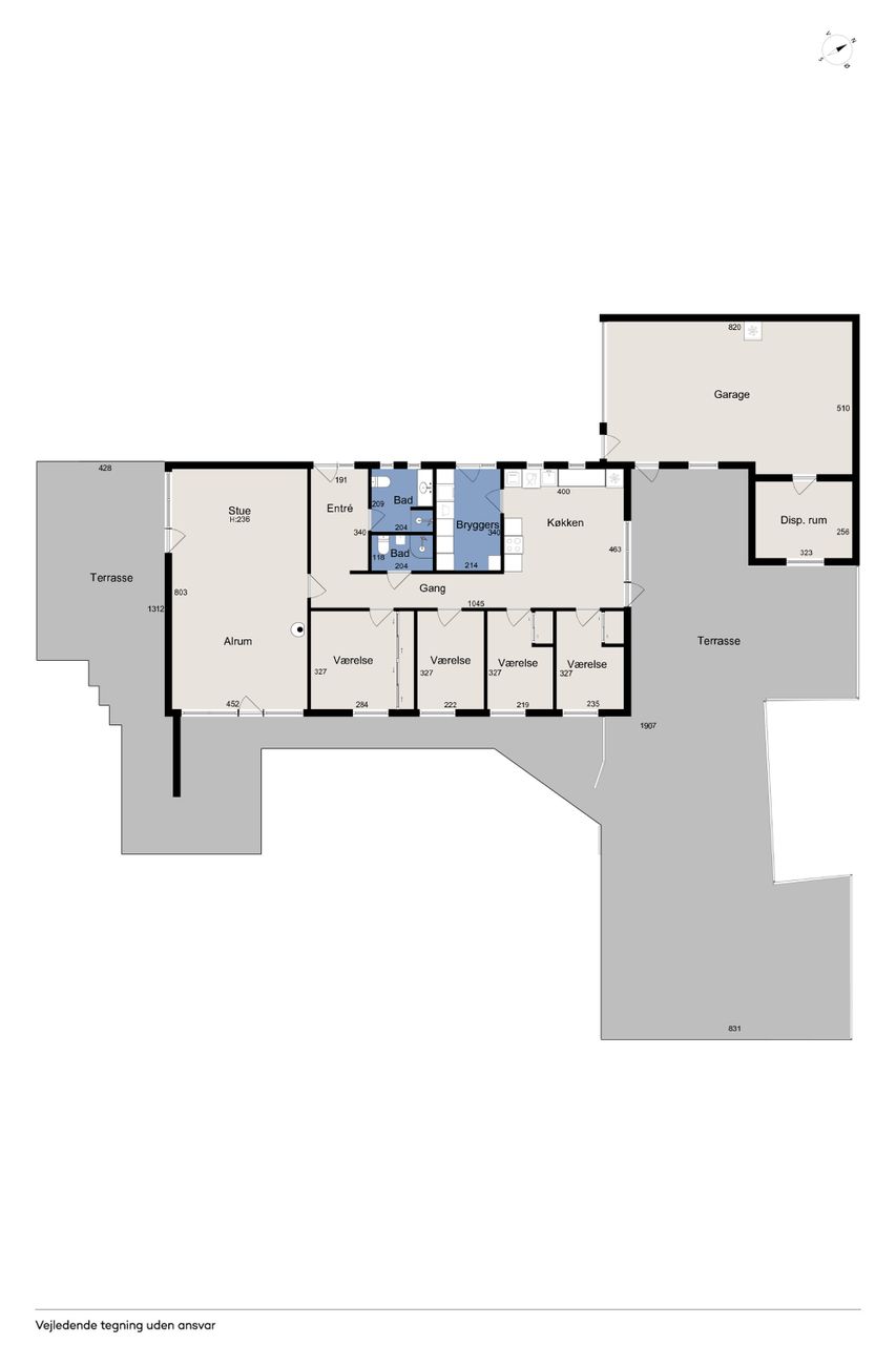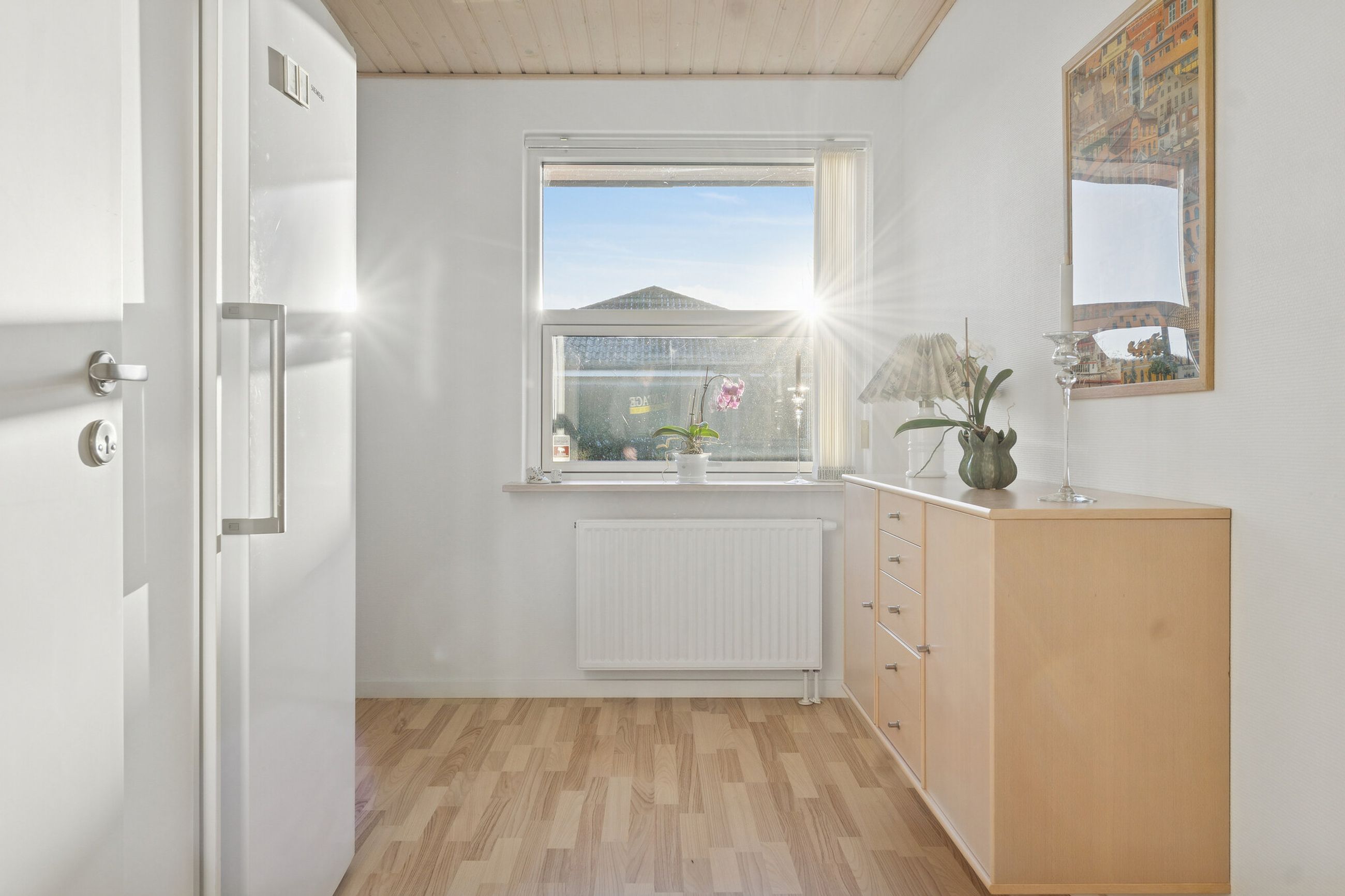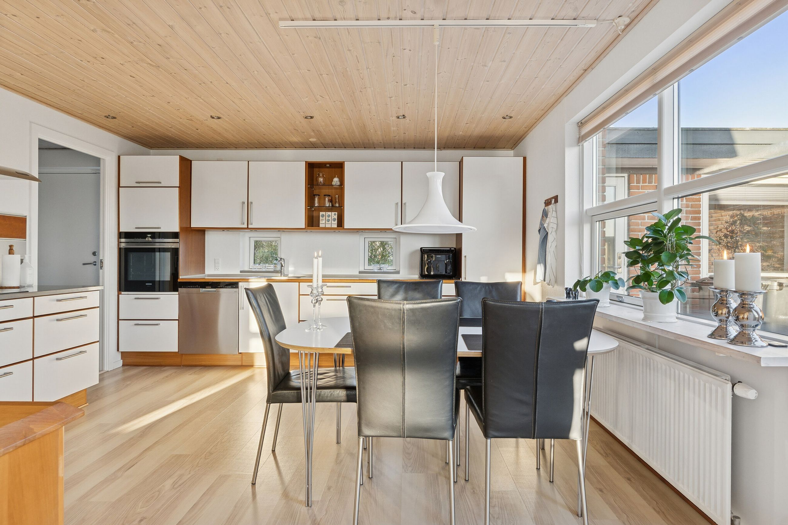 Køkkenet er stort, så der er masser af plads til et spisebord, og herpå følger endnu fire værelser, der kan indrettes på et hav af måder, så det matcher jeres behov og præferencer. I forlængelse af køkkenet råder I over et praktisk bryggers med egen indgang, og ved entréen er der to badeværelser.