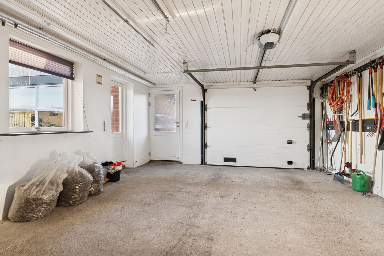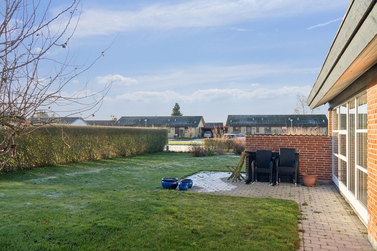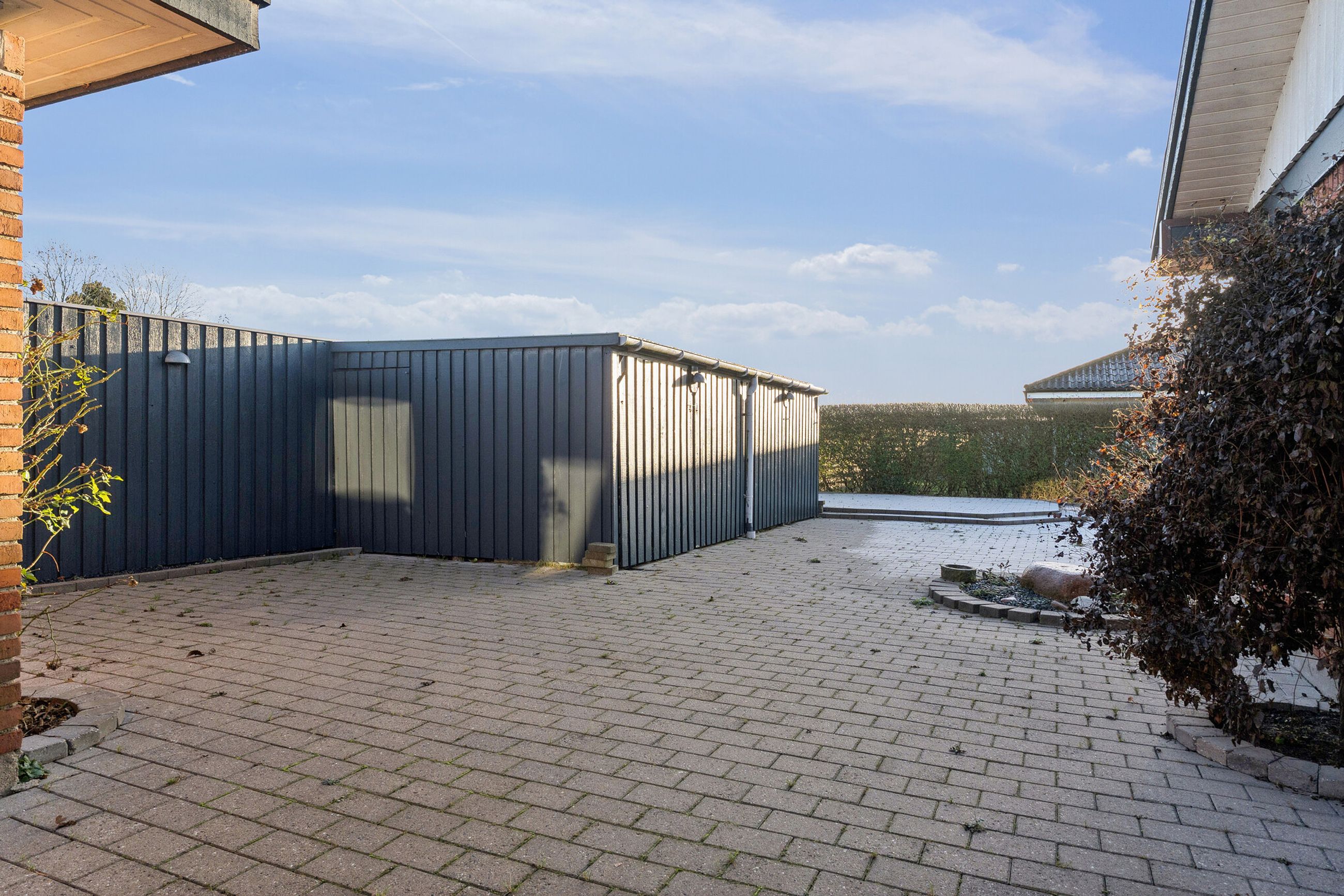 Haven er, præcis som huset, veltilrettelagt. Der er flere terrasser med fortrinlige solforhold, og samtidig er den grønne del af grunden let at holde. Der er også en garage og et disponibelt rum under samme tag.