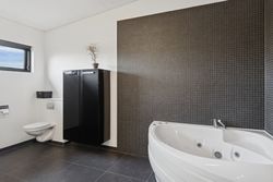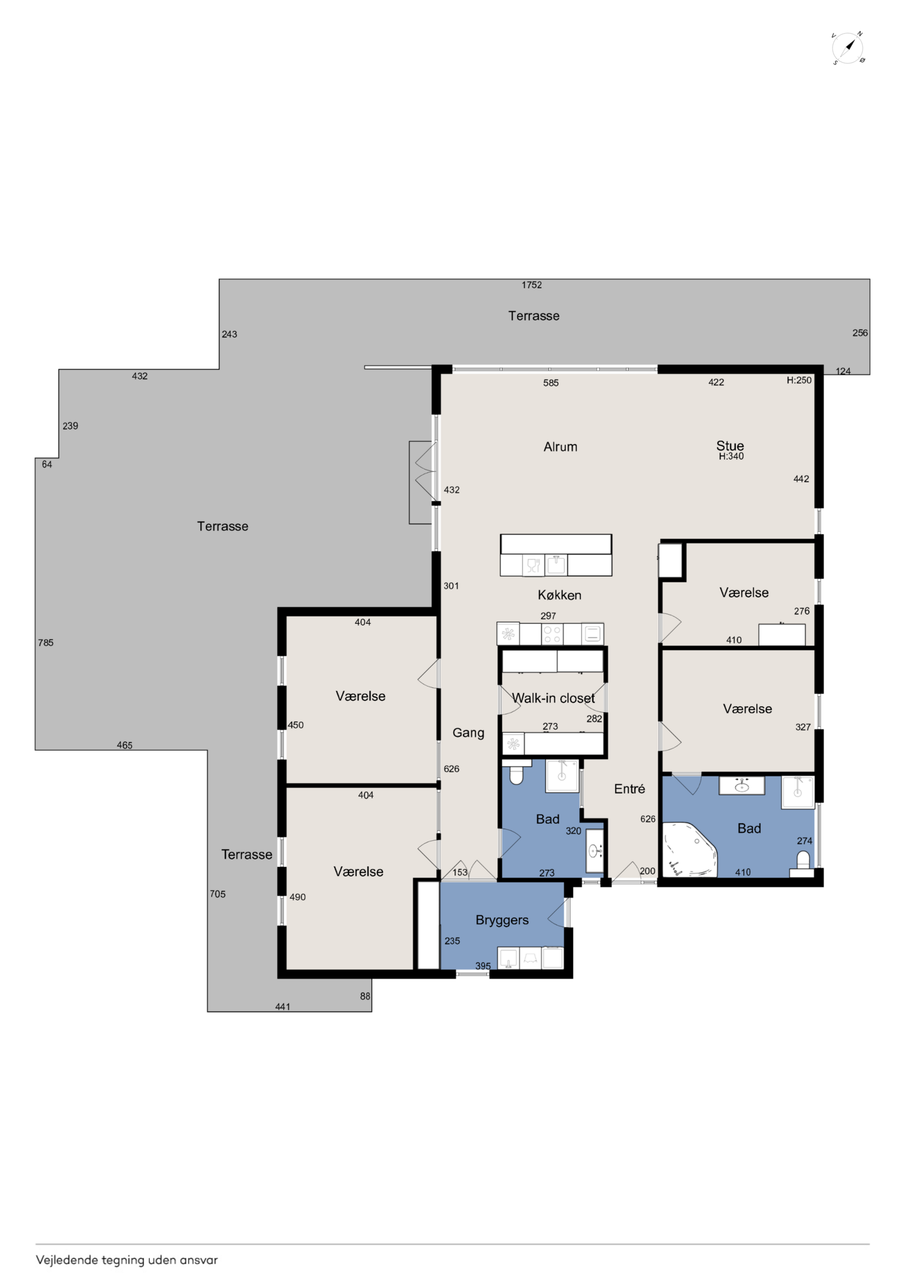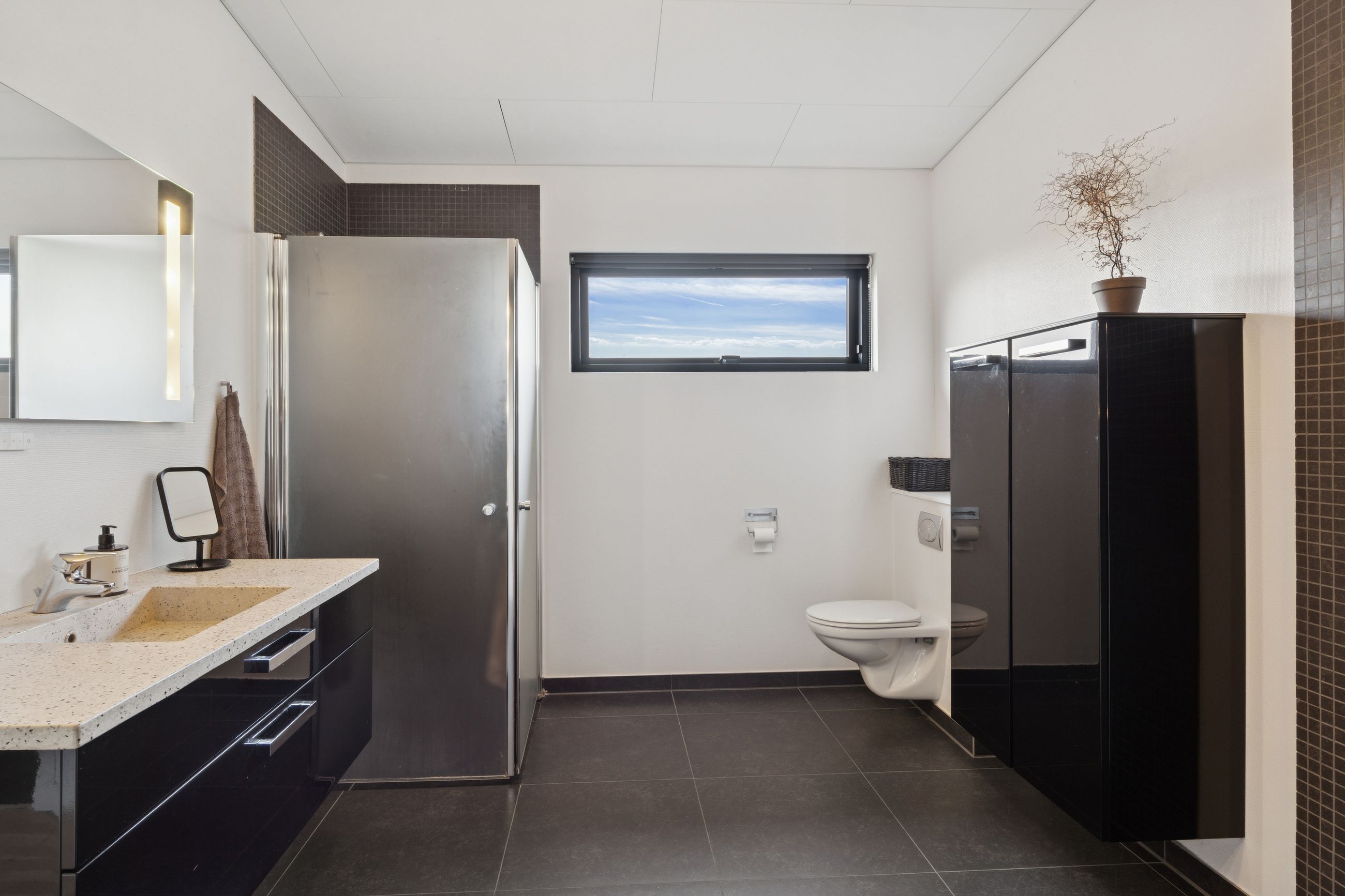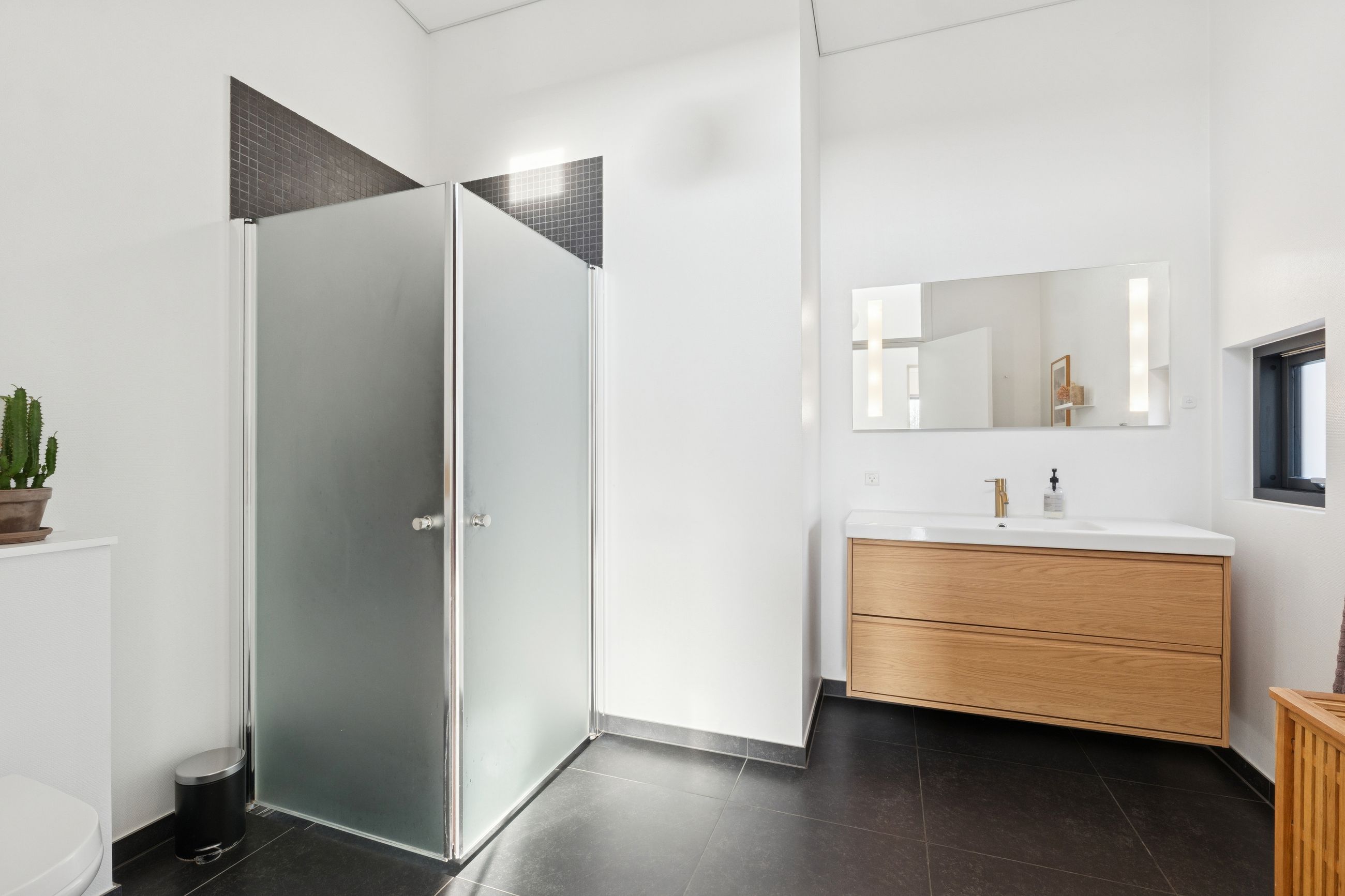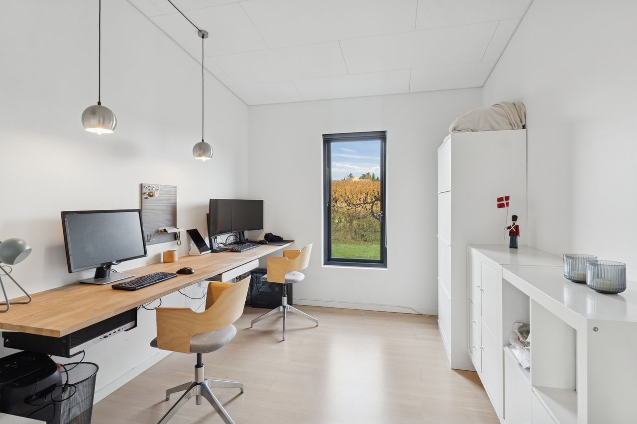 Boligen rummer desuden fire værelser, hvoraf det ene har direkte adgang til et badeværelse med både bruseniche og spabad og derfor er oplagt som forældresoveværelse. Overfor finder I et walk-in-closet, som fuldender forældreafdelingen. Hertil kommer endnu et badeværelse med bruseniche samt en fordelingsgang, der skaber en god sammenhæng mellem rummene. Indearealerne afrundes af et praktisk bryggers med plads til vaskefaciliteter og opbevaring.