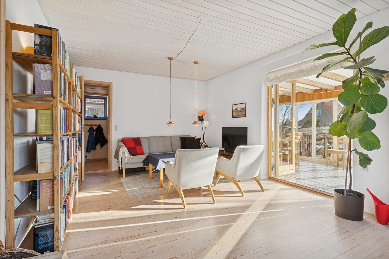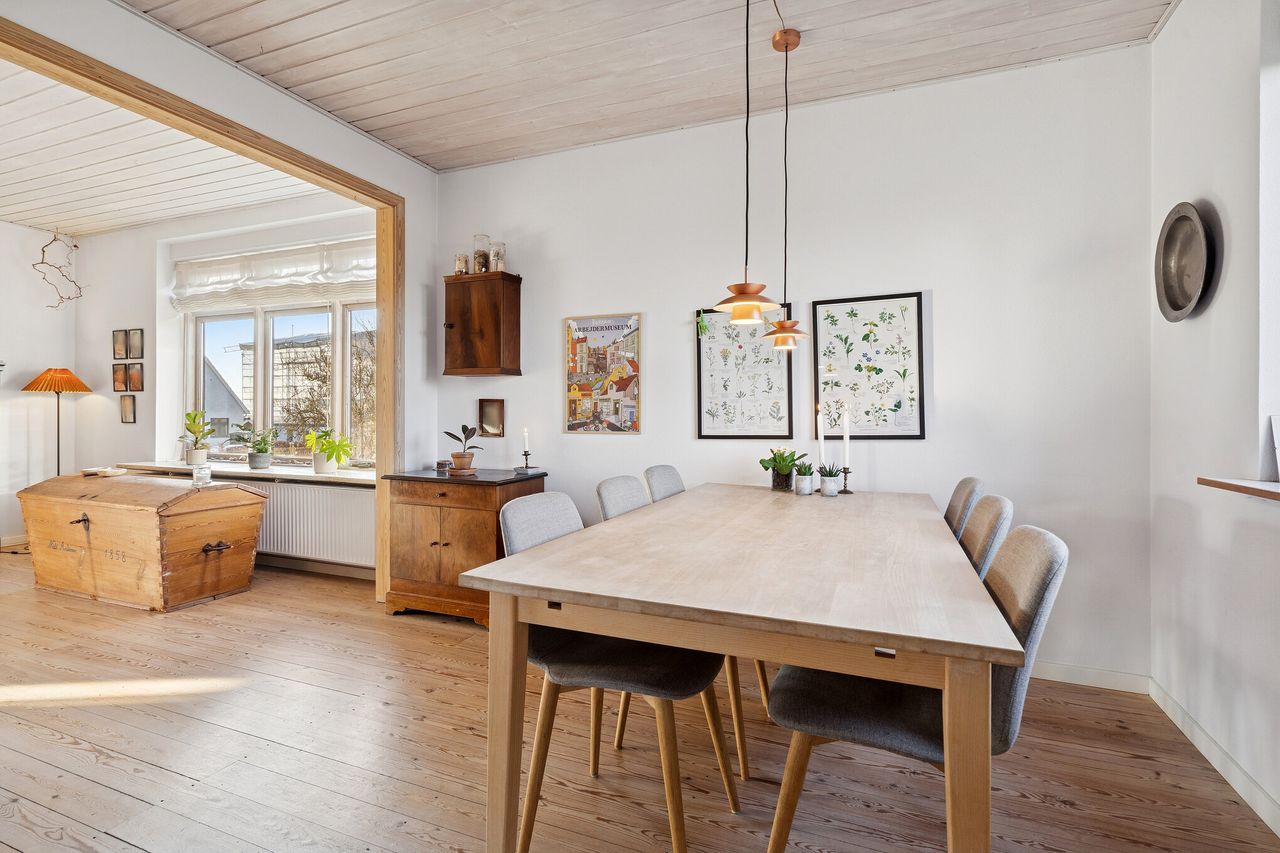 Dette hjem på Søndervang i Næstved får et virkelig flot lysindfald – og det er blot én af grundene til, at her er en skøn atmosfære. En anden faktor er den særlige charme, som kun fornemmes i ældre huse, og den pæne stand bidrager selvfølgelig også til det positive indtryk.