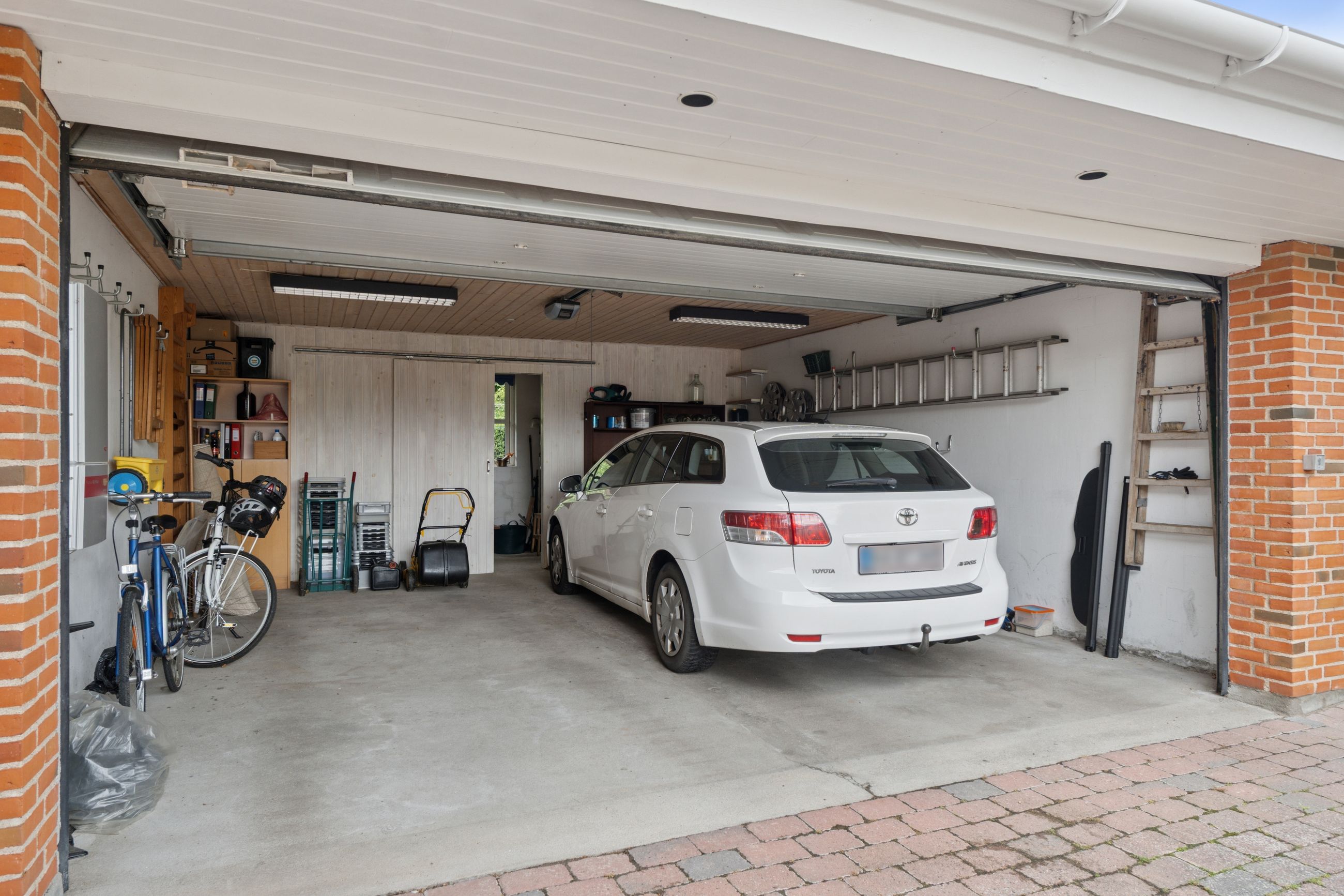 Til ejendommen hører desuden en integreret dobbeltgarage med tilhørende redskabsrum.