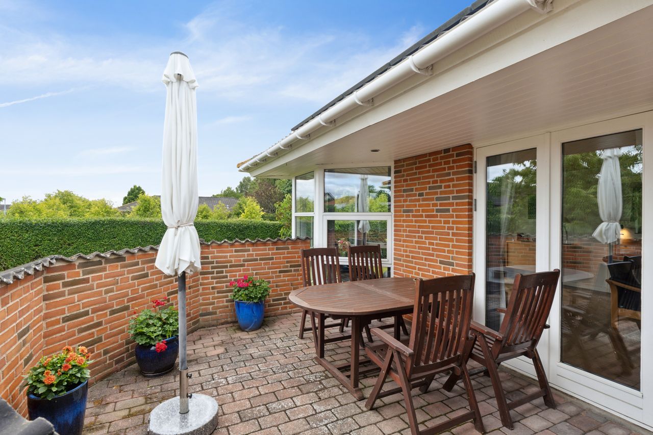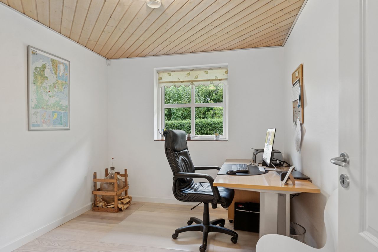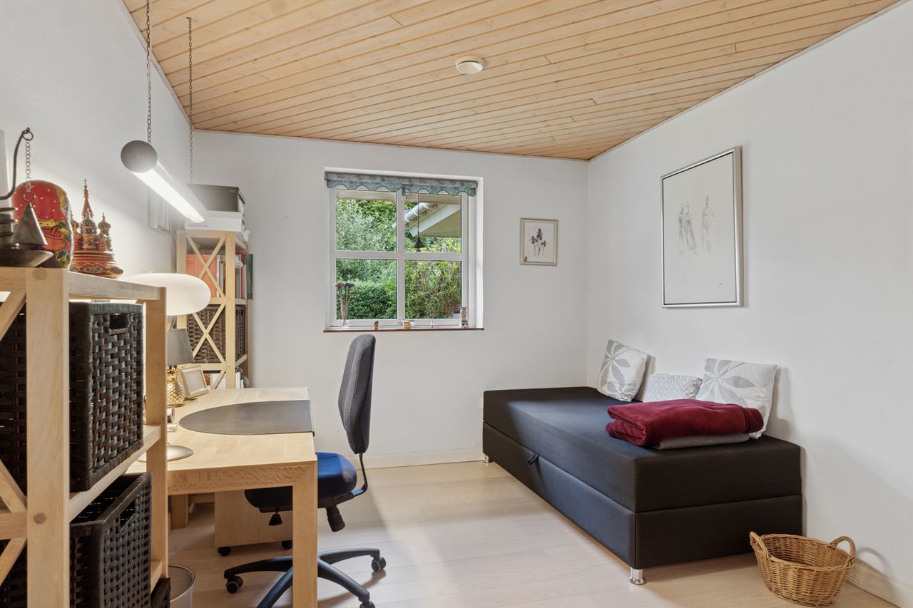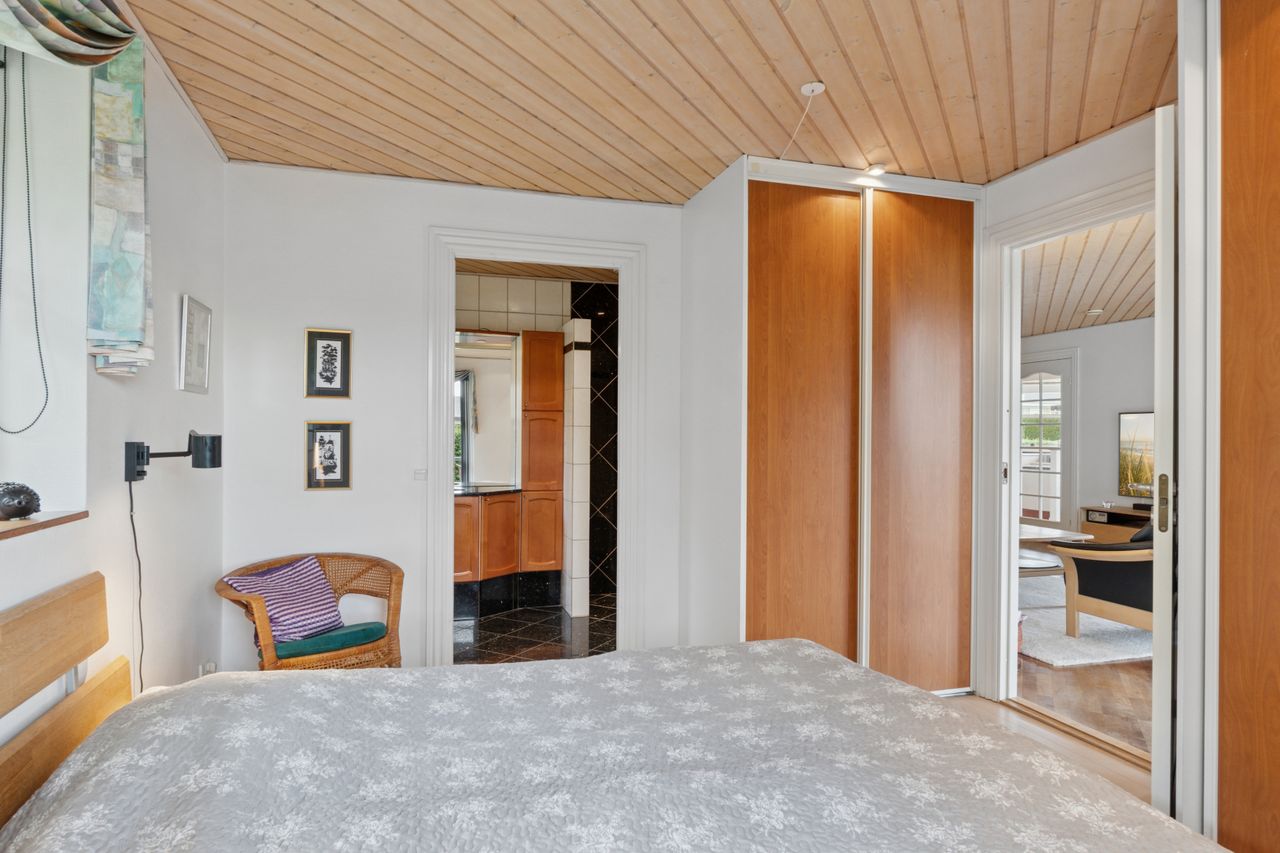 Boligen byder velkommen i en rummelig entré, der leder videre til den lyse og indbydende stue. Her får du et skønt lysindfald fra de store vinduespartier samt god plads til både sofaarrangement og spiseafdeling. Fra stuen er der direkte udgang til en hyggelig, sydvendt terrasse, hvor solen kan nydes det meste af dagen.