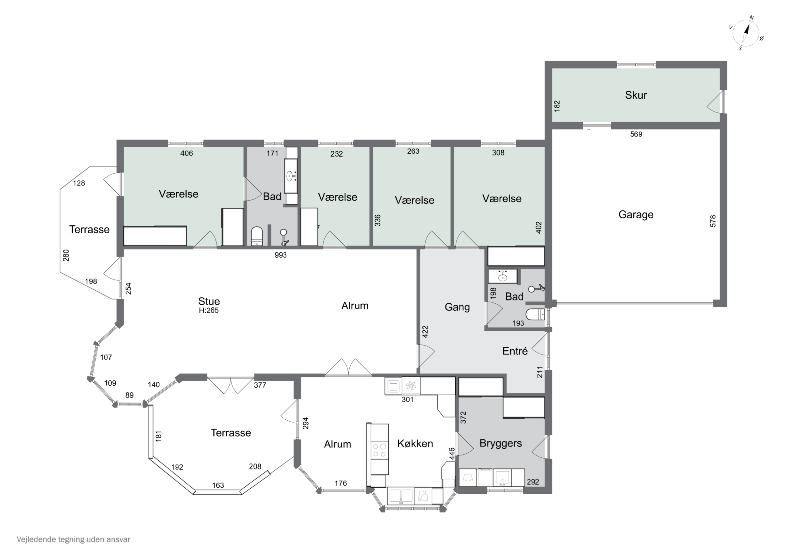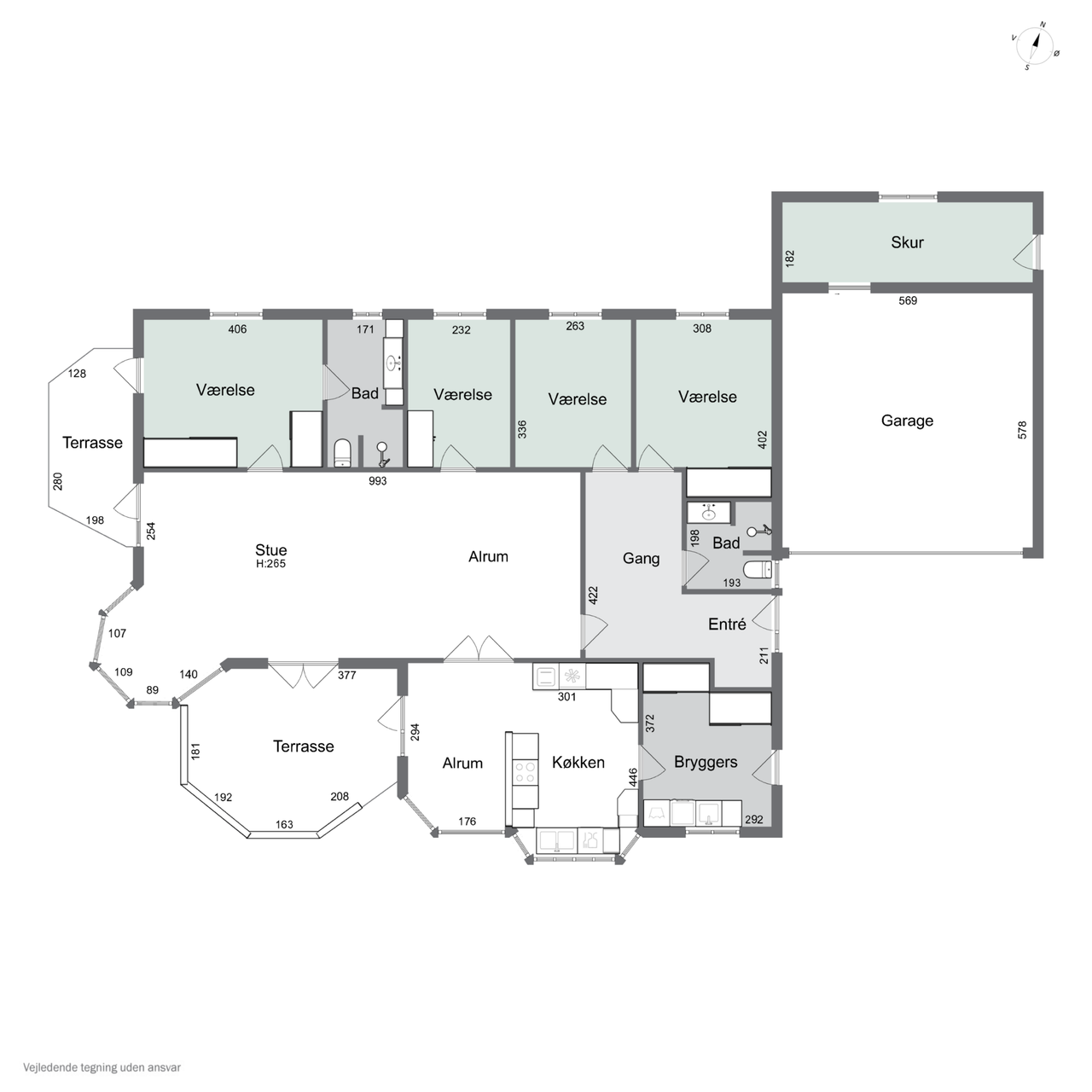 Planløsningen er særdeles familievenlig med en separat voksenafdeling med eget badeværelse. Derudover rummer boligen tre gode værelser samt endnu et badeværelse med bruseniche.