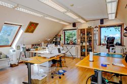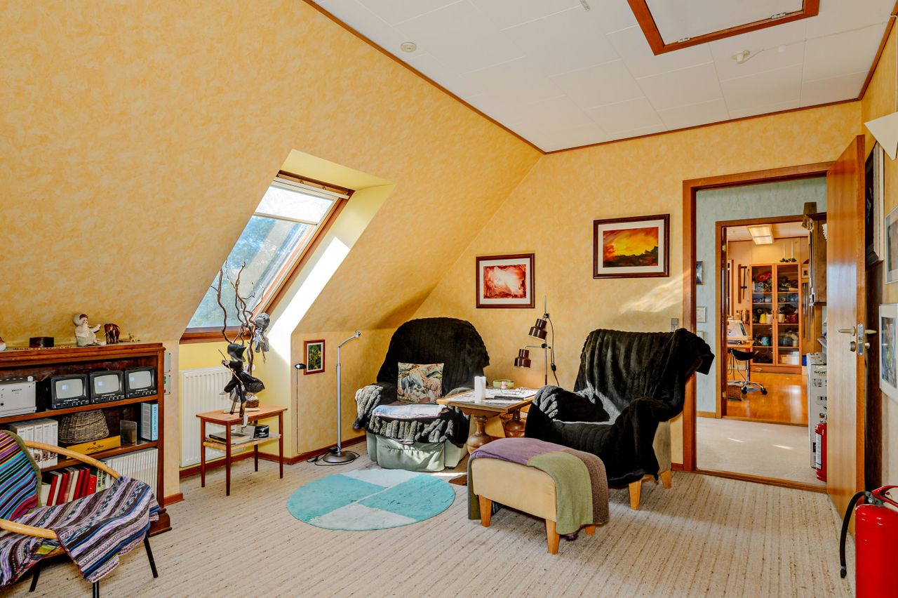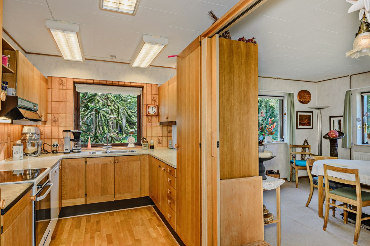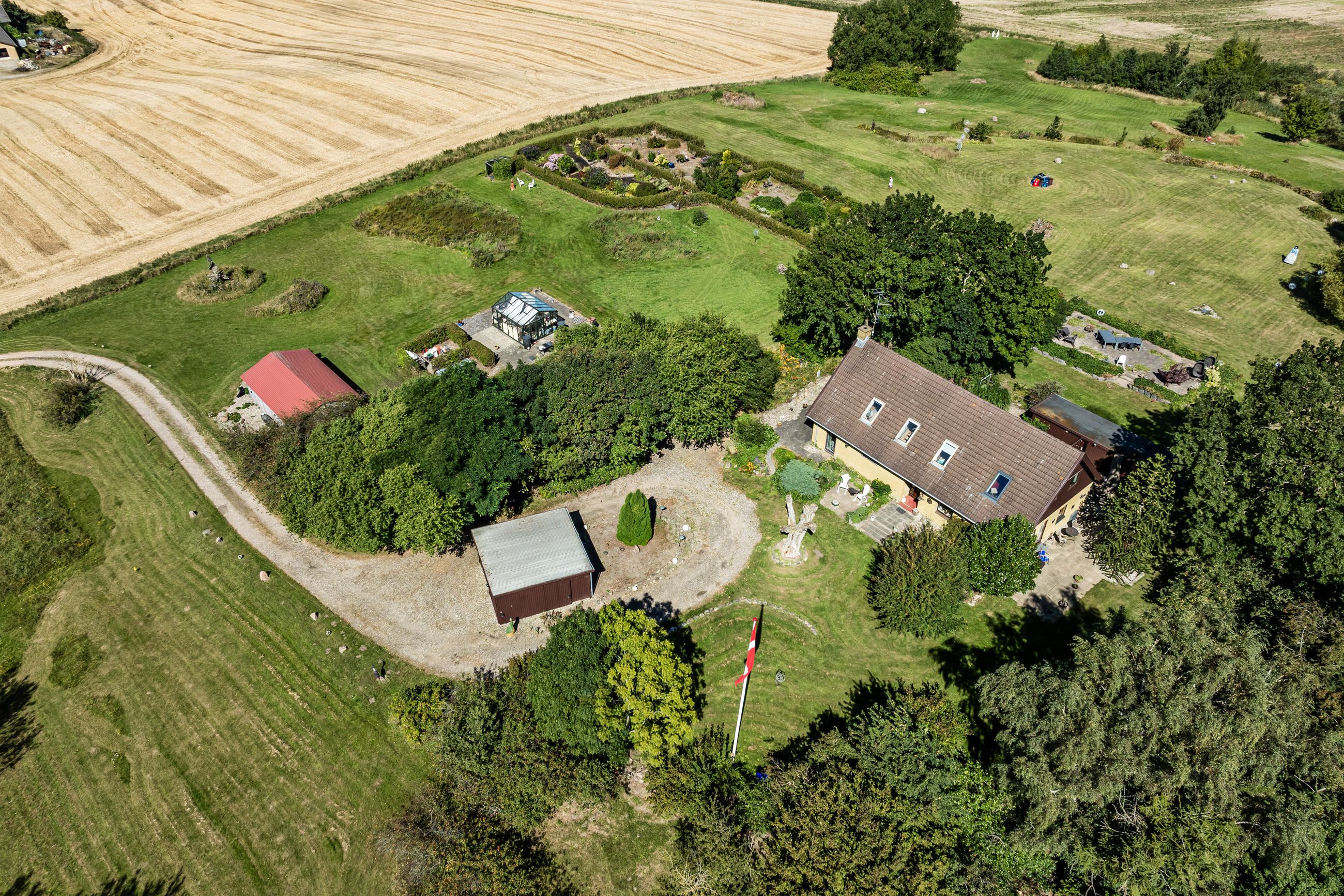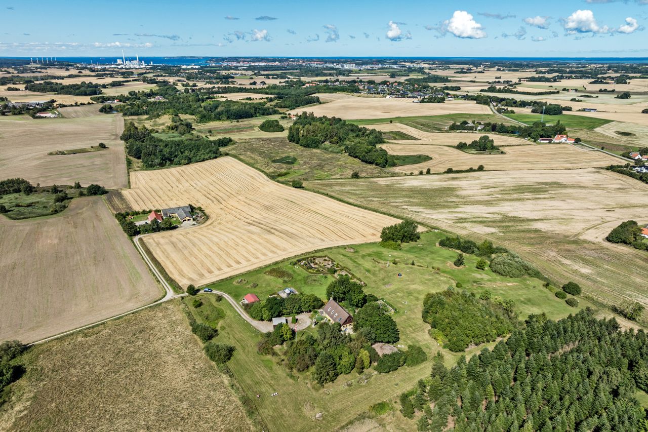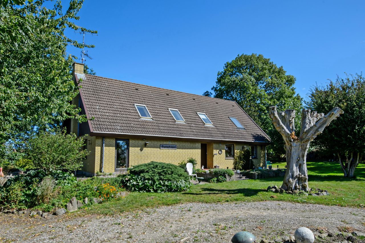 Midt på en bakketop ligger denne dejlige landvilla med skøn udsigt over landskabet til alle sider. Landvillaen er omgivet af en pragtfuld have med masser detaljer. I haven der finder man altid et sted med både læ og udsigt, da der er et væld af muligheder for at sætte sig og nyde naturen. Haven er kuperet og anlagt med store græsarealer, flotte gamle træer, helt egen gamle stendysse, 3 pilehaver, pergola, solgryde, sø og meget mere. Der er flere steder terrasser i forskellige størrelser, og i det store orangeri/drivhus er der plads til både nydelse og dyrkning af grøntsager. Der er garage med plads til 2 biler, lille maskinhus eller plads til dyrehold samt 2 udhuse. Ved udhusene er der også flere læfyldte pladser. Udhuse og garage er alle nymalede. Mange muligheder for mange forskellige hobbyaktiviteter. Selve boligen har nymalede gavle og udhæng. Her er der indrettet med køkken/alrum/spisestue med egetræselementer og udgang til terrasse, meget stor opholdsstue med lysindfald fra 3 sider, værelse/kontor, bryggers, vindfang og entre/hall med trappe til 1.sal, hvor der er etableret en smart "vare"-elevator til 1.sal. Der er parketgulve i alle opholdsrum. På 1.sal er der en ekstra stue, stort værelse med skabe, meget stort gavlværelse med flot udsigt - fra værelset er der adgang til kontor/walk-in closet, og så er der endnu et badeværelse med bruseniche. Kælder på 14 m2, som er tør, og velegnet til viktualierum eller måske vinkælder. Næsten overalt både ude og inde er der den smukkeste udsigt over landskabet. Der er kun få km til Ubby - både ad vej og ad nyanlagt cykelsti - med skole, indkøb m.m. BO UGENERET MIDT I NATUREN MED GOD AFSTAND TIL NABOERNE - MASSER AF PLADS.