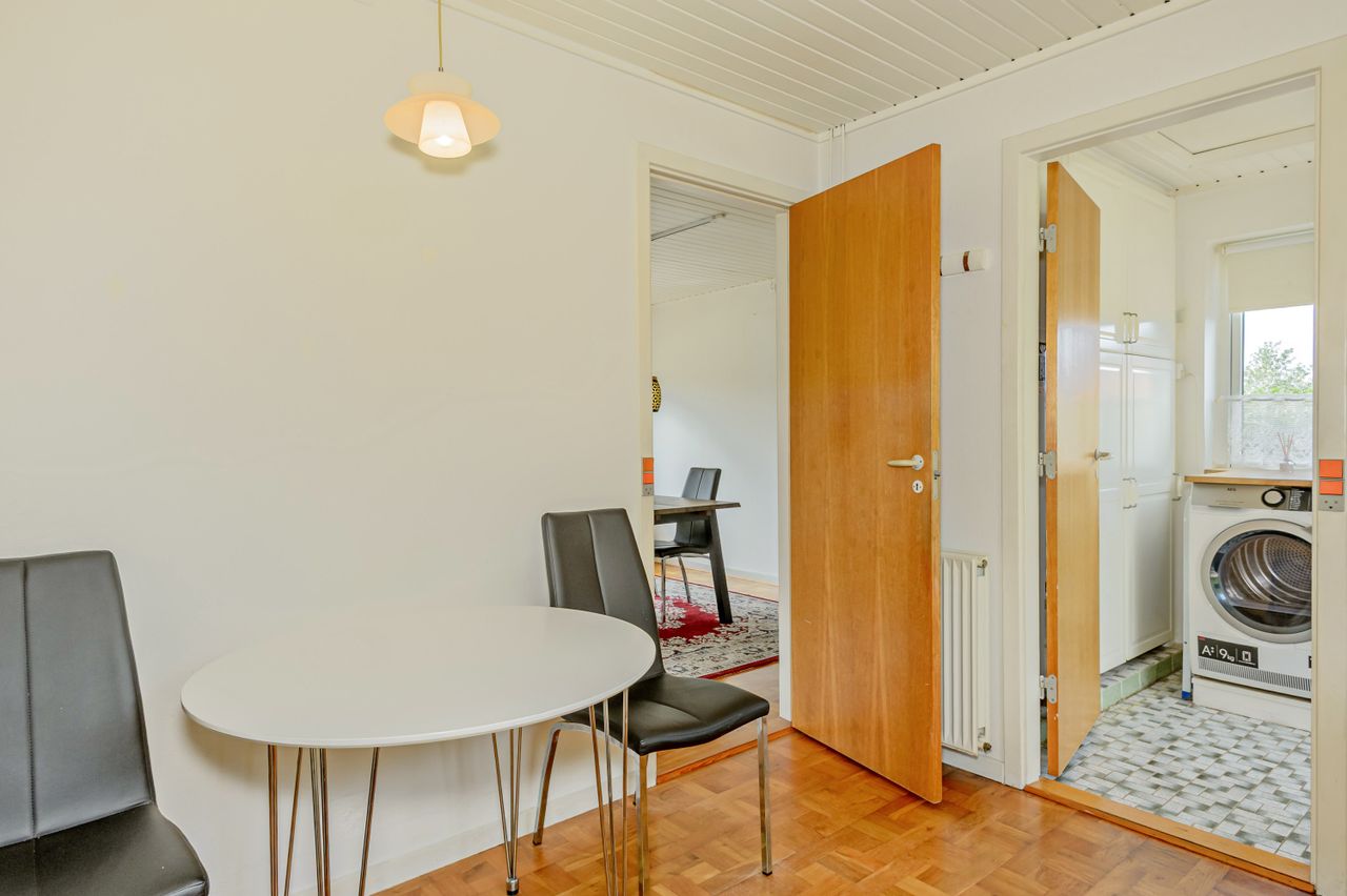 Så kan man næsten ikke bo mere centralt i Svebølle. Denne 1 plans villa ligger ved lille lukket vej i roligt kvarter med kort afstand til det meste i byen. I Svebølle er der skole, hal m.m. med en fin beliggenhed midt i Svebølle. I byen er der skole 0-9 klasse, idrætshal, supermarked, bager, fitnesscenter, pizzeria m.m. samt et velfungerende idrætsliv. Der er god vej til Kalundborg, hvor der er store arbejdspladser som blandt andet Novo Nordisk. Der går tog fra Svebølle til Kalundborg og København samt bus til Kalundborg og Holbæk. Selve boligen er velpasset, holdt i lyse farver og er indrettet med køkken med hvide elementer og lille spiseplads, lys sydvendt opholdsstue med udgang til terrasse, stort soveværelse, værelser, badeværelse med lyse flisegulve, gulvvarme og bruseniche, bryggers og entre/gang med skabe. Parketgulve i alle opholdsrum. Flisebelagt indkørsel frem til rummelig garage med port samt udhus. Bag garage ligger endnu et udhus. Haven er lukket, og der er flere terrasser, så der er flere steder at finde sol, læ eller skygge. Haven er hovedsageligt anlagt med græs, så den er nem at holde. BOLIG I 1 PLAN - VELEGNET TIL BÅDE DEN UNGE FAMILIE, DEN LILLE FAMILIE ELLER DET ÆLDRE PAR.