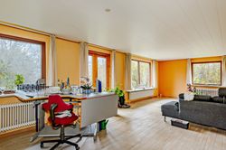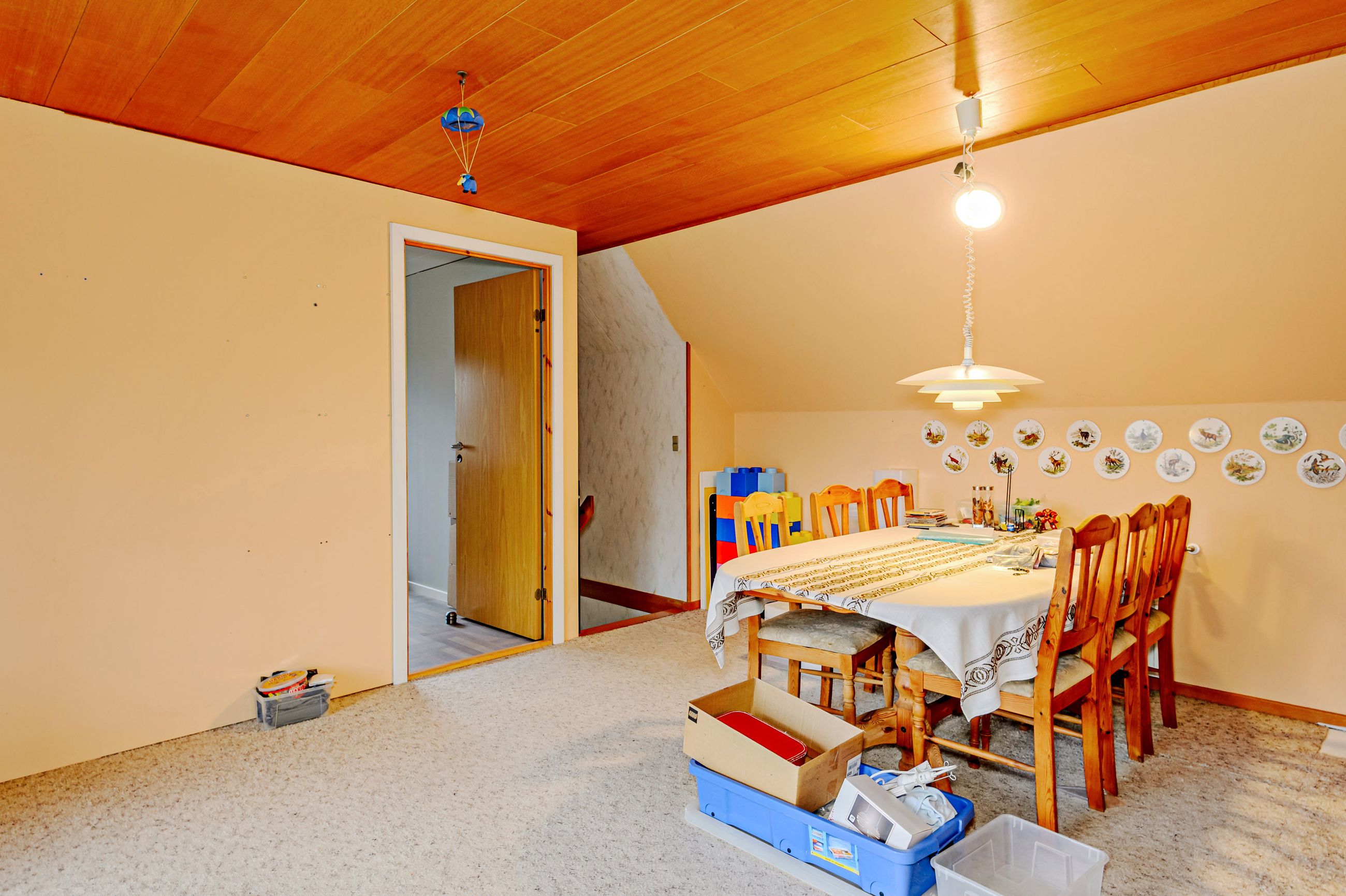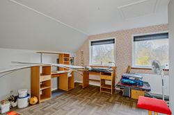 Her sælges en rummelig familievilla med en virkelig central beliggenhed. Der er marker til den ene side, som næsten genbo er der et lækkert rekreativt område "Loch Ness" med sø og fugleliv. Der er kort afstand til indkøb, skole, friskole og idrætshal. Villaen fremstår med pudsede facader, rødt eternittag og termovinduer. Indrettet med bl.a.: Entre, pænt køkken/alrum med elementer i hvid/kirsebær samt en god spiseplads, soveværelse med skabsvæg og plads til en dobbeltseng, stor lys stue med mulighed for ekstra værelse og dobbeltdør til terrassen, fordeling med trappe til 1.sal og teknikrum, bryggers med ekstra bruseniche og håndvask. 1. sal: Ekstra stue med udgang til altan, 2 meget store værelser. Mulighed for relativt nemt at lave flere værelser - f.eks til udlejning. Have med græsplæne og varieret beplantning. Ældre garage som hobbyværksted. RUMMELIG FAMILIEVILLA MED MULIGHED FOR EKSTRA VÆRELSER - GODT NÆRMILJØ OG MASSER AF NATUR TÆT PÅ !!