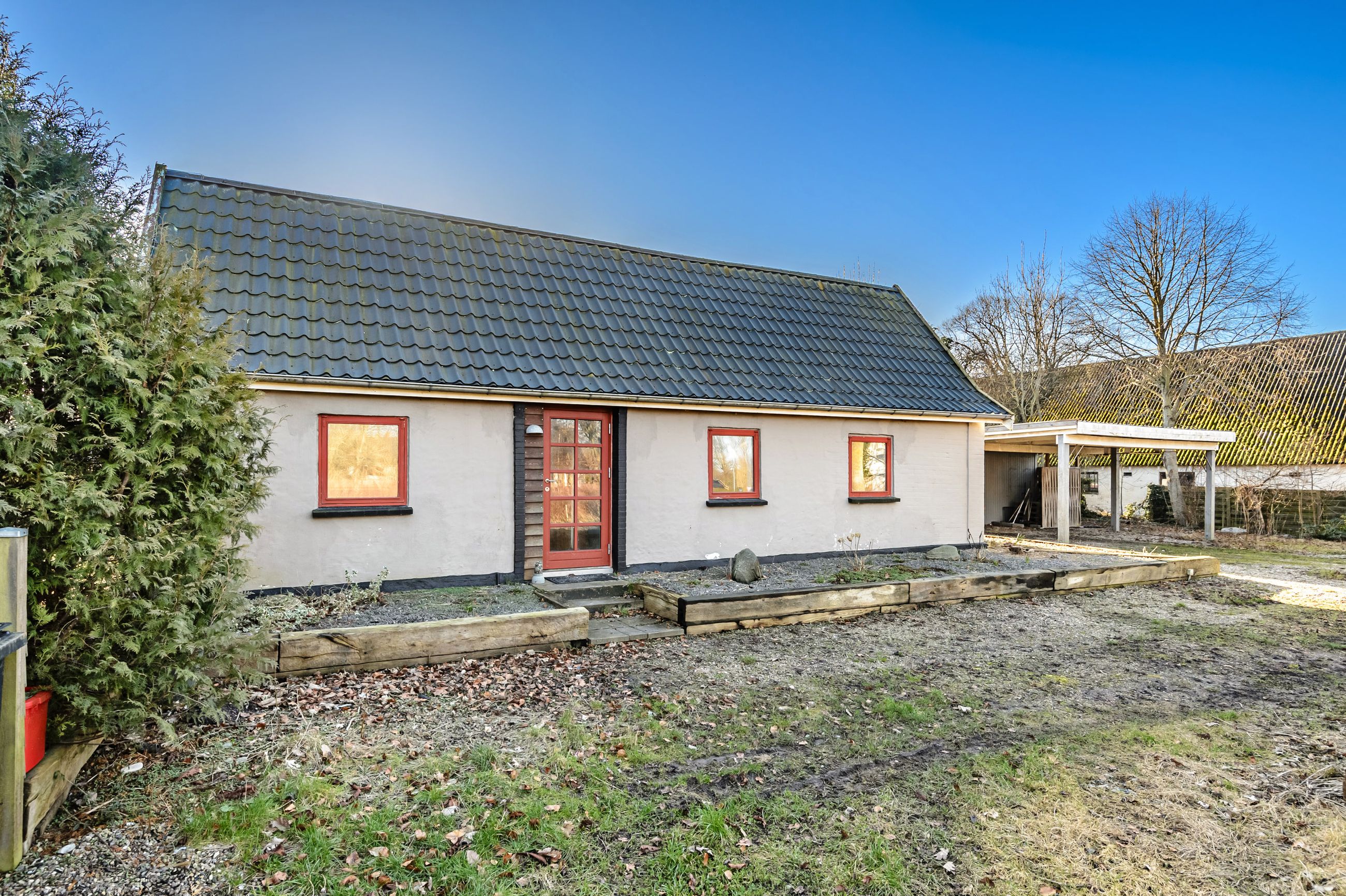 Der er en meget rummelig indkørsel med god plads til parkering - også for store biler /lastbiler -, og her ligger den dobbelte carport. I forbindelse med carporten ligger der et stort isoleret udhus, som er velegnet til værksted/hobbyaktiviteter.