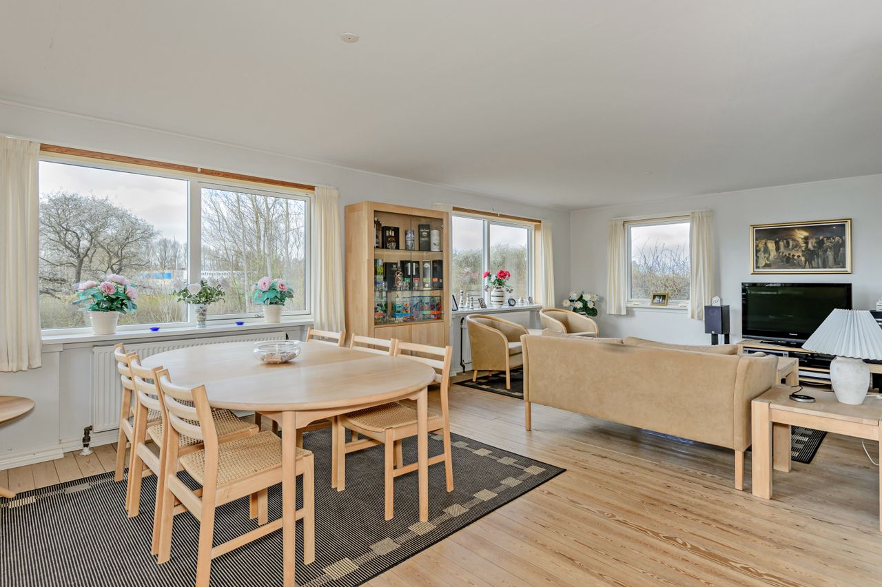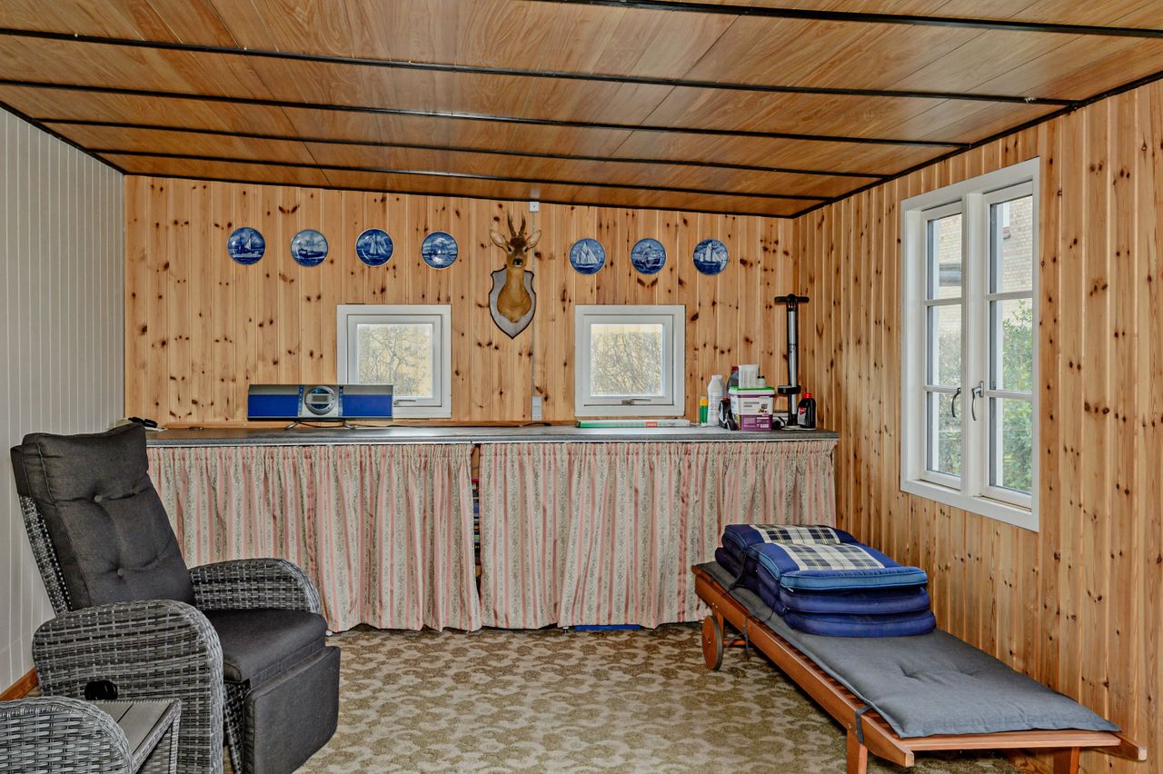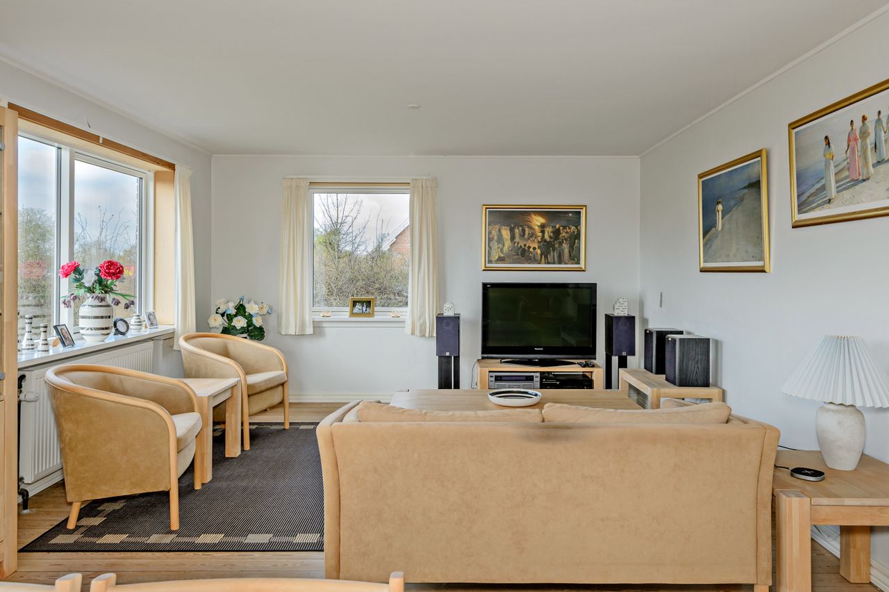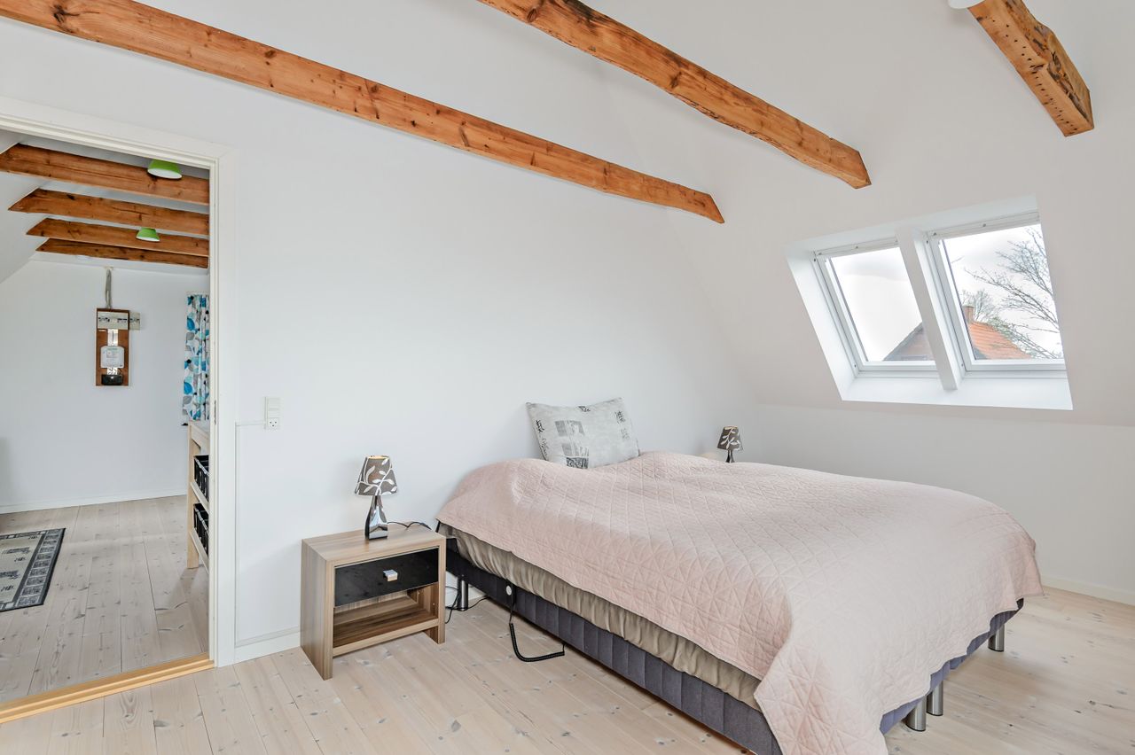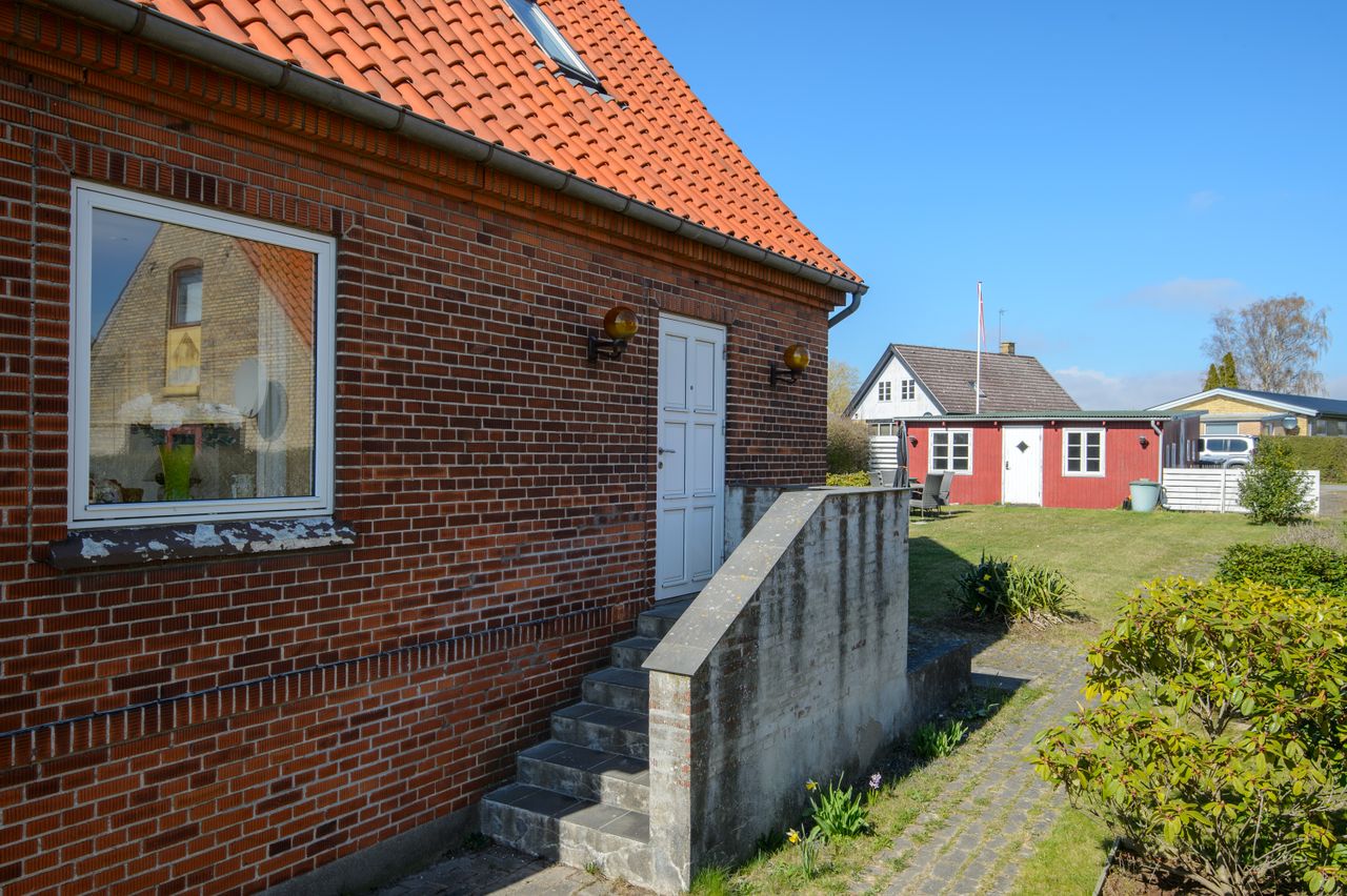 Med en dejlig bynær beliggenhed og samtidig tilbagetrukket fra vejen ligger denne 1 1/2 plans villa, som er opført i mursten med tegltag samt vinduer fra 2008. Bygningens ydre fremstår i en stil, så boligens oprindelige klassiske udtryk er bevaret. Der er adgang til boligen via sti og låge fra Holbækvej, og via den lukkede bagvej Valmuevej er der gode indkørsels- og parkeringsmuligheder med bil. Her ligger også den store garage/udhus/anneks. Haven er anlagt med varieret randbeplantning, terrasser, stor græsplæne og enkelte buske. Det gør haven nem at passe, samt masser af plads til leg, hund/kat, urtehave, blomster, tilbygninger eller bare ren afslapning. Selve boligen er indrettet i stueplan med stor lys, sydvendt opholdsstue med lysindfald fra 3 sider og trægulv, køkken med spiseplads, gæstetoilet og entre med trappe til både 1.sal og til kælderen. Ad den smukke trætrappe er der adgang til den flotte, lyse 1.sal, som er total renoveret siden 2008. Alt har været fjernet helt ud til tegltaget, og nyopført med nye trægulve, isolering, nye vægge m.m.. De gamle hanebånd er naturligvis bevaret og loftet er ført til kip, hvilket giver boligen ekstra sjæl og charme. 1.salen er indrettet med stort repos/kontor med adgang til hems, børneværelse og stort soveværelse med skabsvæg. Der er både indvendig og udvendig adgang til kælderen med trapperum/gang med lyse fliser og gulvvarme, stort badeværelse med lyst flisegulv med gulvvarme, bruseniche og plads til vaskeafdeling, bryggers/teknikrum med fjernvarmeanlægget, disponibelt rum som er velegnet til kontor/gæsteværelse og et spisekammer - alletiders til dem som gerne vil "preppe". Ved tilkørslen fra Valmuevej ligger den dobbelte garage og det store hobbyrum/gildestue/gæsteværelse - her er der alle muligheder for dem, som gerne vil have plads til hobbyaktiviteter f.eks. biler, cykler, maling, keramik eller lige det, som man har lyst til. BOLIG TÆT VED BYEN - VELEGNET FOR DEN UNGE FAMILIE.
