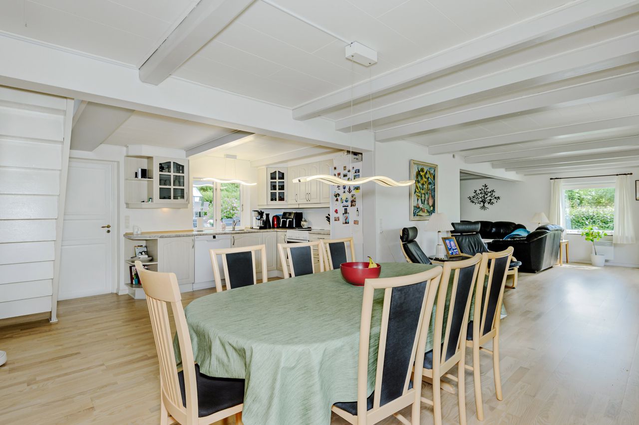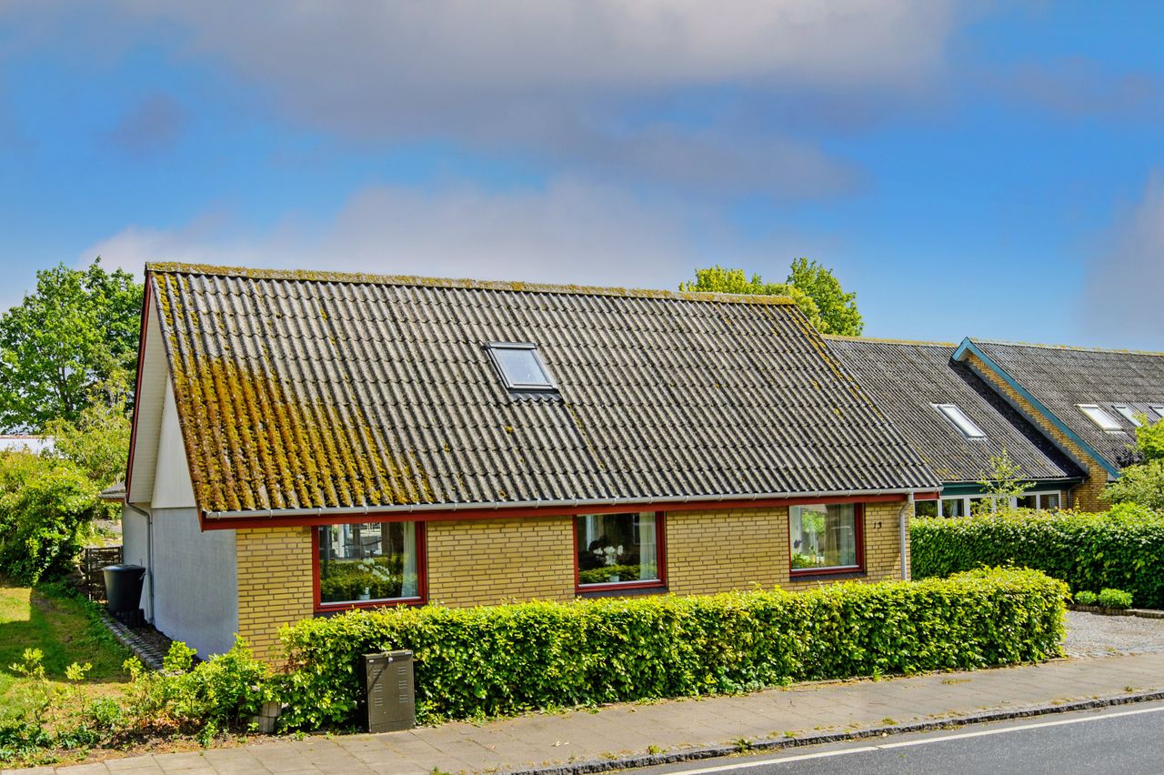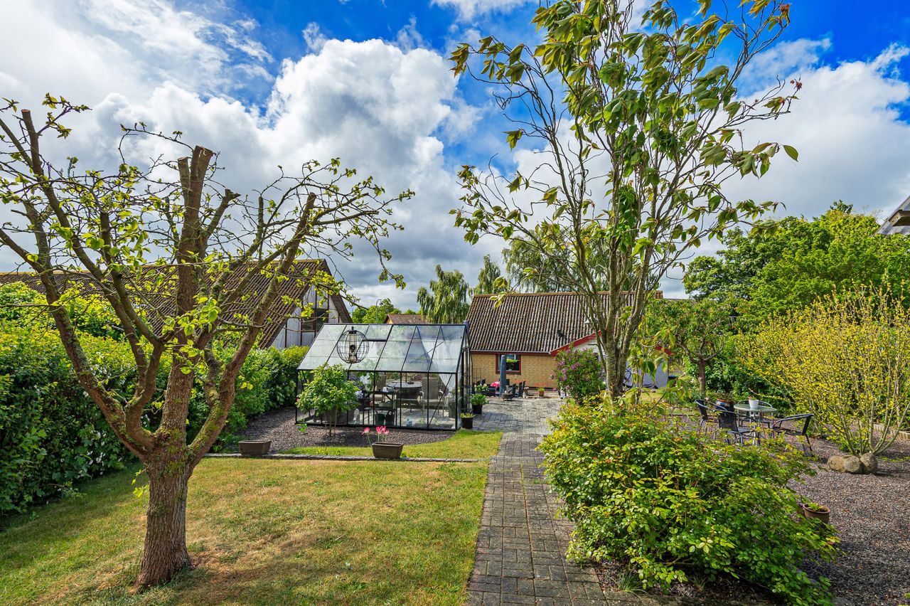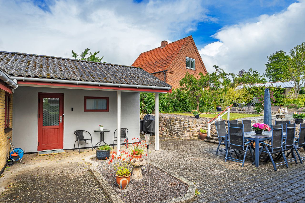 "I en dejlig have fyldt med gylden sol, fyldt med duft af lilje, rose og viol " den sang kunne man godt synge, når man ser haven til denne meget velholdte villa, som ligger midt i Ubby. I Ubby er der indkøbsmuligheder, skoler, hal og bus til Kalundborg-Høng-Slagelse. Ejendommen består af selve boligen, carport med godt udhus, udhus/værksted, stort drivhus, ugeneret gårdhave og så den skønneste have, som ligger op til grønne marker. Selve boligen er indrettet med entre/bryggers, åbent køkken med lyse elementer, meget stor opholdsstue ( herfra kan nemt adskilles et værelse ) og trappe til 1.sal, samt badeværelse med lyse fliser, bruseniche og gulvvarme fra 2018.På 1.sal er der repos med skabe, stue/værelse og mulighed for 2 ekstra værelser (sælger vil gerne give et tilskud til materialer).Der er Tarkett-trægulve i stueplan og klikgulve på 1.sal. Der er hvide lofter med synlige loftsbjælker, som giver ekstra hygge til boligen. Boligen opvarmes med fjernvarme, og der er internet fra ka-net. Bag boligen ligger den hyggelig gårdhave med højbed og overdækket areal til aftenhygge. Fra gårdhaven går man videre til den smukke have, som ligger roligt og ugeneret. Her er der mange forskellige blomster og varierende beplantning, et isoleret udhus/værksted og et solrigt "driverhus", hvor sol og udsigt til haven kan nydes det meste af året. Og så er der ved indkørslen en carport med et rigtig godt udhus til haveredskaber m.m. Der er 2 plantegninger - den nuværende plan og forslag til ændret planløsning med flere værelser. HER ER DER KORT AFSTAND TIL DET MESTE - VELPLEJET BOLIG OG VELPASSET HAVE
