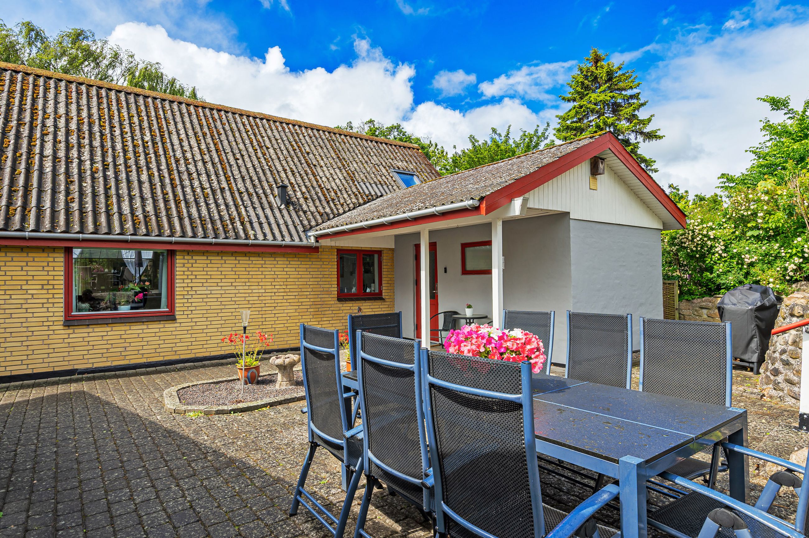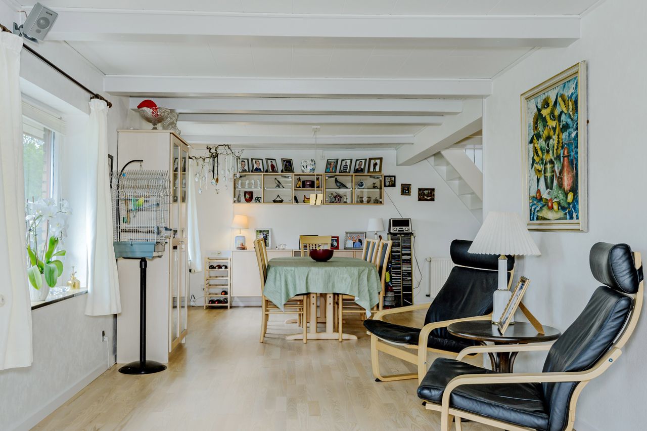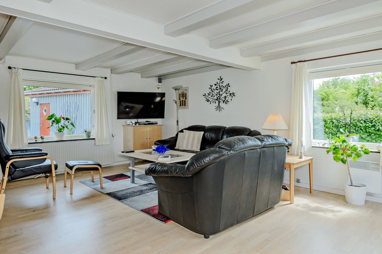 "I en dejlig have fyldt med gylden sol, fyldt med duft af lilje, rose og viol " den sang kunne man godt synge, når man ser haven til denne meget velholdte villa, som ligger midt i Ubby. I Ubby er der indkøbsmuligheder, skoler, hal og bus til Kalundborg-Høng-Slagelse. Ejendommen består af selve boligen, carport med godt udhus, udhus/værksted, stort drivhus, ugeneret gårdhave og så den skønneste have, som ligger op til grønne marker. Selve boligen er indrettet med entre/bryggers, åbent køkken med lyse elementer, meget stor opholdsstue ( herfra kan nemt adskilles et værelse ) og trappe til 1.sal, samt badeværelse med lyse fliser, bruseniche og gulvvarme fra 2018.På 1.sal er der repos med skabe, stue/værelse og mulighed for 2 ekstra værelser (sælger vil gerne give et tilskud til materialer).Der er Tarkett-trægulve i stueplan og klikgulve på 1.sal. Der er hvide lofter med synlige loftsbjælker, som giver ekstra hygge til boligen. Boligen opvarmes med fjernvarme, og der er internet fra ka-net. Bag boligen ligger den hyggelig gårdhave med højbed og overdækket areal til aftenhygge. Fra gårdhaven går man videre til den smukke have, som ligger roligt og ugeneret. Her er der mange forskellige blomster og varierende beplantning, et isoleret udhus/værksted og et solrigt "driverhus", hvor sol og udsigt til haven kan nydes det meste af året. Og så er der ved indkørslen en carport med et rigtig godt udhus til haveredskaber m.m. Der er 2 plantegninger - den nuværende plan og forslag til ændret planløsning med flere værelser. HER ER DER KORT AFSTAND TIL DET MESTE - VELPLEJET BOLIG OG VELPASSET HAVE