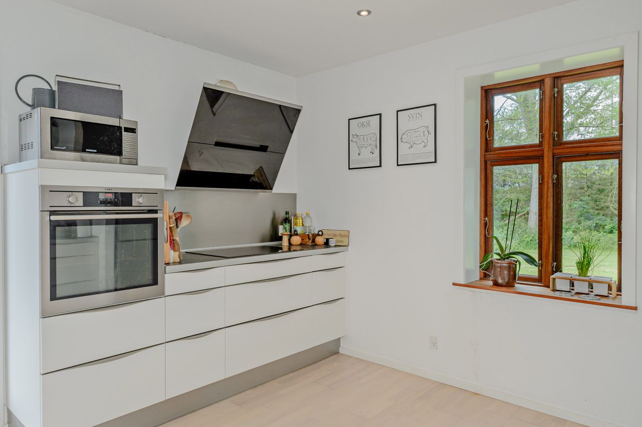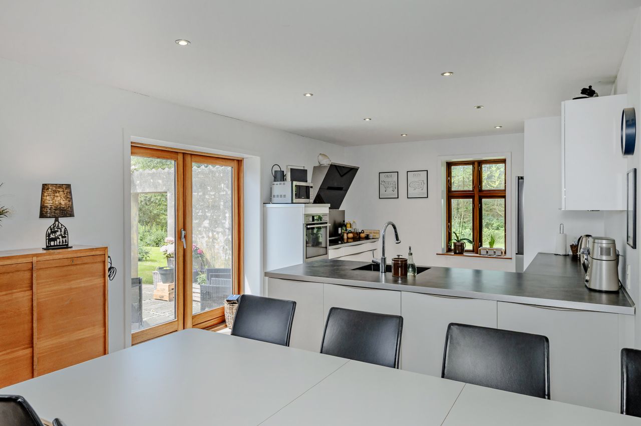 I cykelafstand til Kalundborgs store arbejdspladser, sælges en landejendom med god balance mellem størrelsen på stuehus, udlængerne og den tilhørende jord. En rigtig hobbyejendom med et væld af muligheder. Stuehuset fremtræder med murede og filtsede facader, eternittag og Dannebrogsvinduer med energiglas. Stuehuset er i fin stand og med følgende indretning: Entre med god trappe til 1. sal, nyistandsat soveværelse med trægulv og glatte hvide overflader, dejligt badeværelse med bruseniche, beige fliser og et stort møbel med skuffer og nedfældet vask, stort lyst køkken med hvide elementer med masser af skuffer, skabe og rigtig god bordplads, plads til det store spisebord, hyggelig stue i åben forbindelse med spisepladsen. Gulvvarme i køkken, stue, badeværelse og entre. En dejlig lys 1. sal med plankegulve: Repos/kontor, 2 store værelser på hver ca. 13 m2 og 2 værelser på hver ca. 8 m2. Toilet og håndvask. Gode murede udlænger med ståltag, mulighed for dyrehold, hobbyværksted med træpillefyr, flere disp. rum. I gavlen af den ene udlænge er der mulighed for indretning af gæsteafdeling, ferielejlighed, håndværkerværelser eller lign., der er 3 disp. rum som kan indrettes til værelser samt et badeværelse med bruseniche. Jorden er med et areal med græs, som let kan bruges til dyrehold, jagt o.s.v. Der er et areal med egen sø, plads til hundetræning og gode jagtmuligheder. Omkring bygningerne er der en hyggelig gammel have med mange frugttræer.HER FÅR DU EN GOD BOLIG, DER KAN KOMBINERES MED ET AKTIVT FRITIDSLIV !