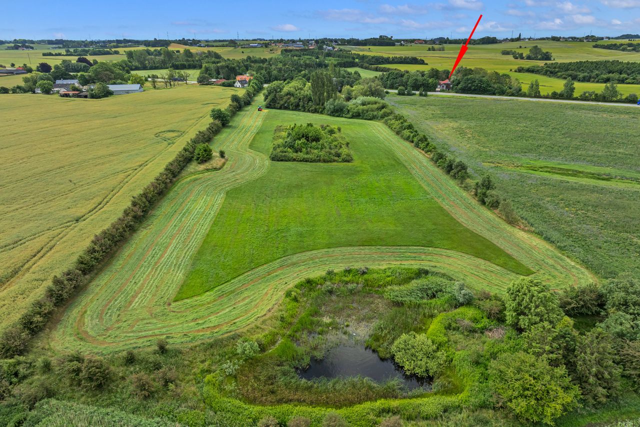 LANDEJENDOM MED 6,5 HEKTAR OG 3 KM FRA NOVO, PLADS TIL DYREHOLD, SØ OG GOD JAGT - STUEHUS MED 5 VÆRELSER OG MULIGHED FOR INDRETNING AF FERIELEJLIGHED