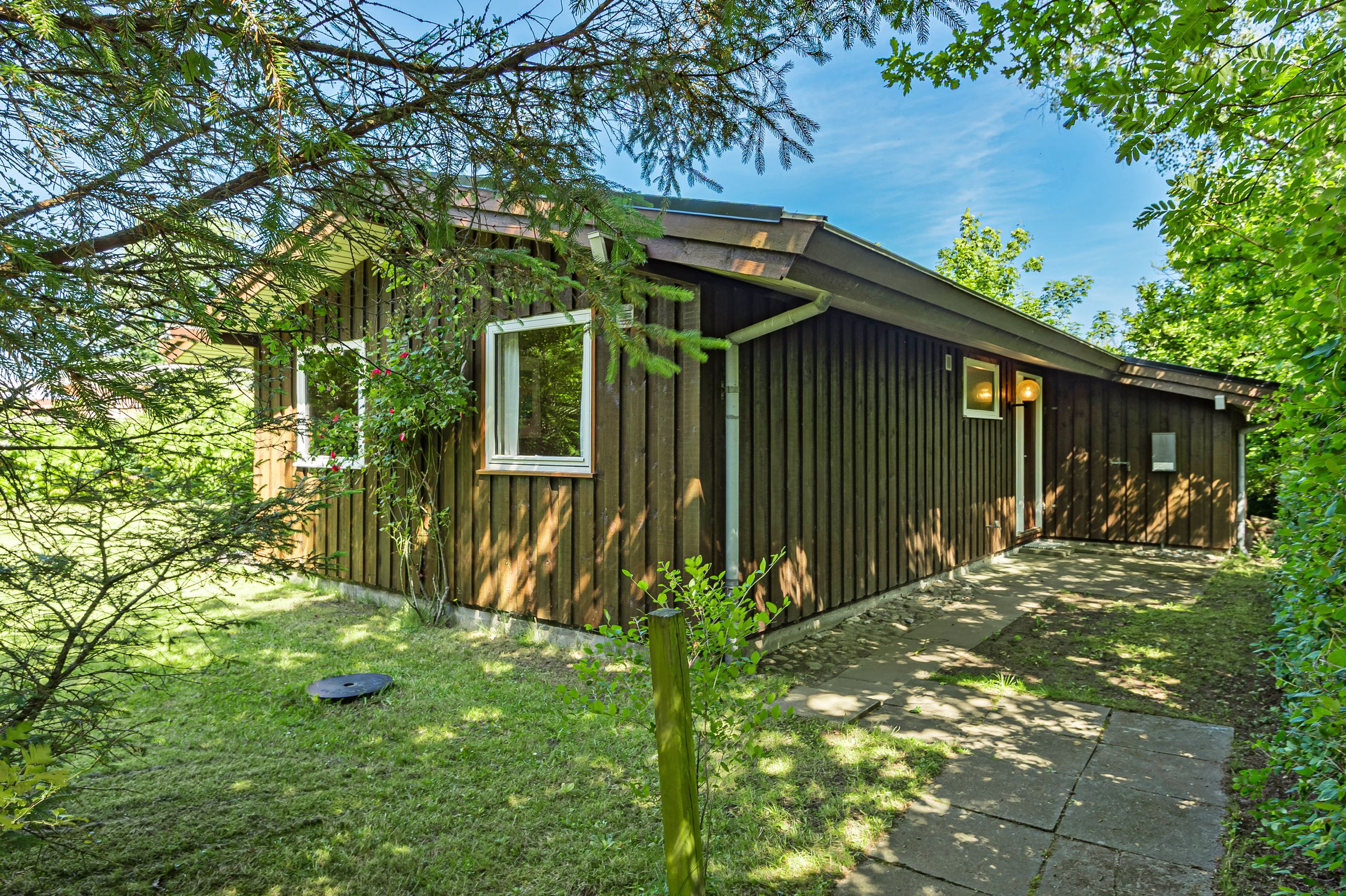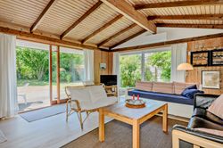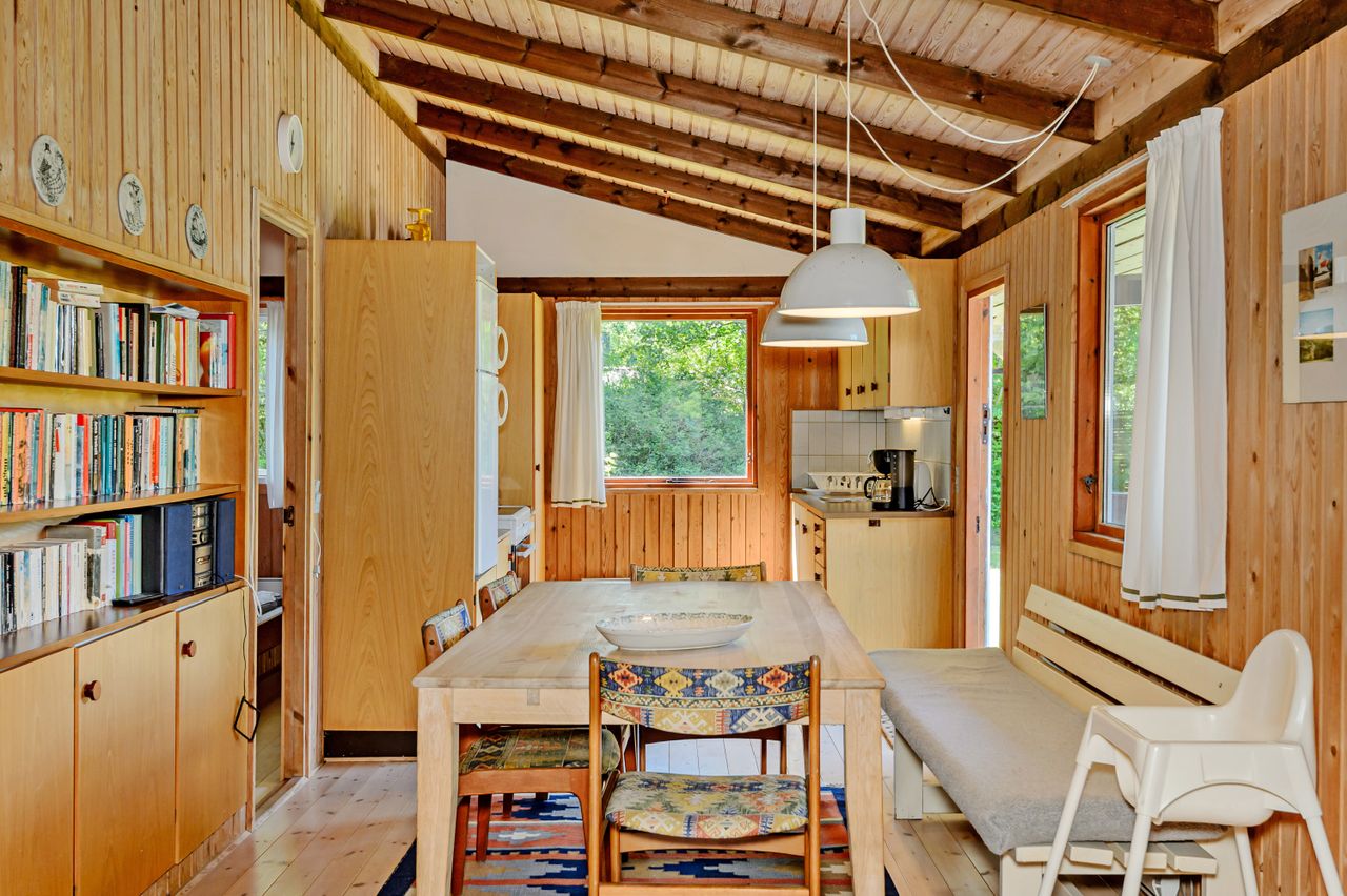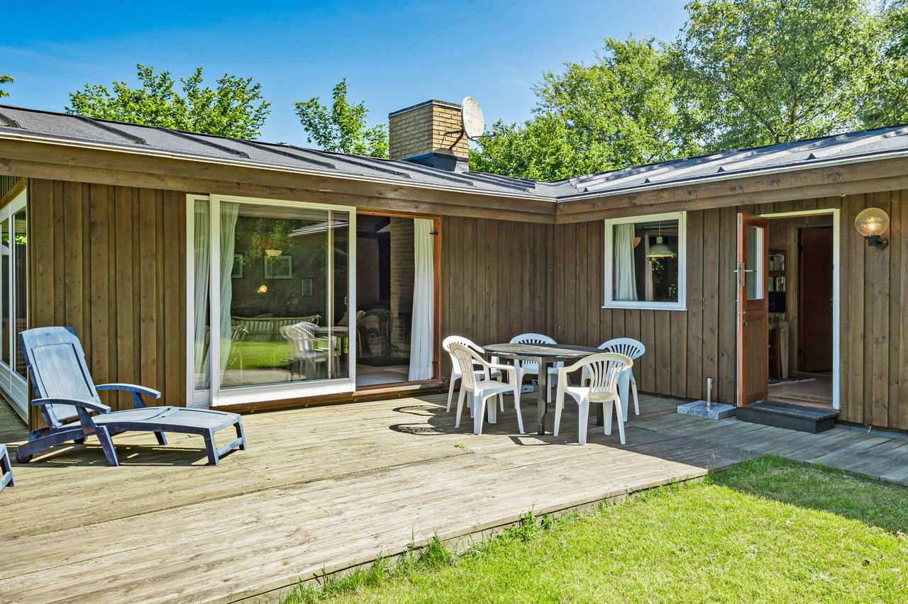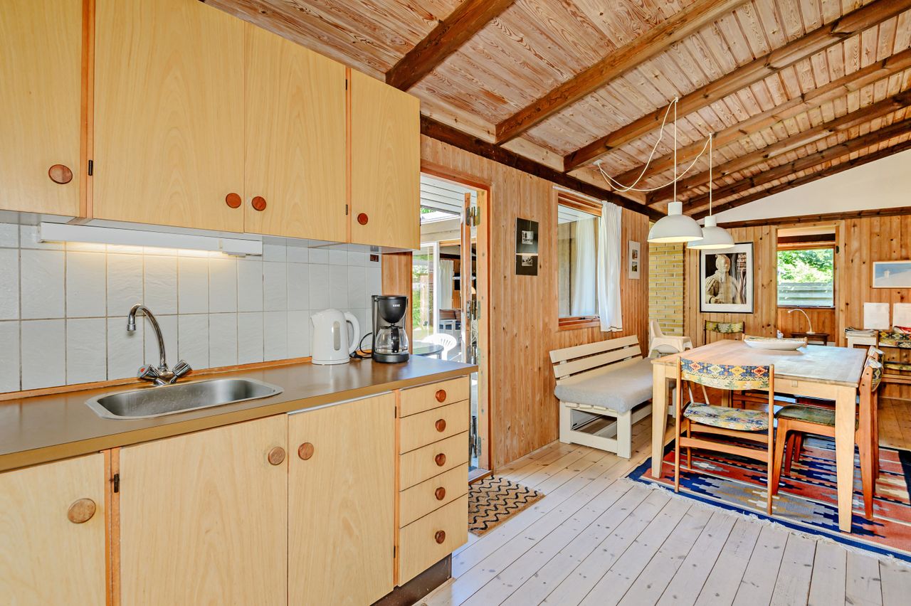 LÆKKERT FRITIDSHUS MED LOFTER TIL KIP - 3 VÆRELSER - NYT LISTETÆKKET TAGPAPTAG - SKØNNE UDEAREALER OG 5 MIN. TIL LÆKKER SANDSTRAND Her sælges et rummeligt fritidshus i rigtig god kvalitet, bygget af den lokale tømrermester Palm. Fritidshuset er opført på støbt sokkel med facader med lodret træbeklædning, helt nyt listetækket tagpaptag (udført af tømrermester), termovinduer med hvide rammer.God indretning: Entre, badeværelse med Höganäs fliser, bruseniche og god skabsplads med nedfældet vask, 2 gode værelser med faste skabe, dejligt stort køkken/alrum med fin skabs- og bordplads, stort spiseområde med masser af lysindfald og dør ud til haven, soveværelse med plads til dobbeltseng samt en skabsvæg. Fantastisk stue , åben pejs til en hyggeaften og skydedørsparti til haven. Fyrretræsgulve i alrum og superflotte nye gulve i de øvrige rum. Fritidshuset er utroligt lyst og venligt, rigtig god rumfornemmelse med lofter til kip. Primær opvarmning ved luft til luft varmepumpe placeret i stuen. Fra både stue og alrum er der udgang til en stor træterrasse, hvor solen kan nydes i fulde drag. Haven er letholdelig og primært med græsplæne og lidt beplantning, hvor der kan findes skygge i den varmeste sommer. Der er et udhus til opbevaring af havemøbler og redskaber. I løbet af 5 min. kan du gå til den skønneste børnevenlige sandstrand. Fremvisning kun ifølge aftale med ejendomsmægler, da huset i perioder er udlejet. ET LÆKKERT FRITIDSHUS TÆT PÅ STRANDEN - 3 VÆRELSER OG LOFTER TIL KIP - STOR TRÆTERRASSE OG LUKKET HAVE !